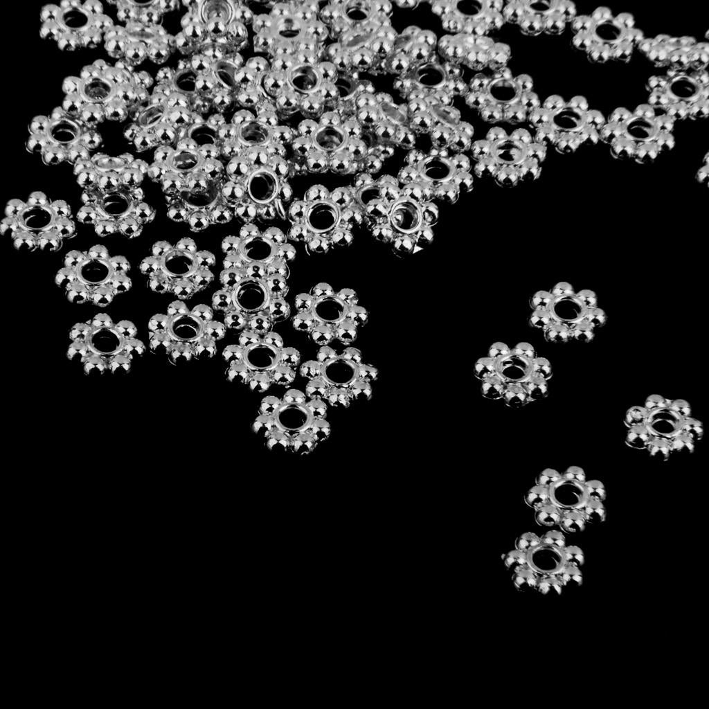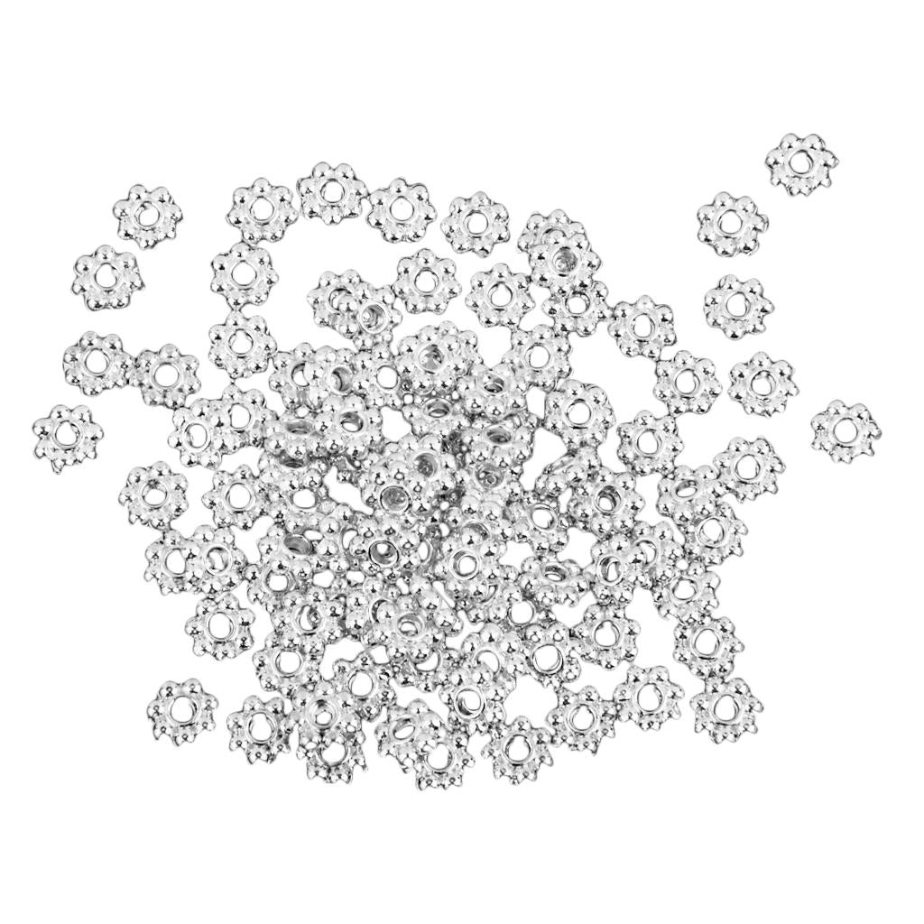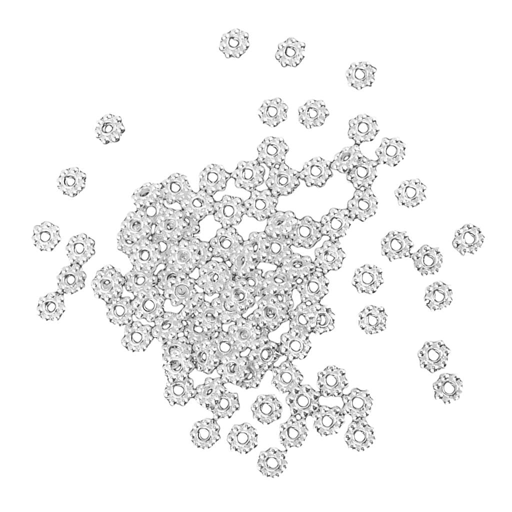 100x Silver Snowflake Flower Alloy Spacer beads Jewellery Findings 5mm