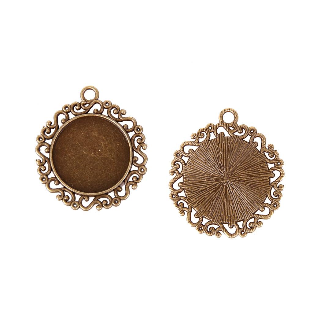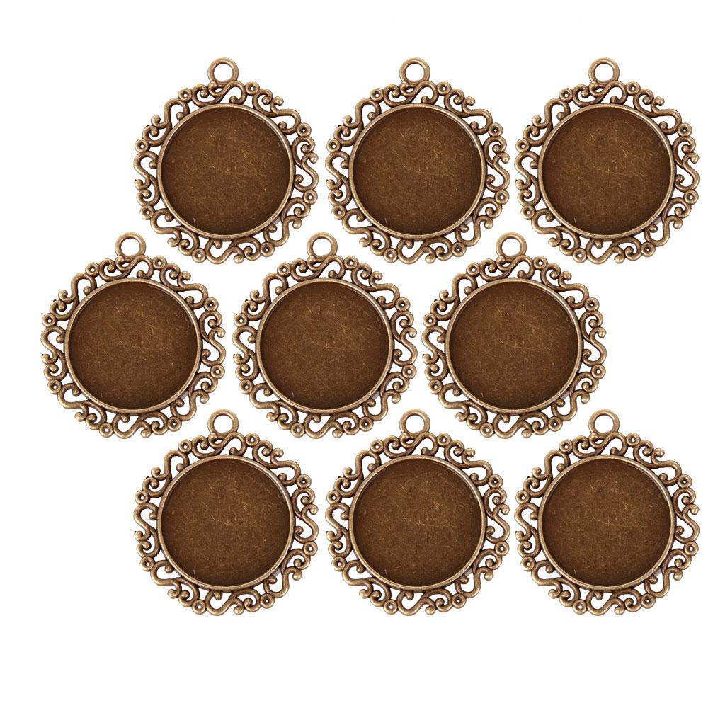 10Pcs Antique Bronze Round Flower Alloy Pendant Cameo Cabochon Base Settings