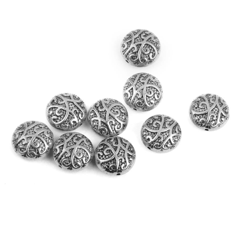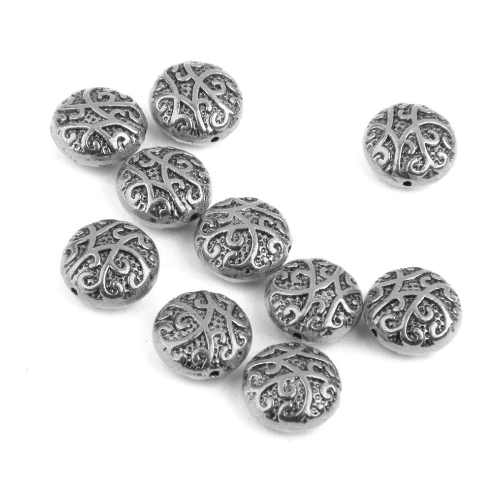10pcs Antique Silver Alloy Round Spacer Beads 14mm