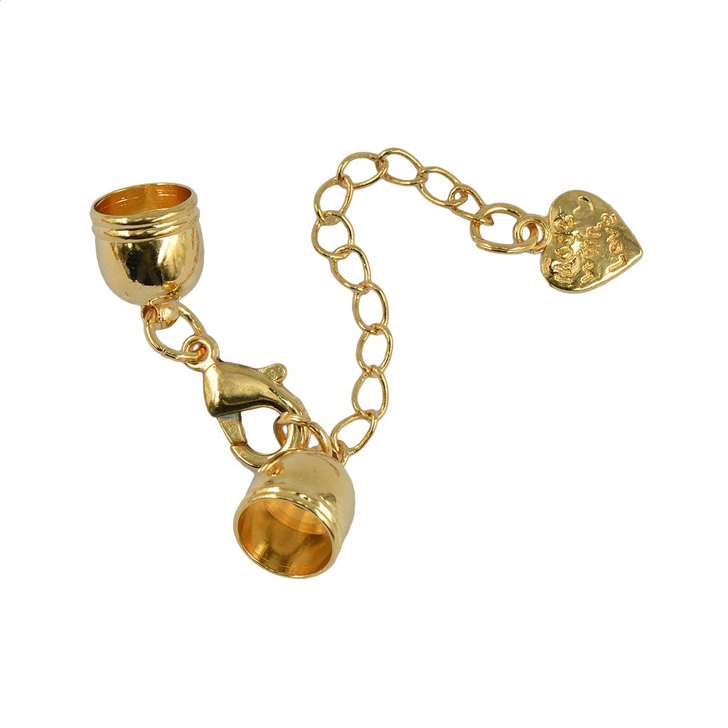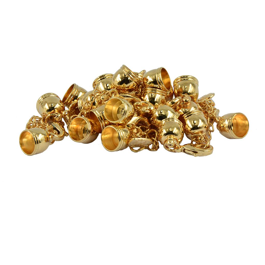10Pcs Crimp End Caps With Lobster Clasp And Extender Chain Light Gold