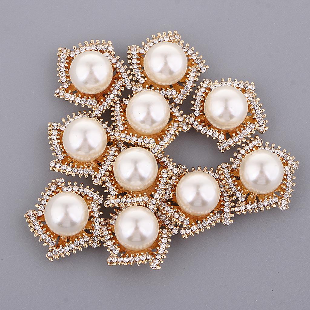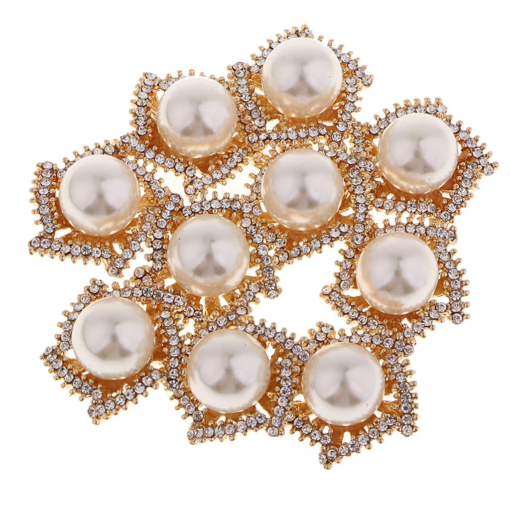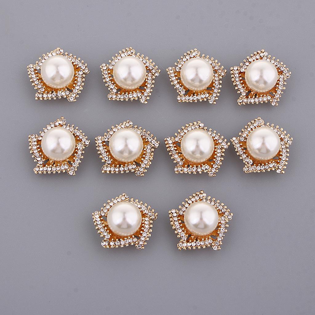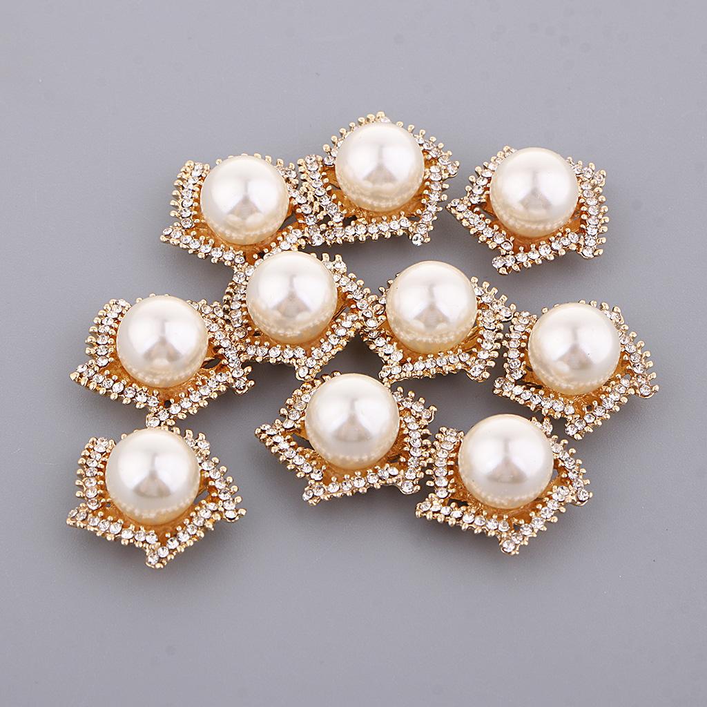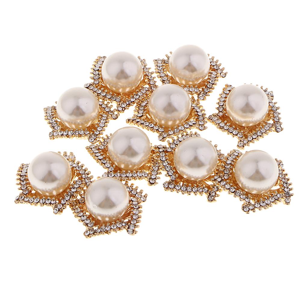 10pcs Jewelry Pearl Rhinestone Flatback Round Buttons Embellishment Applique for Brooches, Wedding Bridal Bouquet, Bridal Sashes