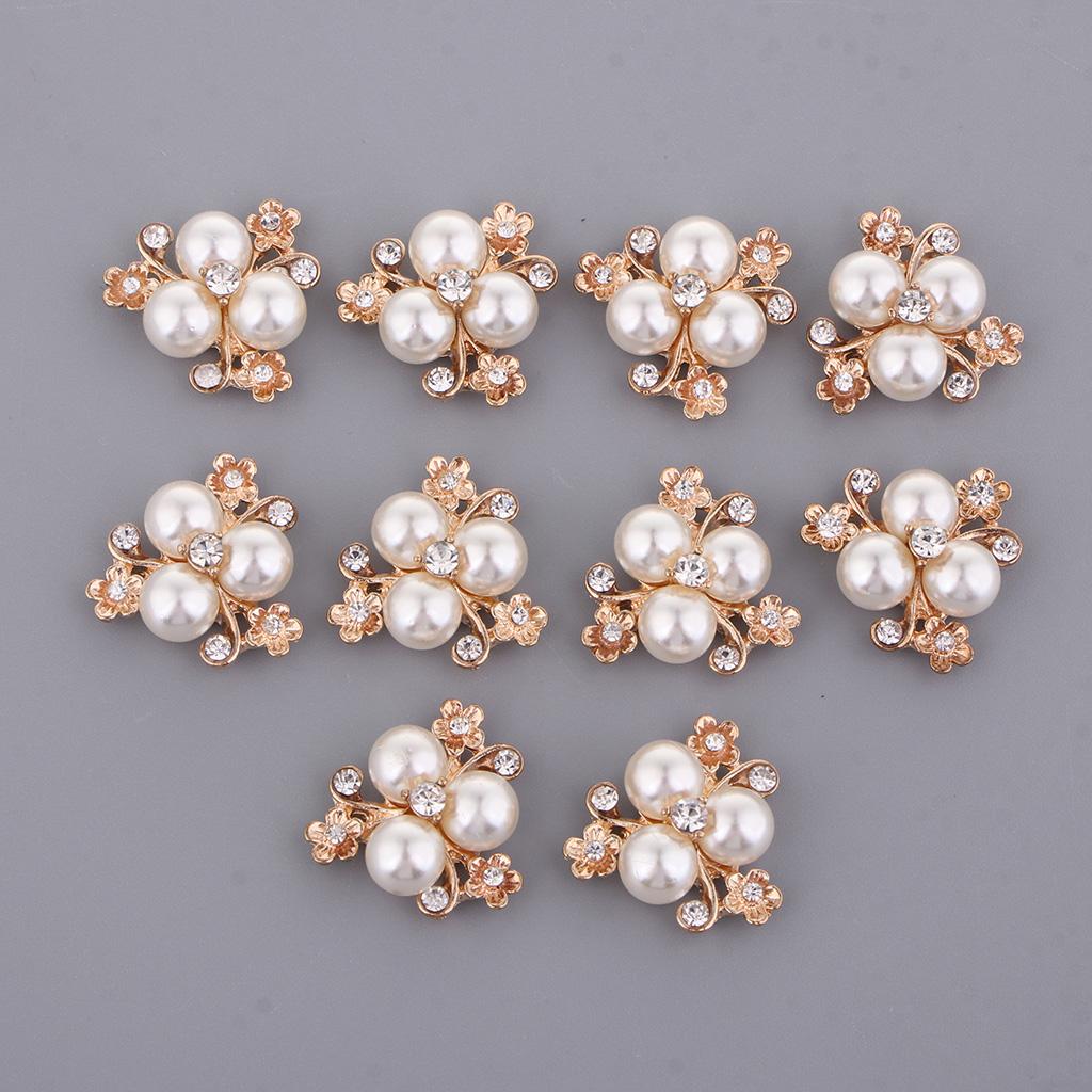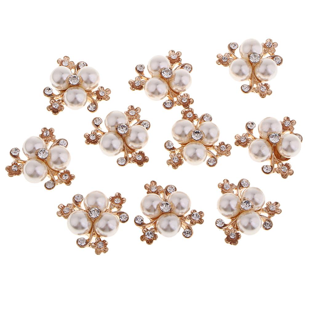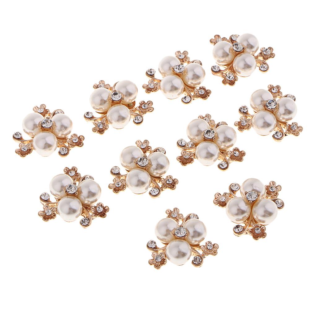 10 Pieces Pearl Rhinestone Flower Embellishments