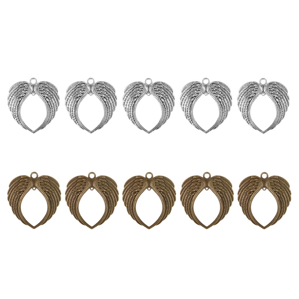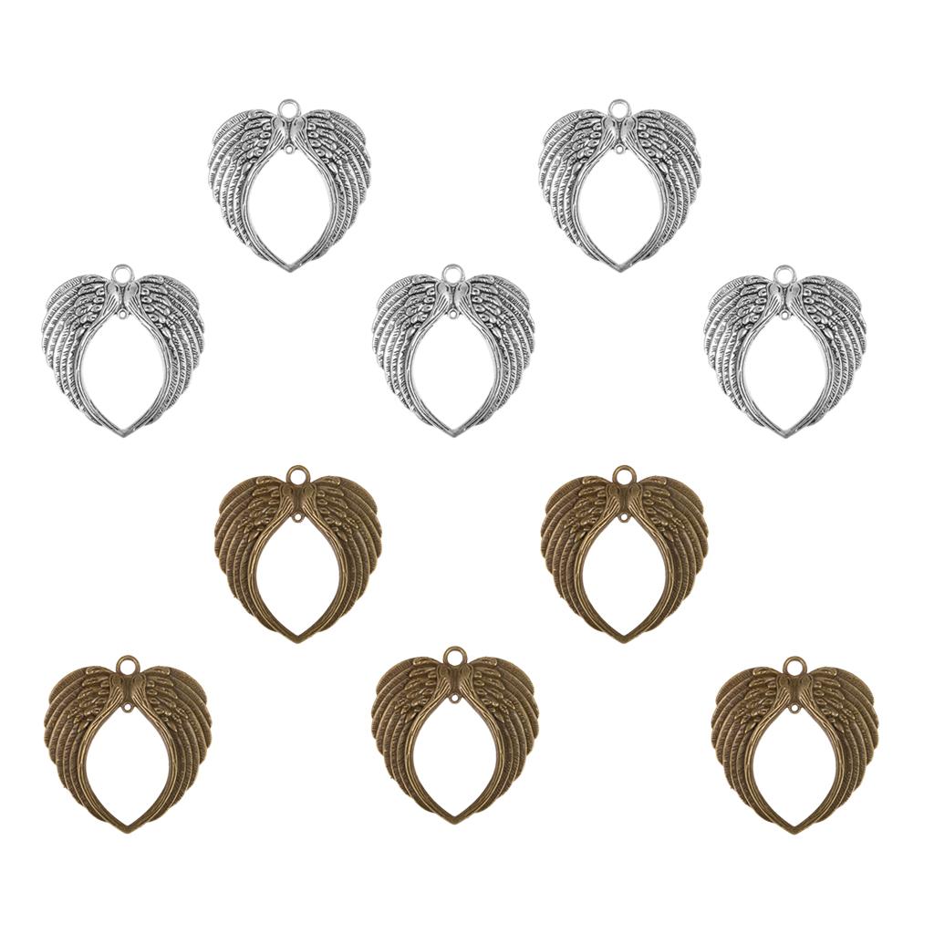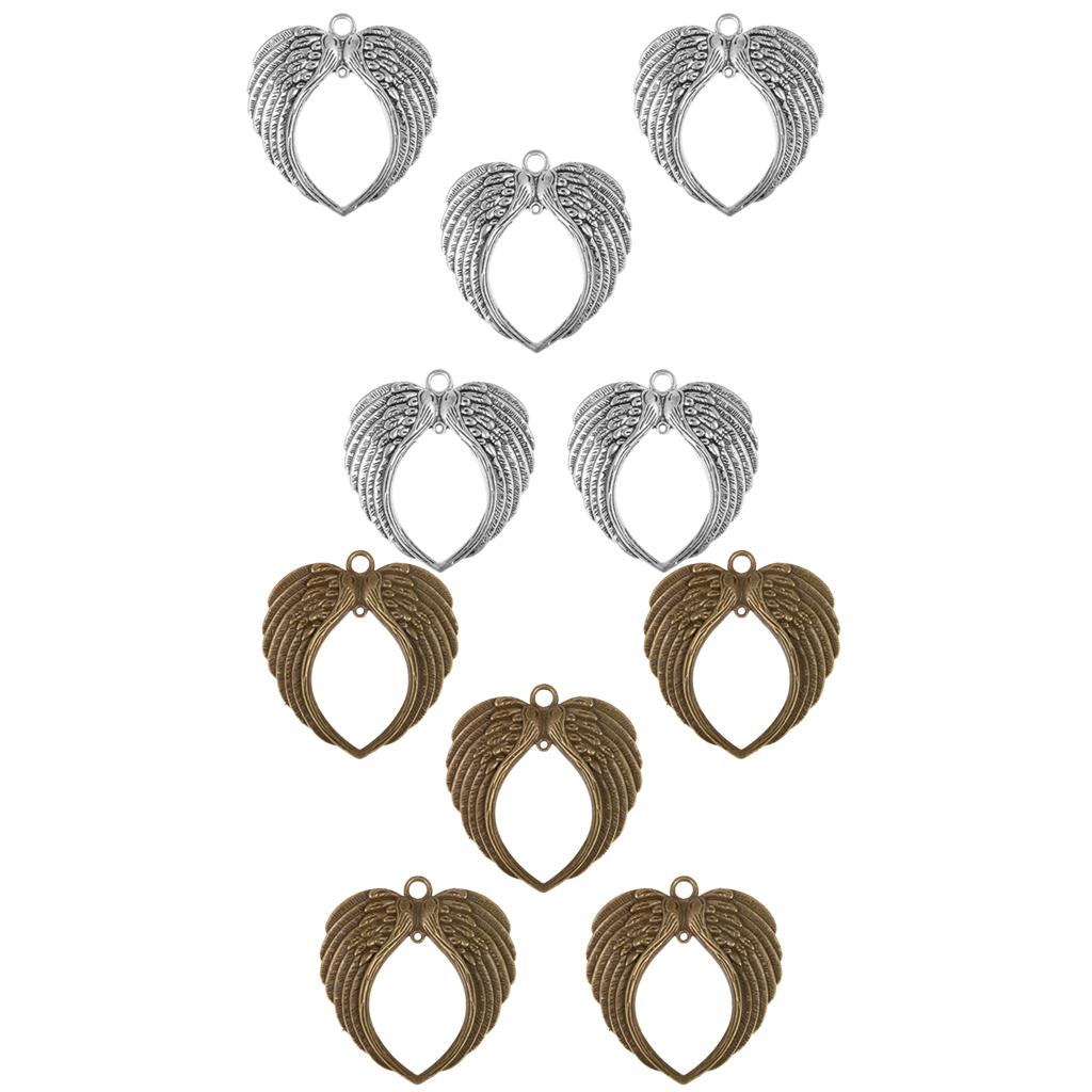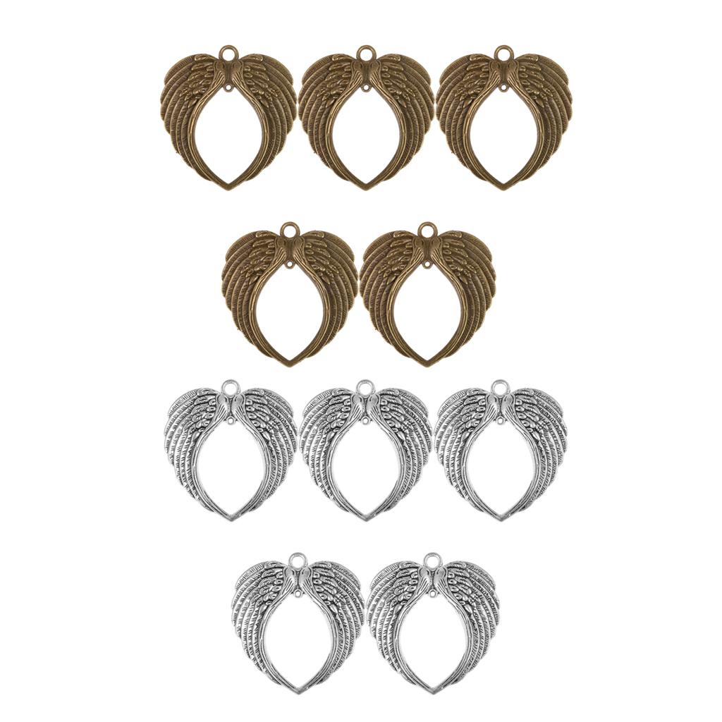 10Pieces Vintage Big Angel Wing Charms Heart Feather Wing Pendants 73 x 65mm