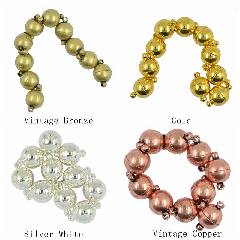 10Sets 10mm Two Parts Round Magnetic Clasps Jewelry Making Findings Gold