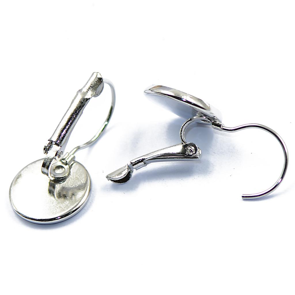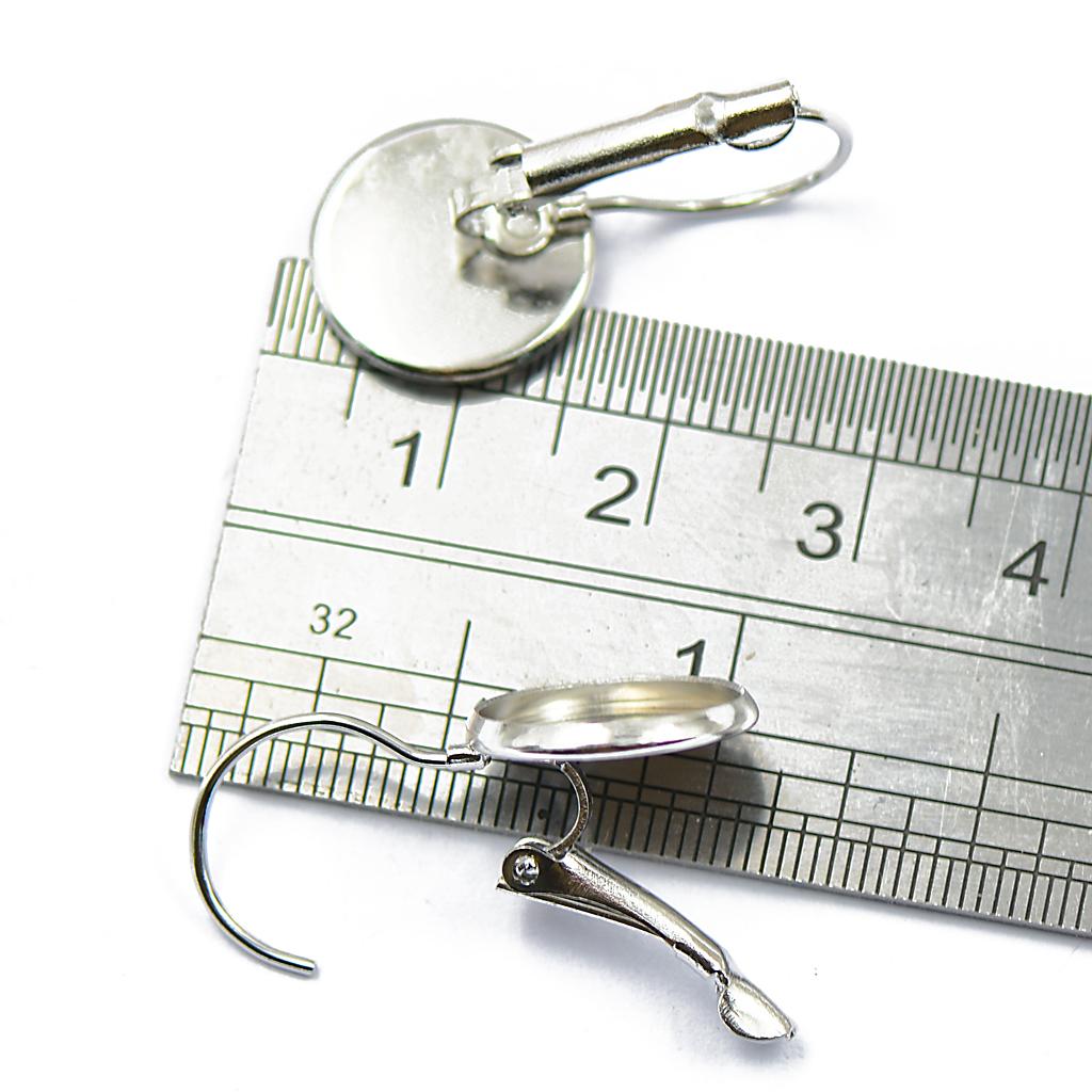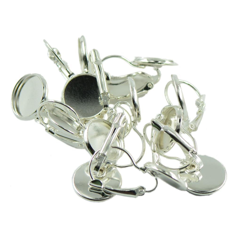 12 pcs Earring Wire Hook Findings Cabochon Setting Disc Round Jewelry Silver