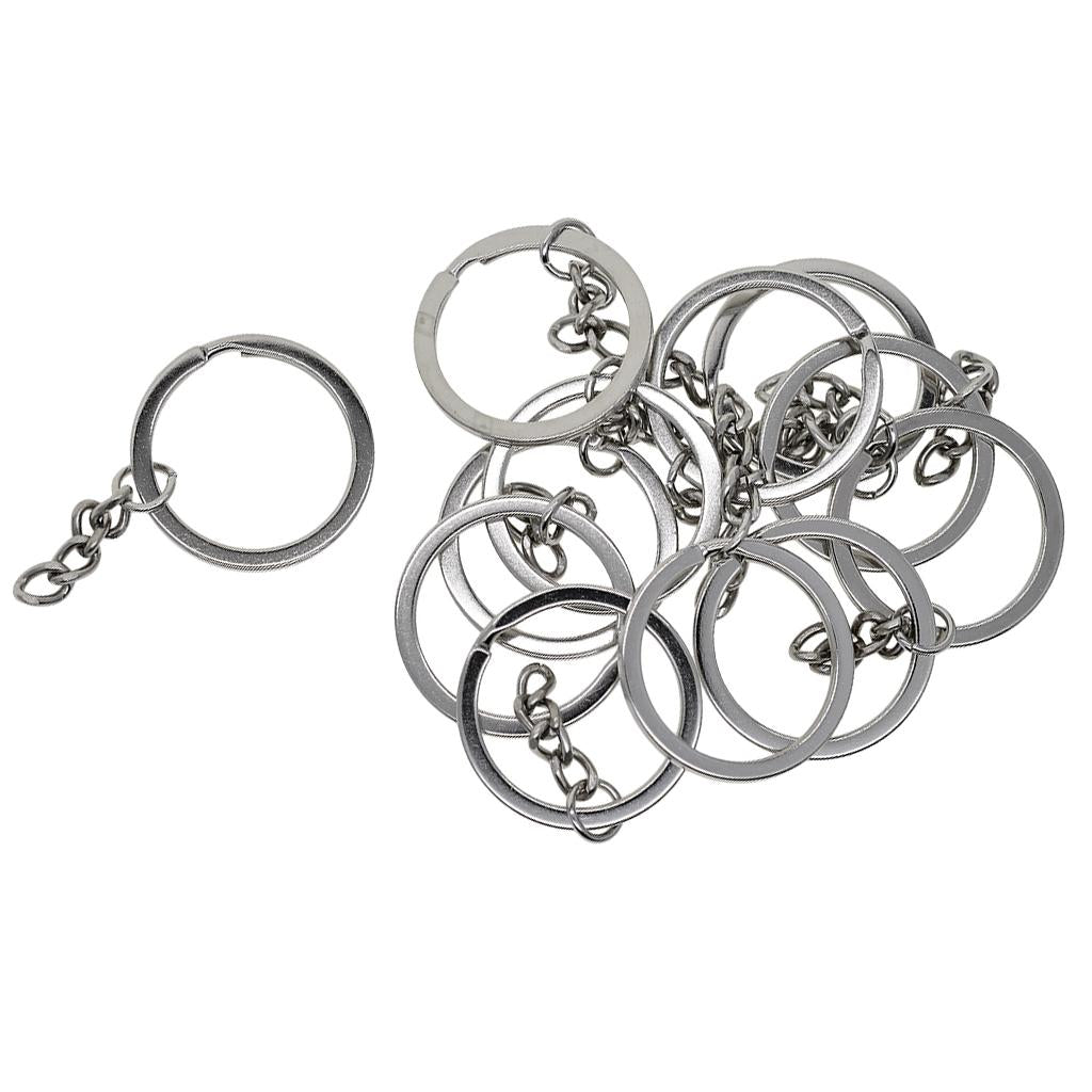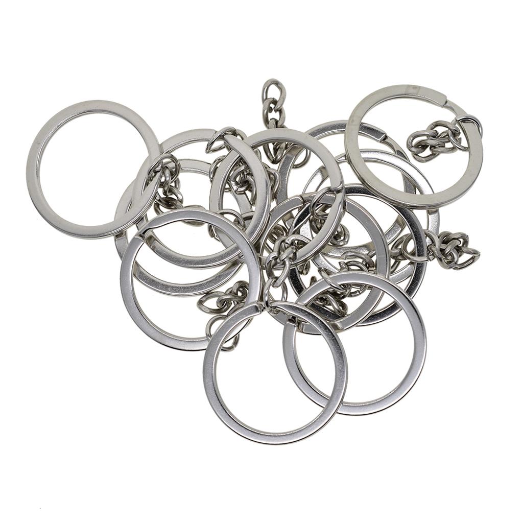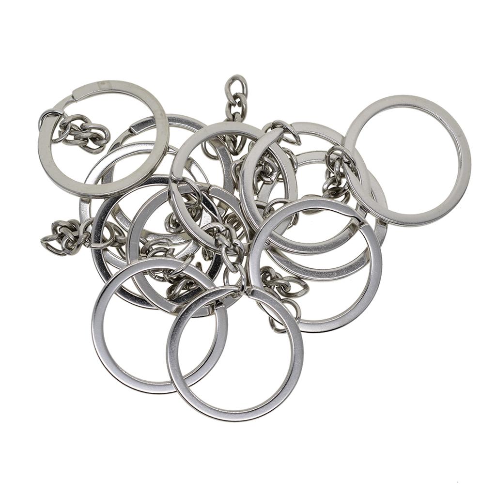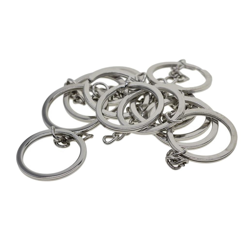 Size: Split keyrings: Outer Diameter: Approx. 30 mm; Inner Diameter: Approx. 24mm; Thickness: Approx. 2mm; Chains: Length: Approx. 20mm