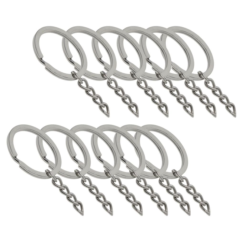 12 Pieces Keyring Blanks Silver Tone Key chains Key Split Rings 30mm with 4 Link Chain DIY Jewelry Making Crafts Bag Parts