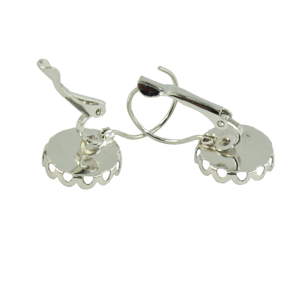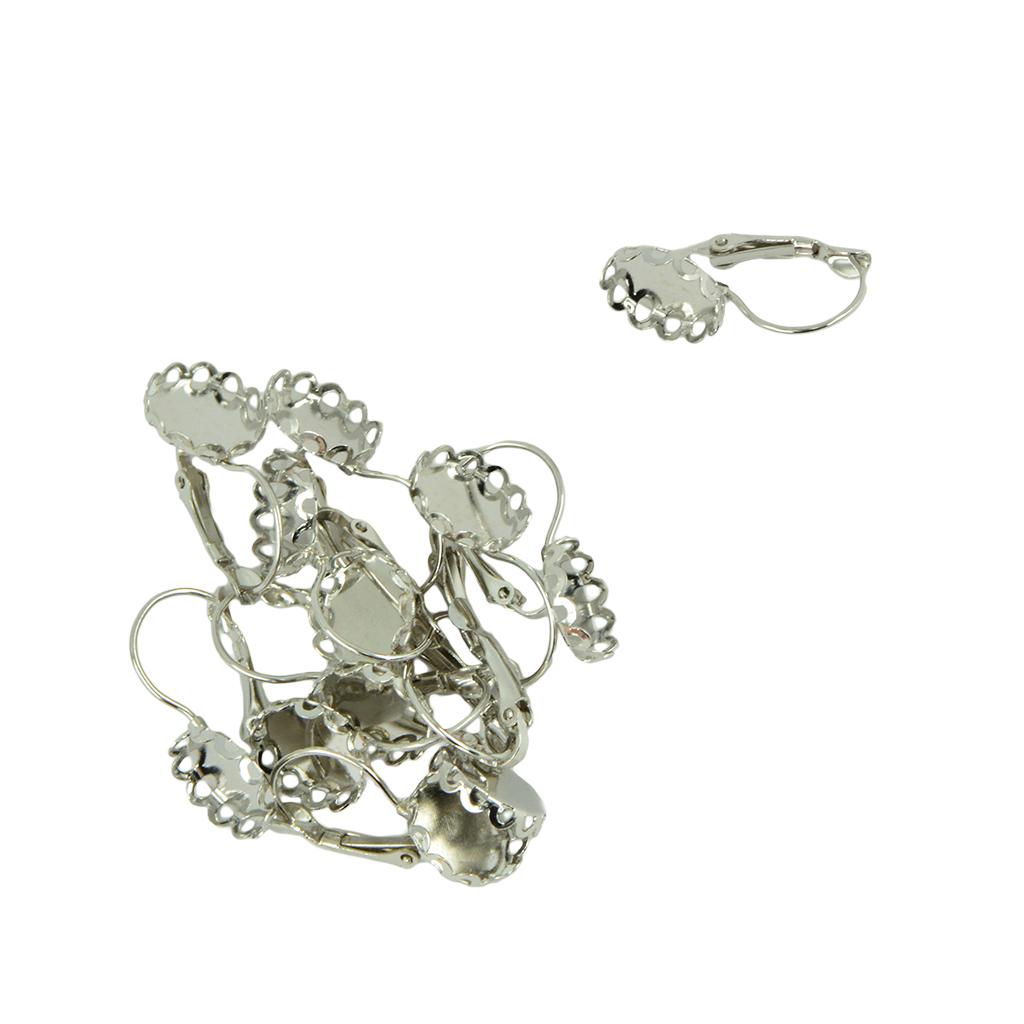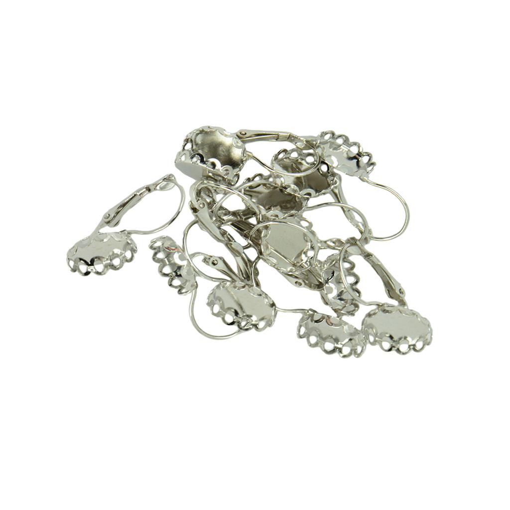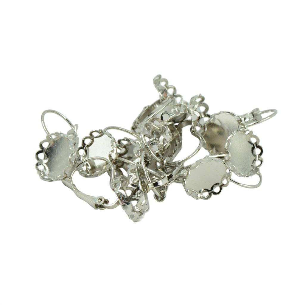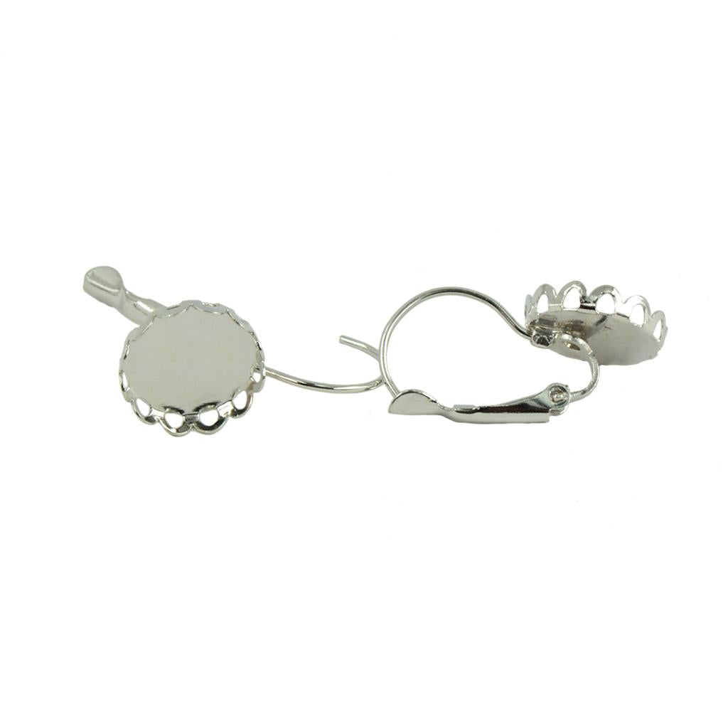 12 Pieces Leverback Earring Hook Round Flower Blank DIY Setting Silver
