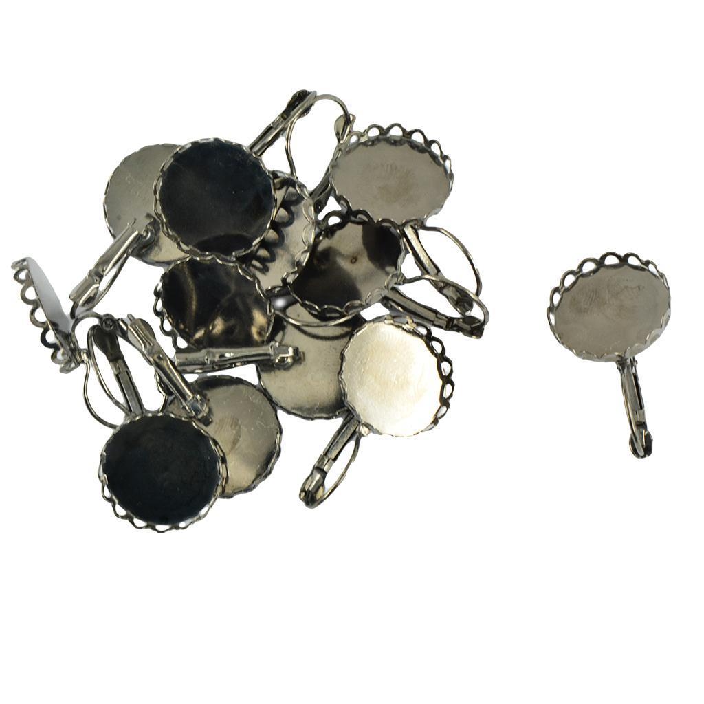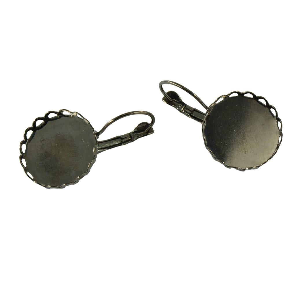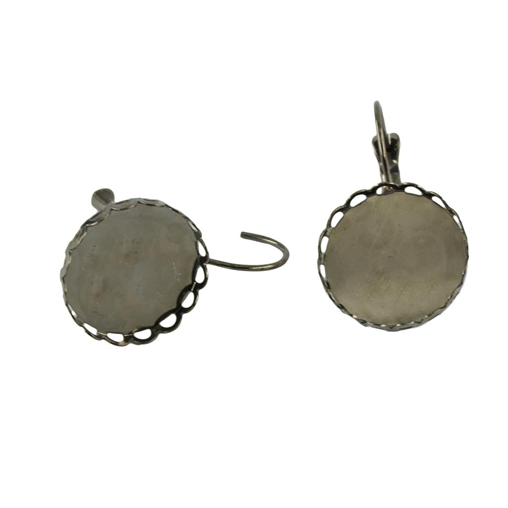 12 Pieces Levereback Earring Wire Blank Flower Bezel Cabochon Black