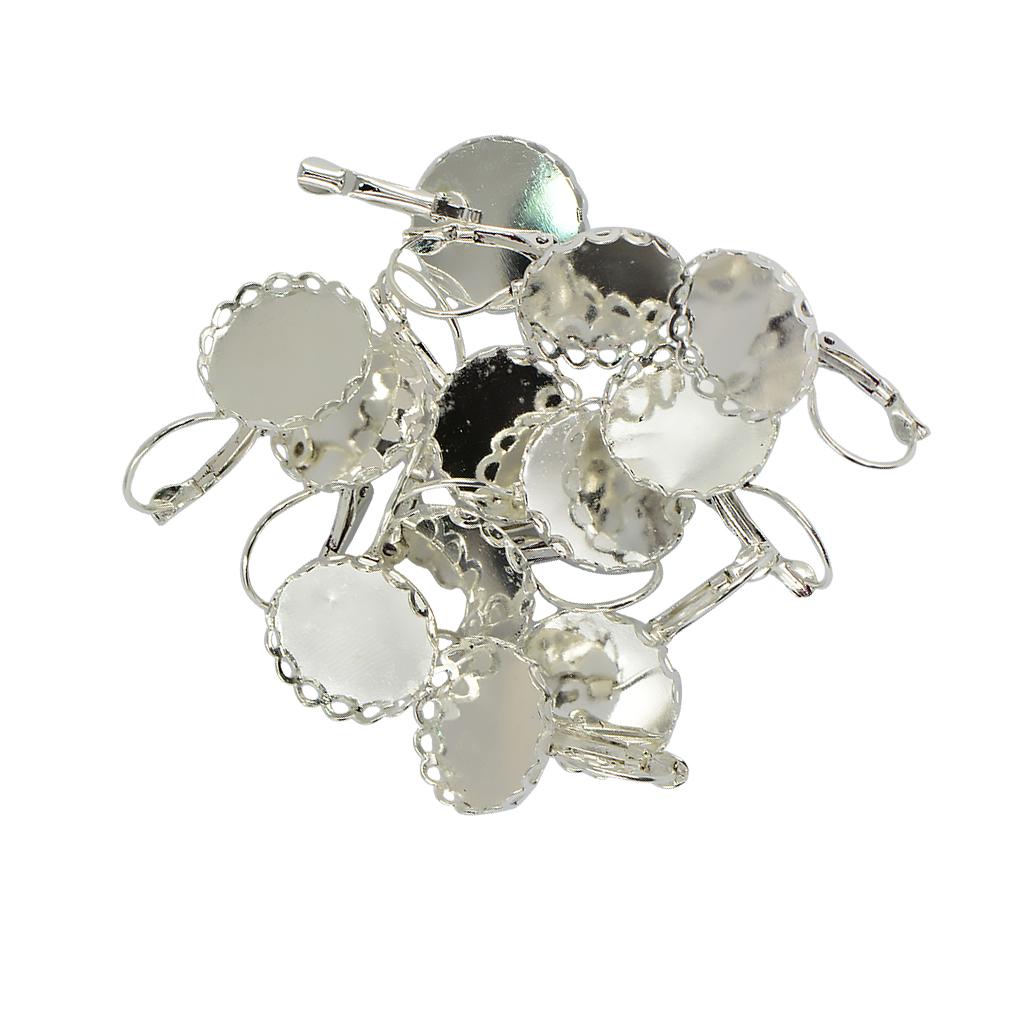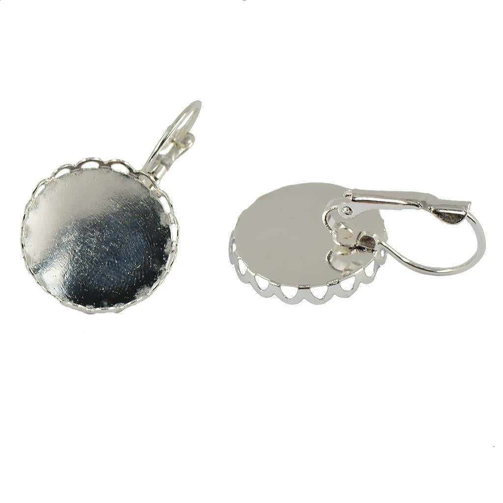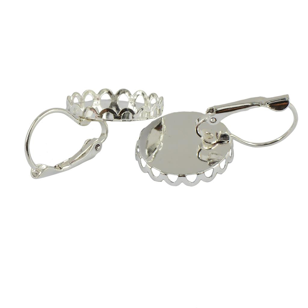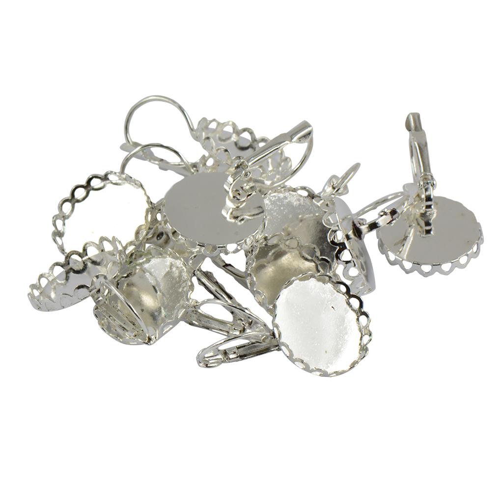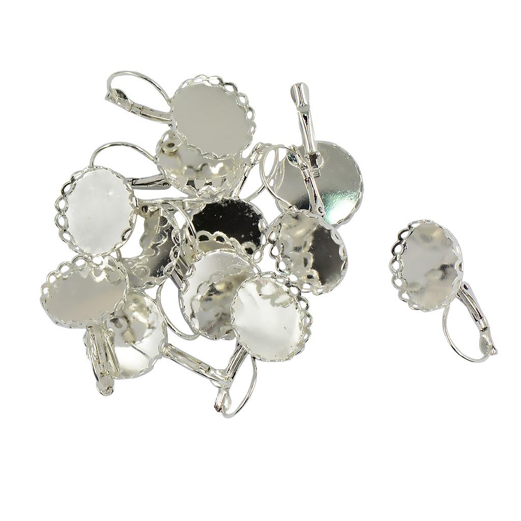 12 Pieces Levereback Earring Wire Blank Flower Bezel Cabochon Silver White