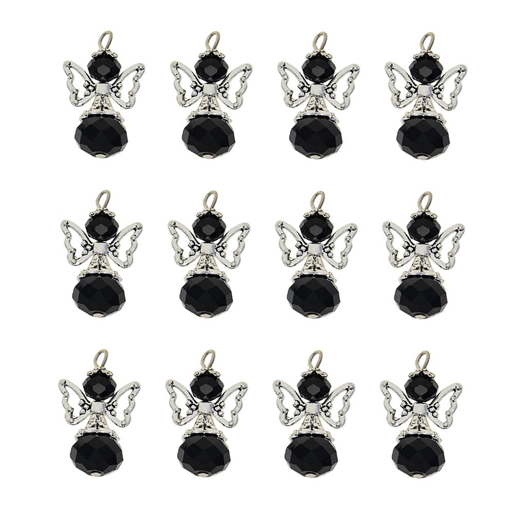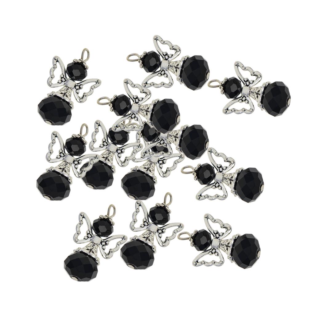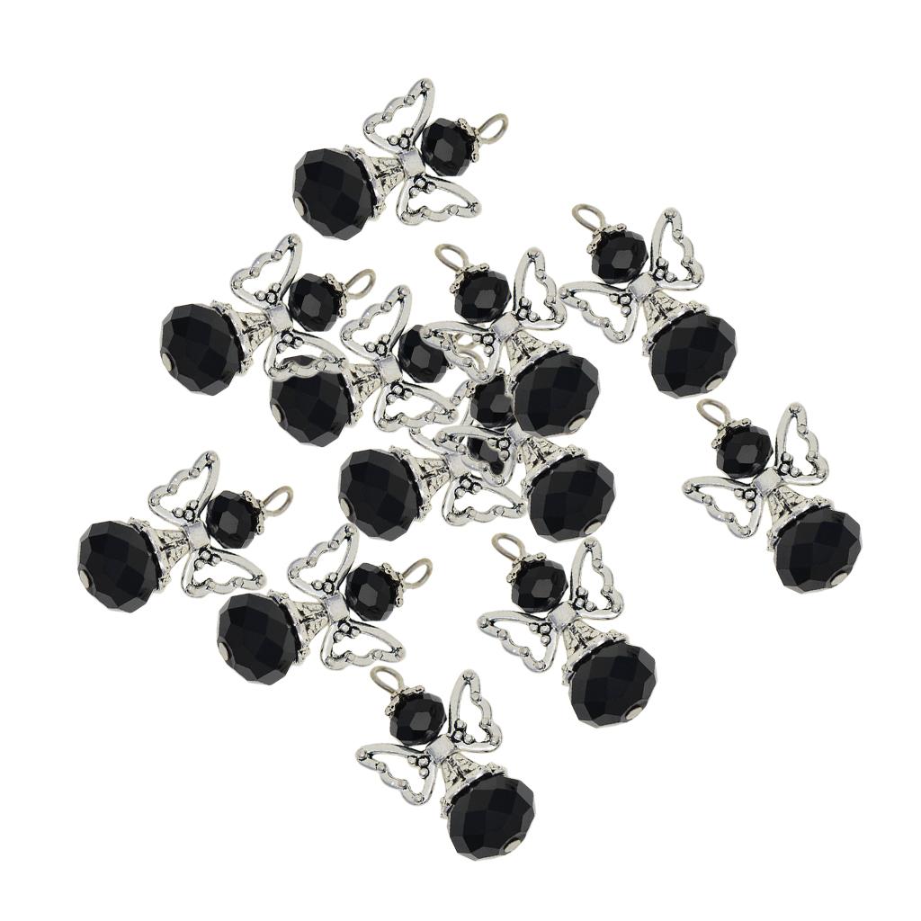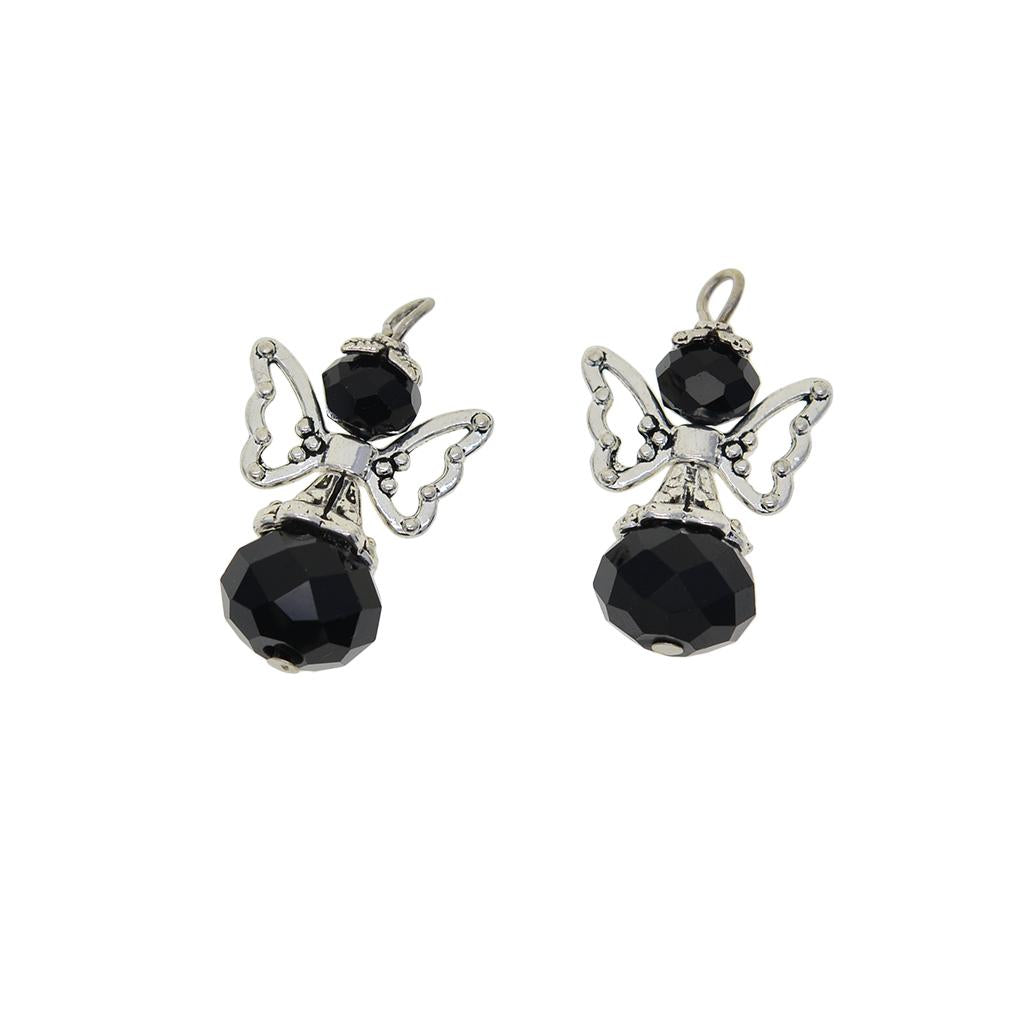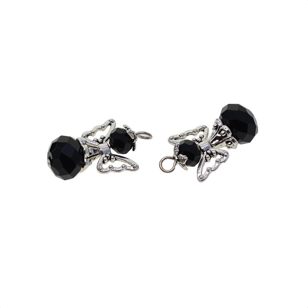 12 Pieces Tibetan Silver Angel Wing Charms Glass Pendant Bead black