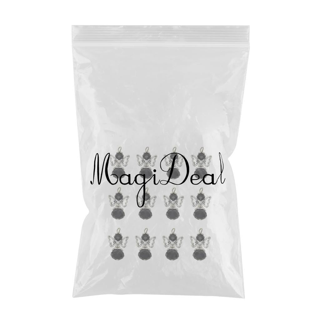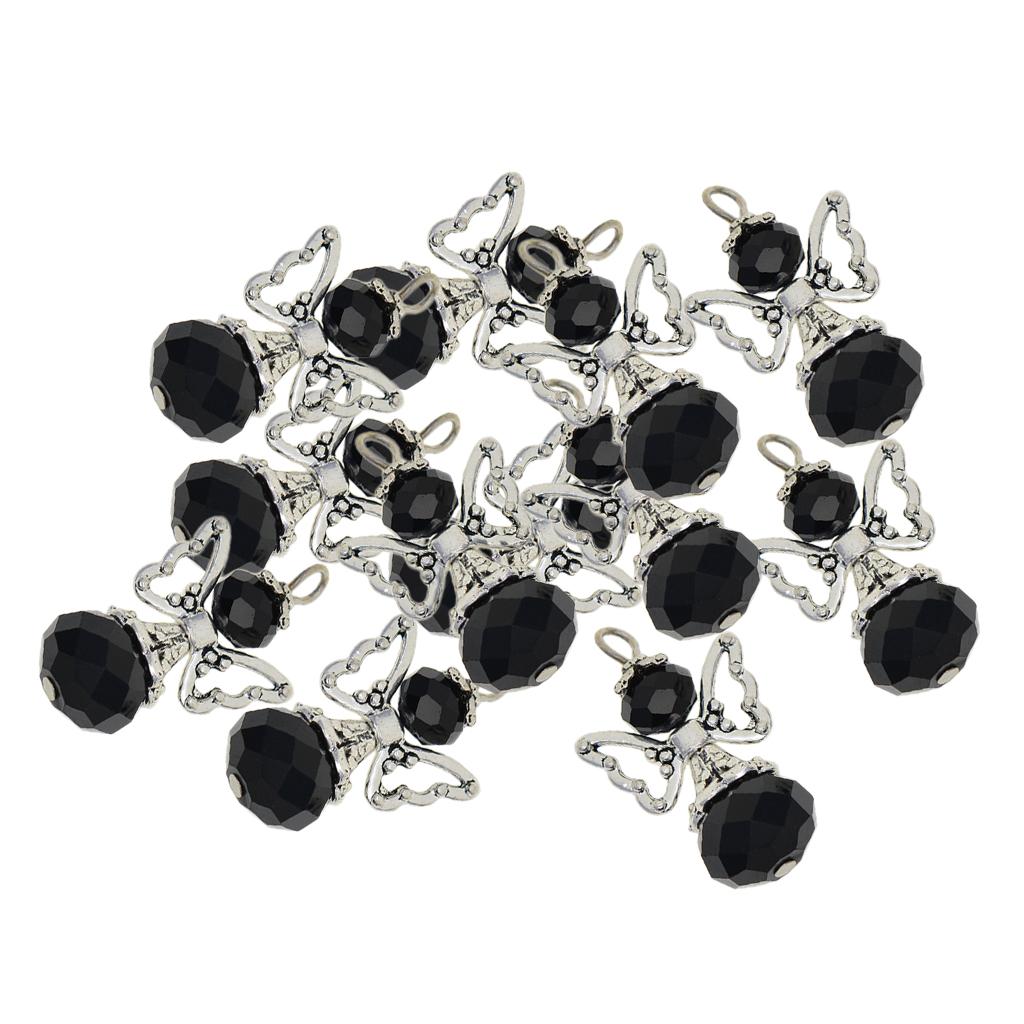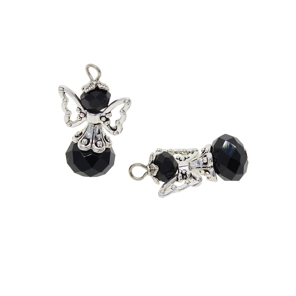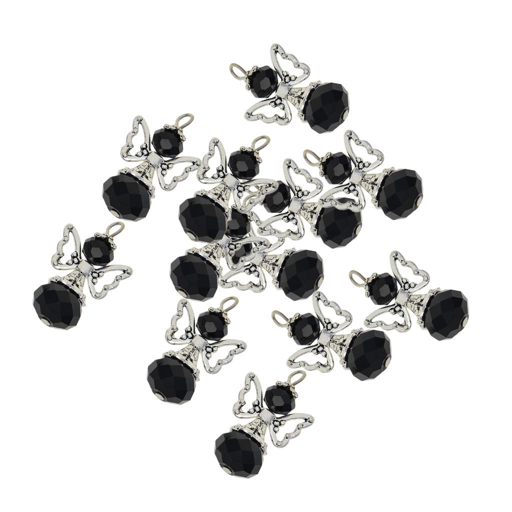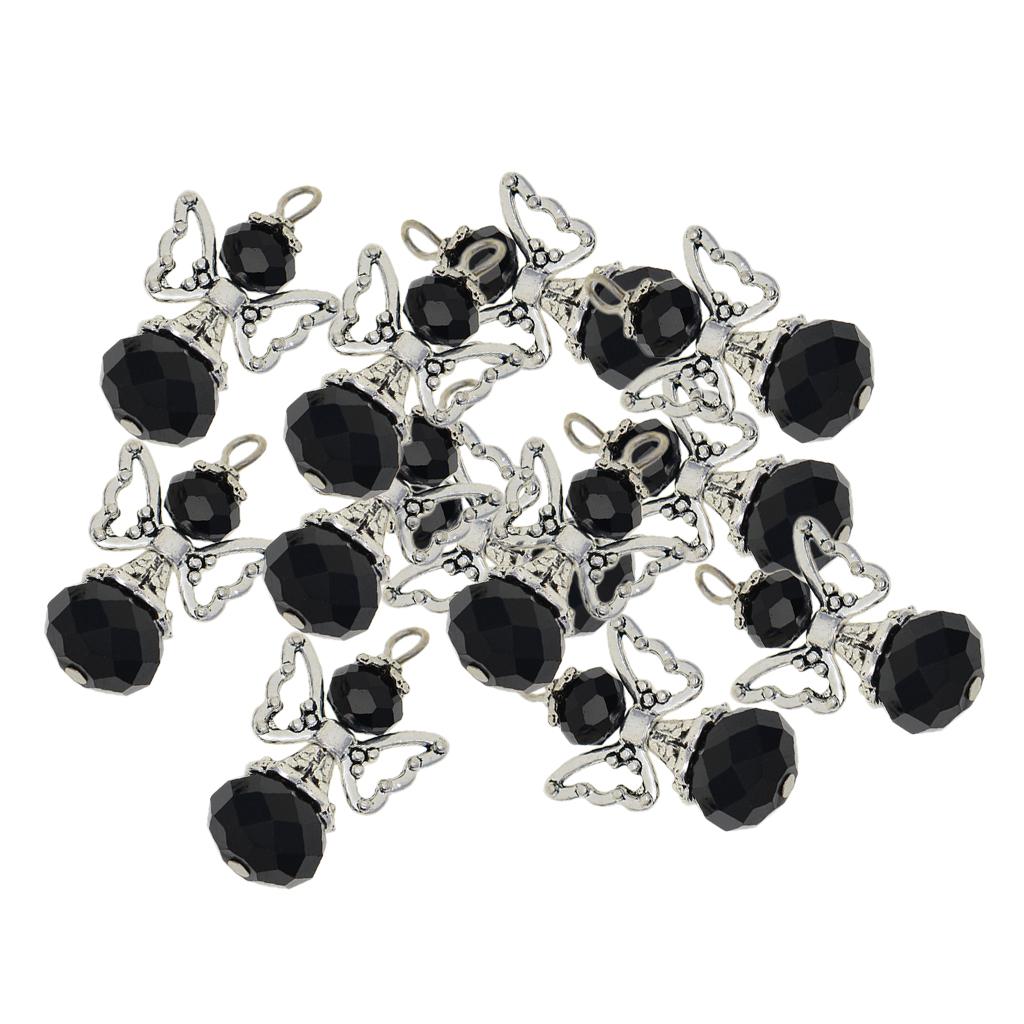12 Pieces Tibetan Silver Angel Wing Charms Glass Pendant Bead black