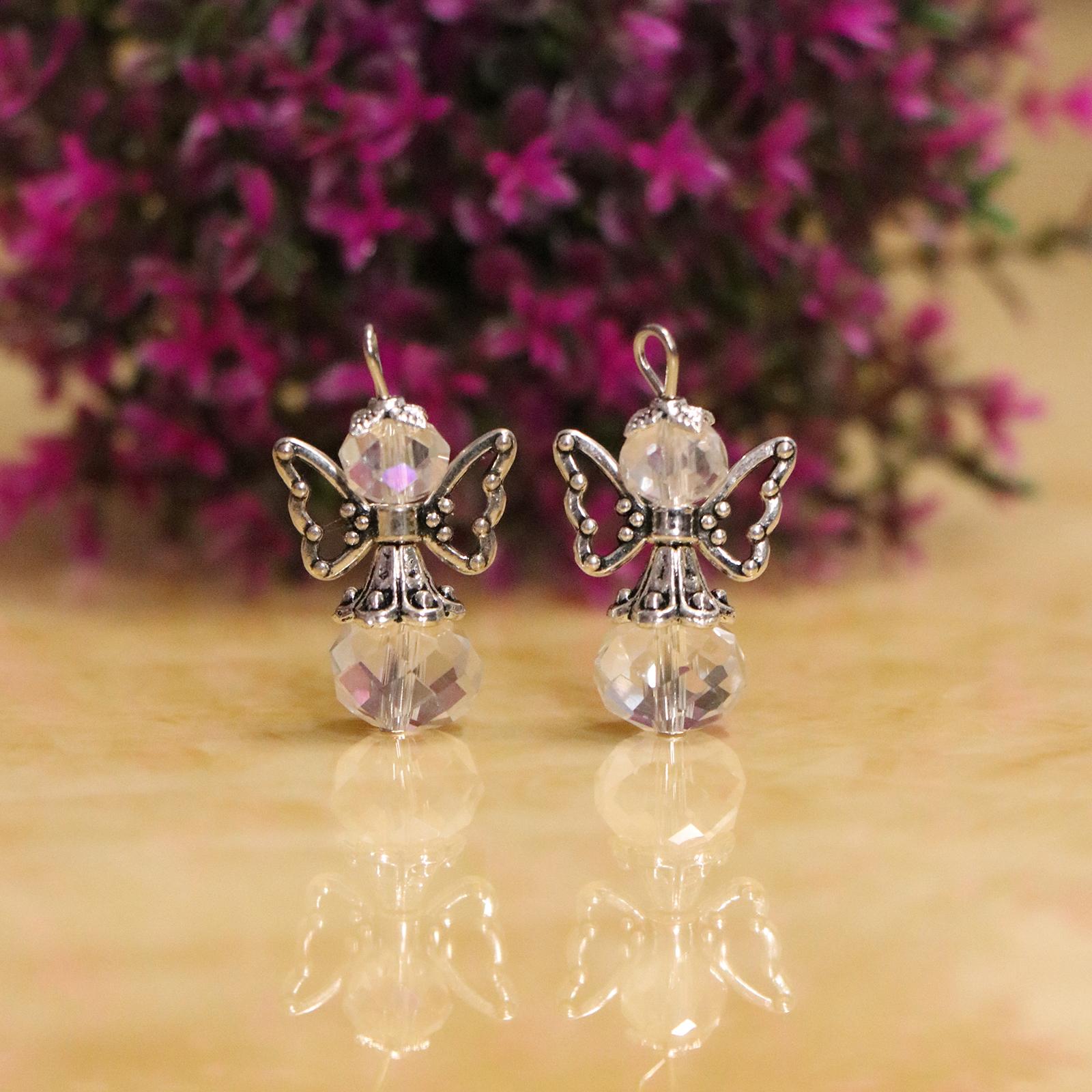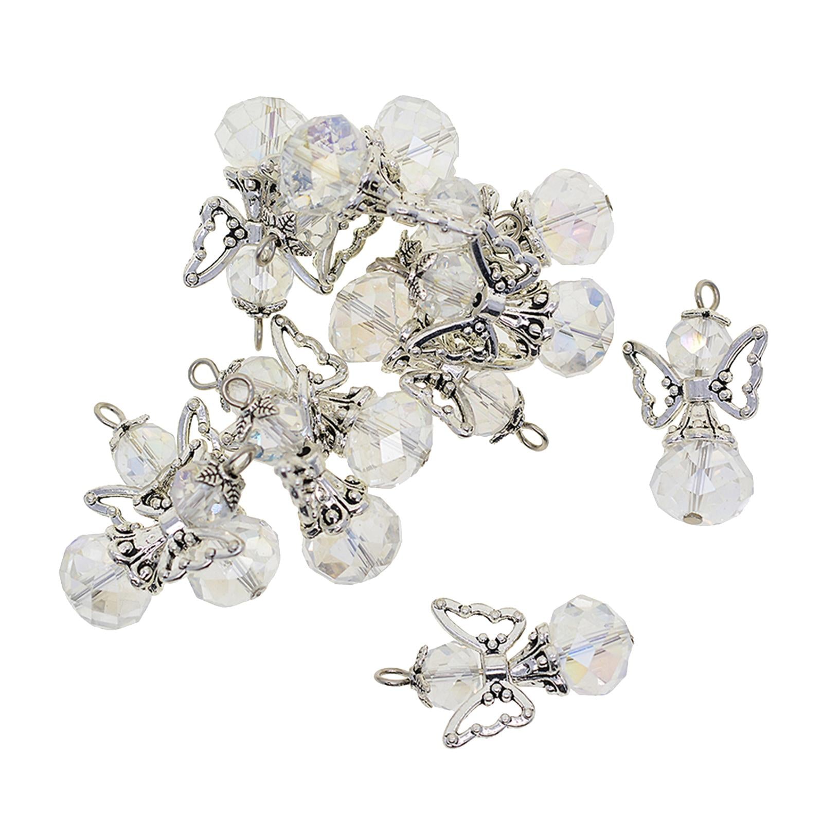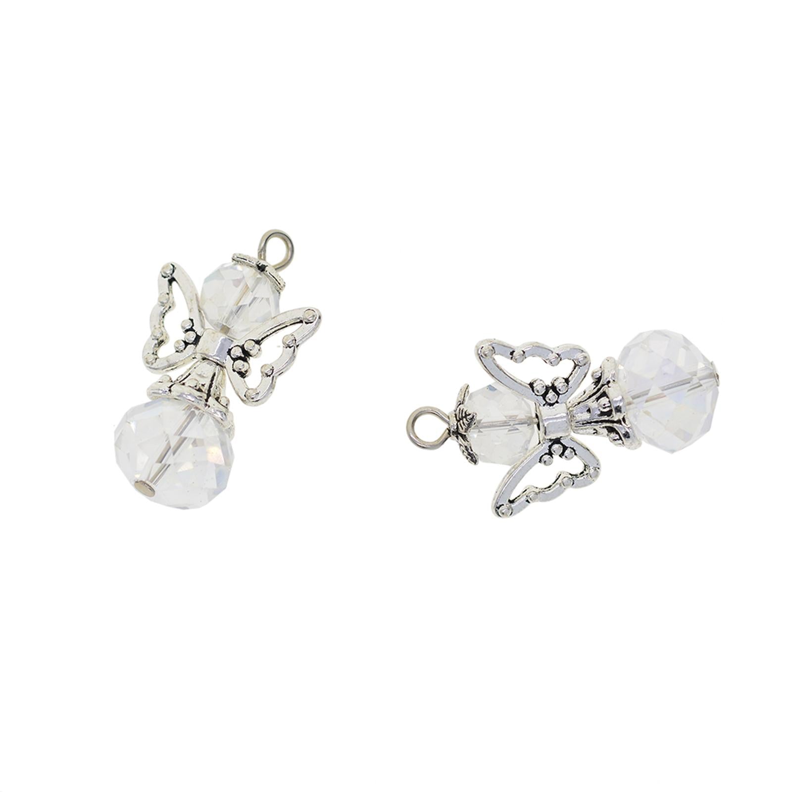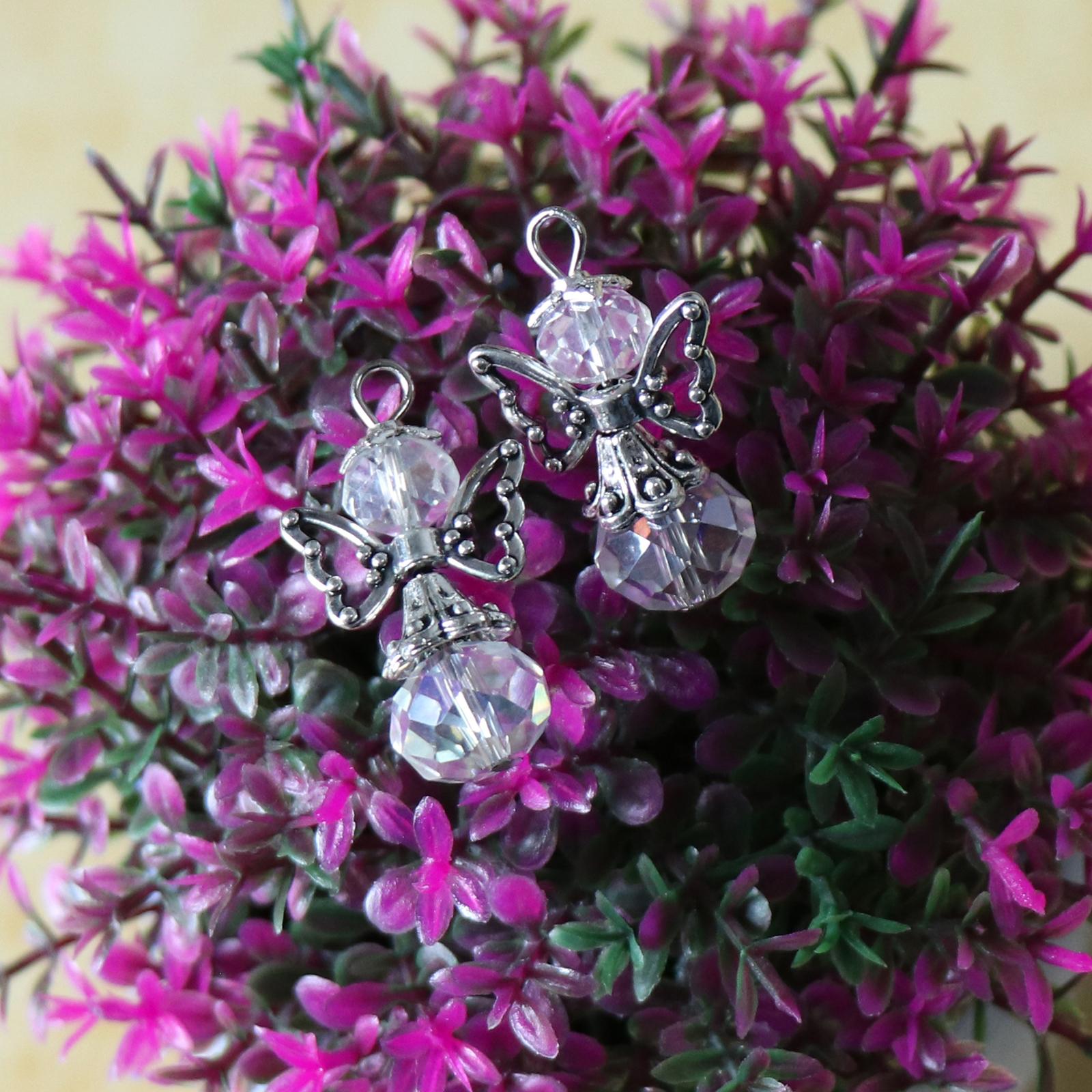 12 Pieces Tibetan Silver Angel Wing Charms Glass Pendant Bead clear