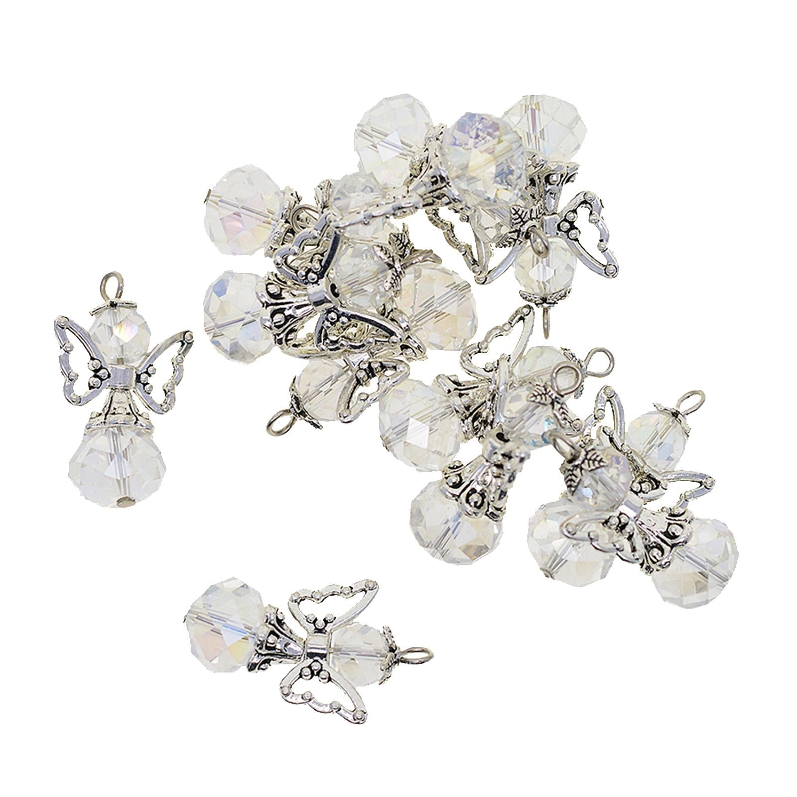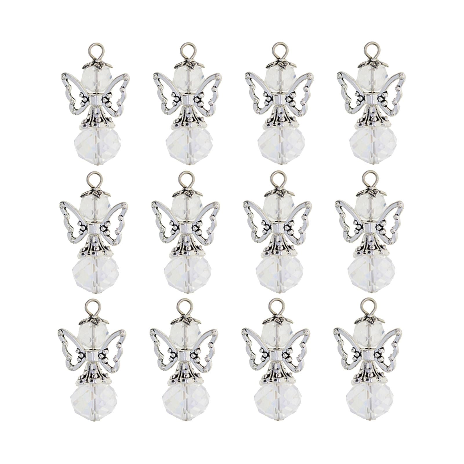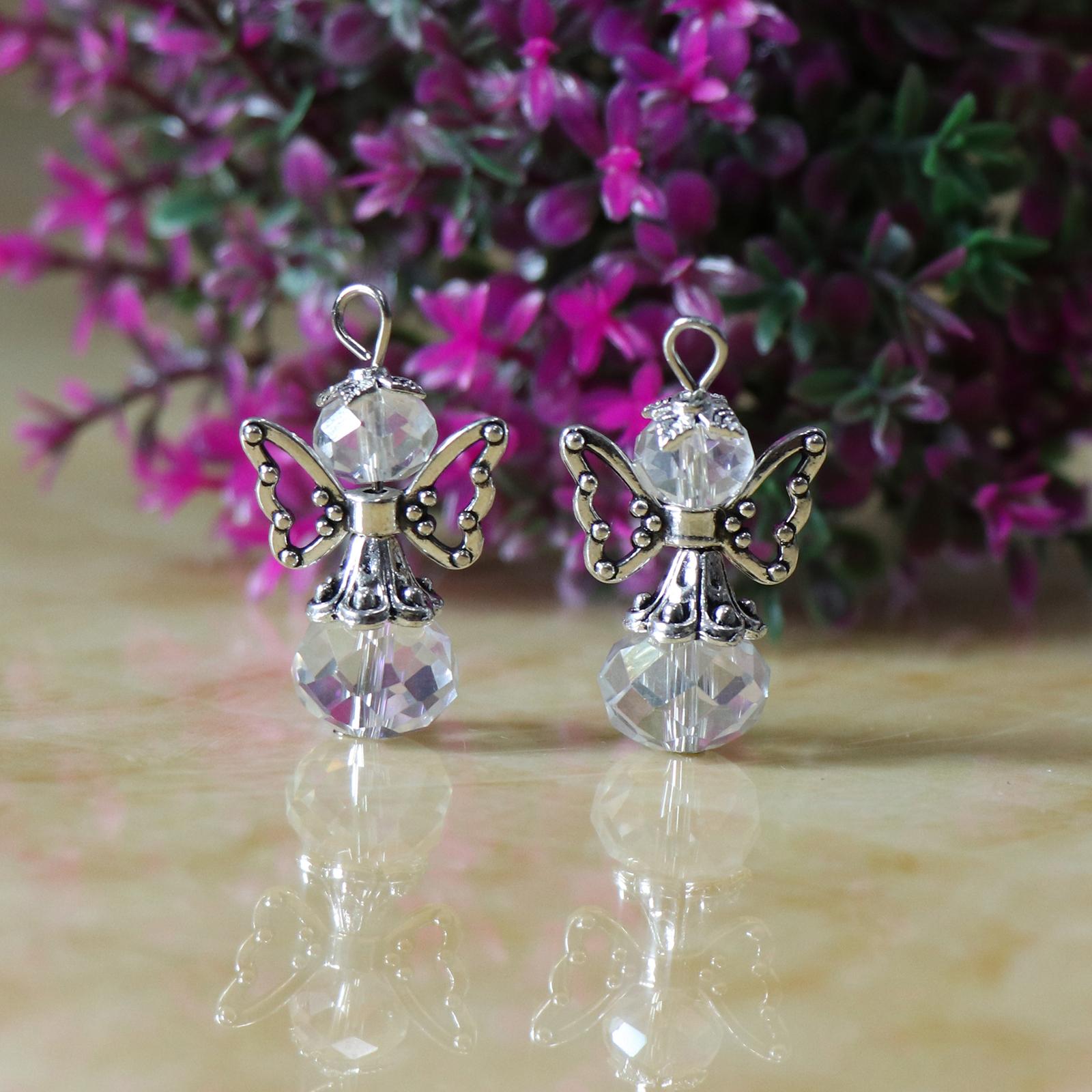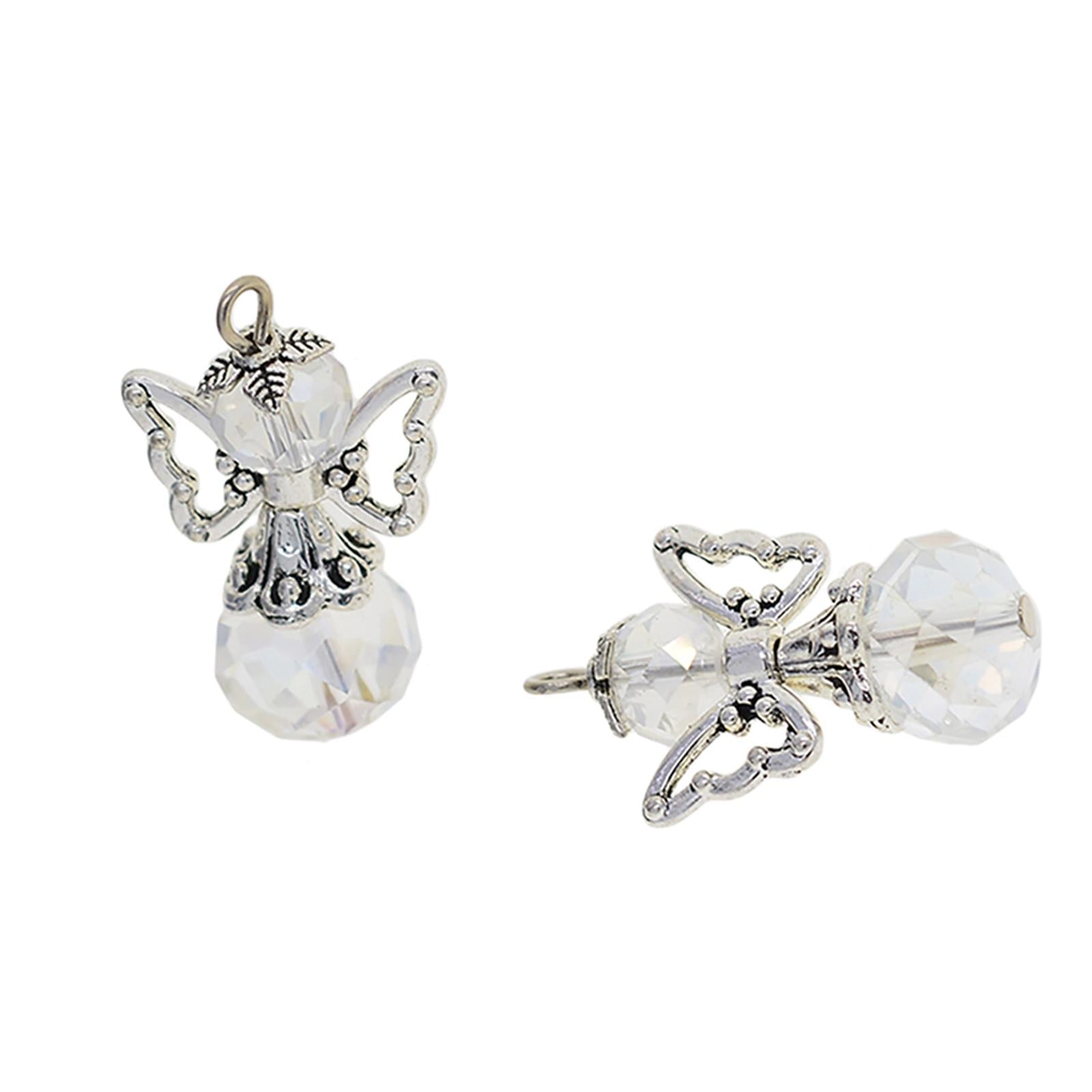 12 Pieces Tibetan Silver Angel Wing Charms Glass Pendant Bead clear