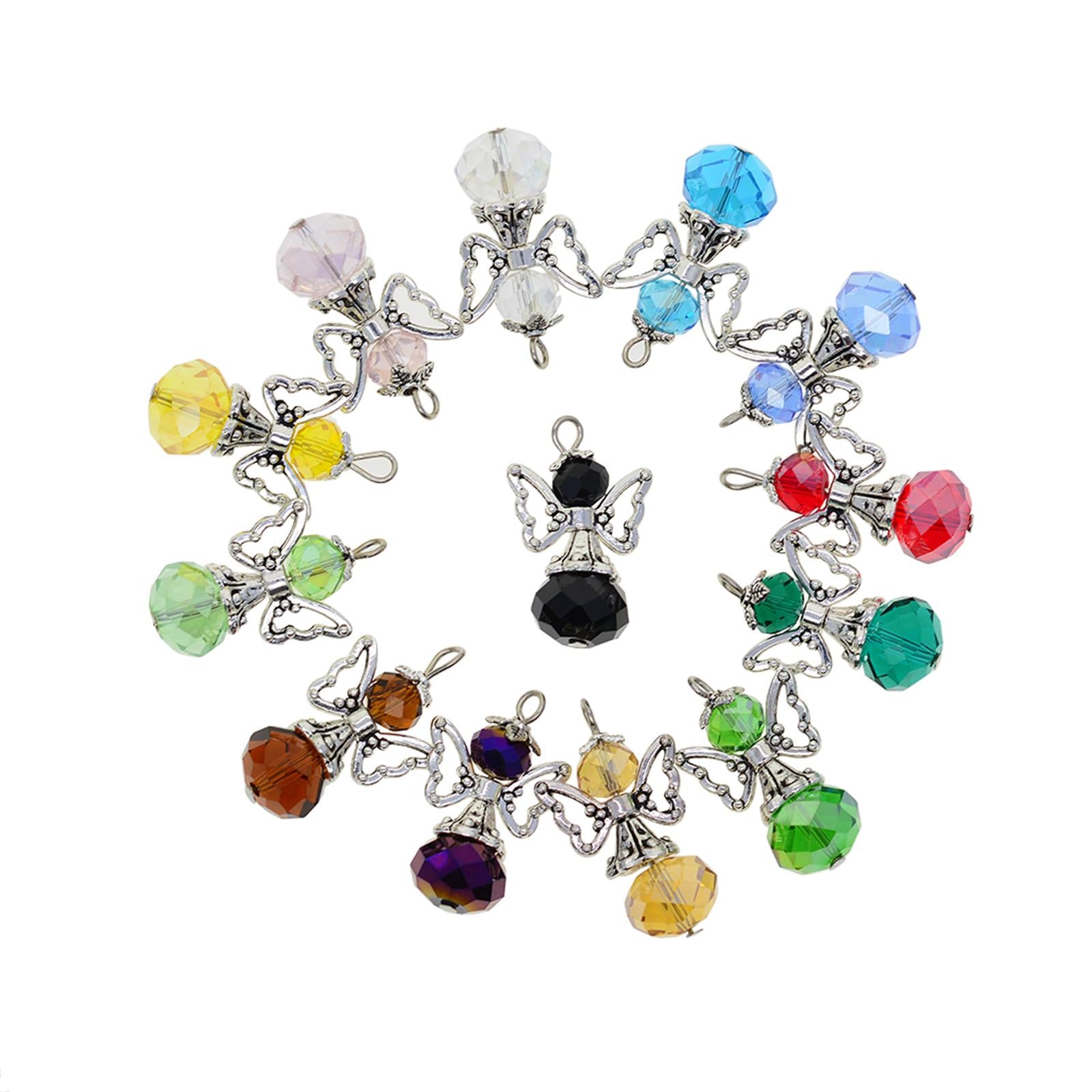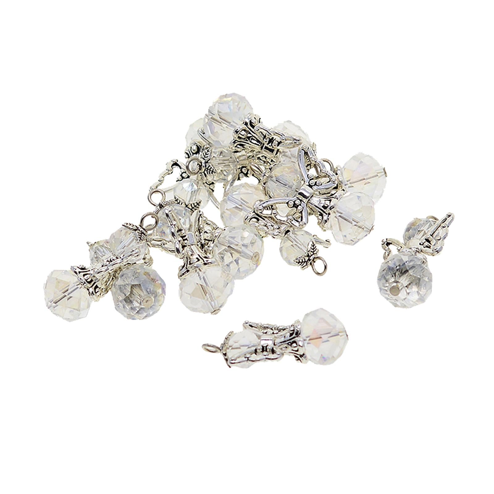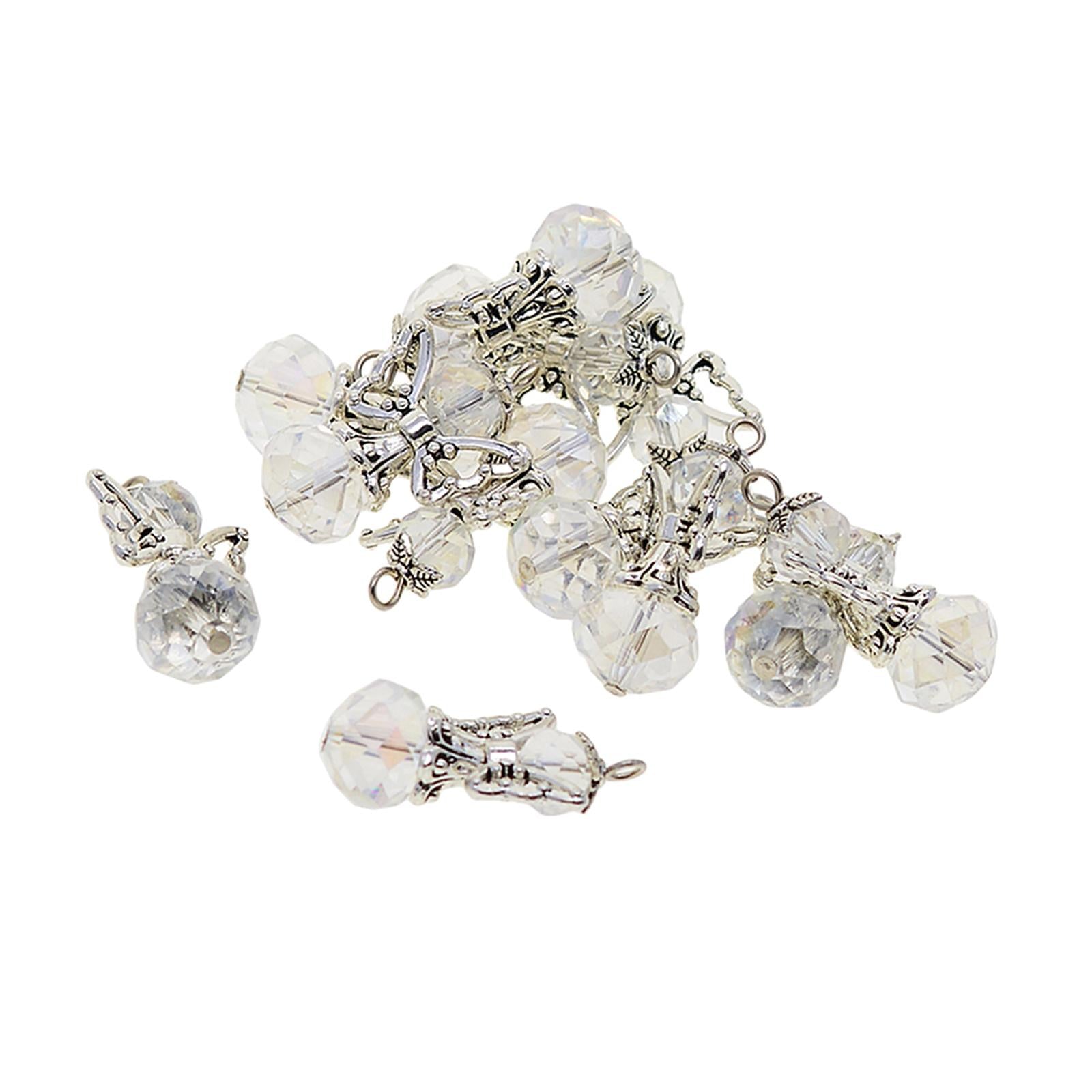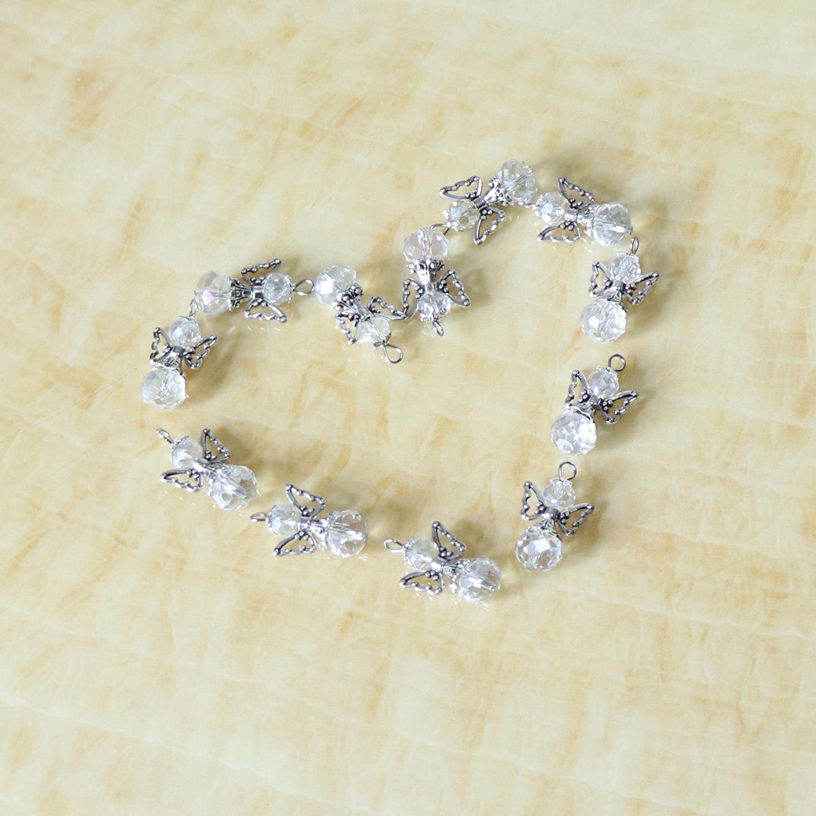 12 Pieces Tibetan Silver Angel Wing Charms Glass Pendant Bead clear