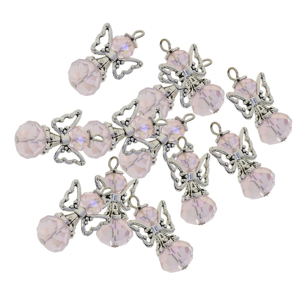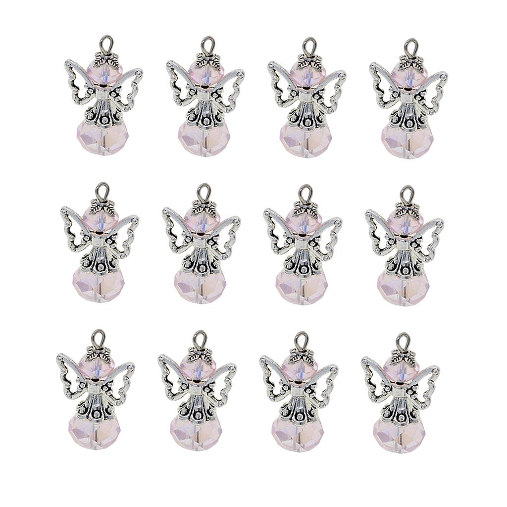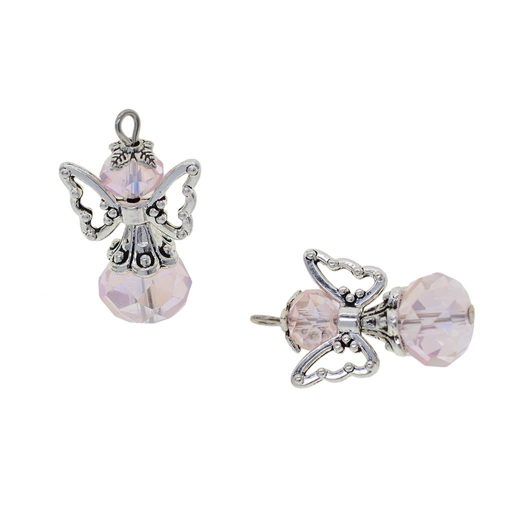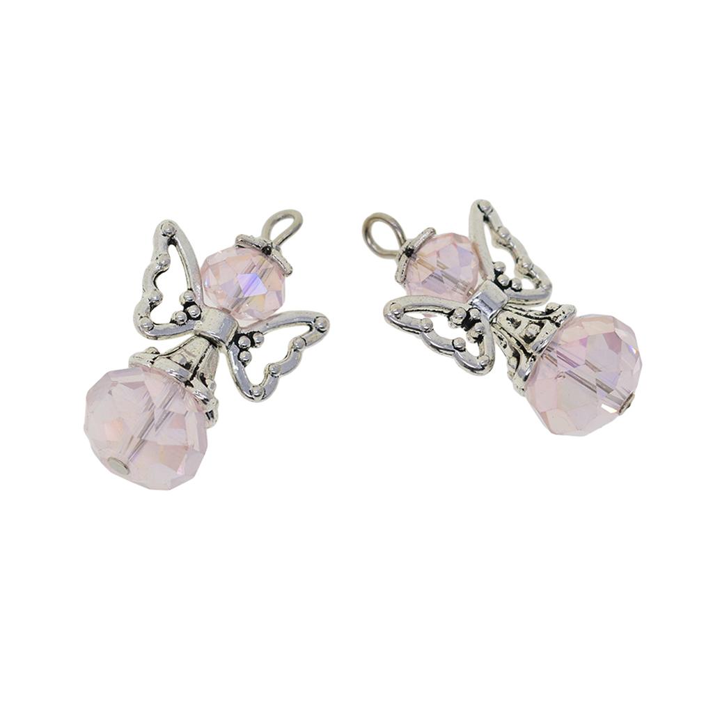 12 Pieces Tibetan Silver Angel Wing Charms Glass Pendant Bead pink