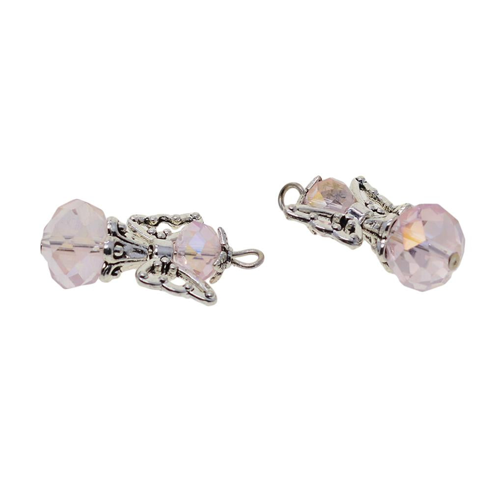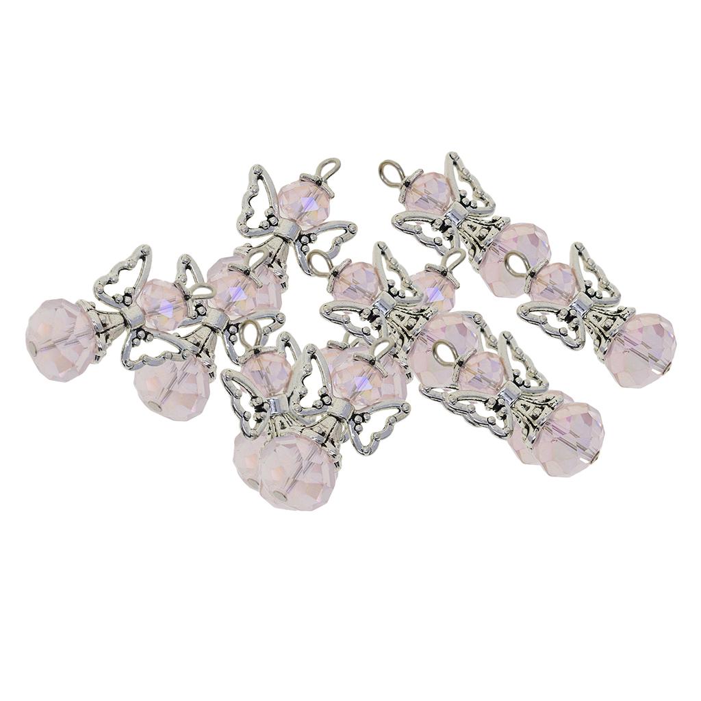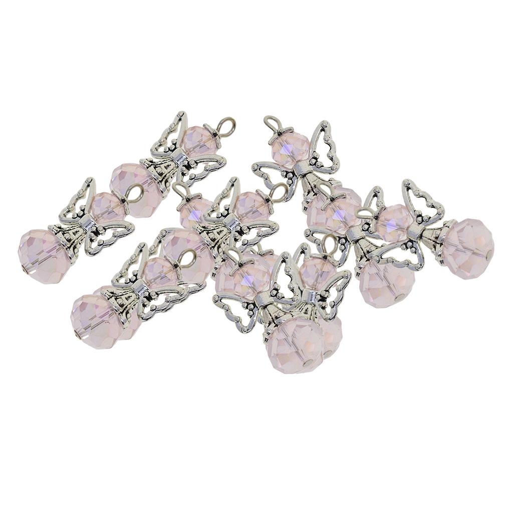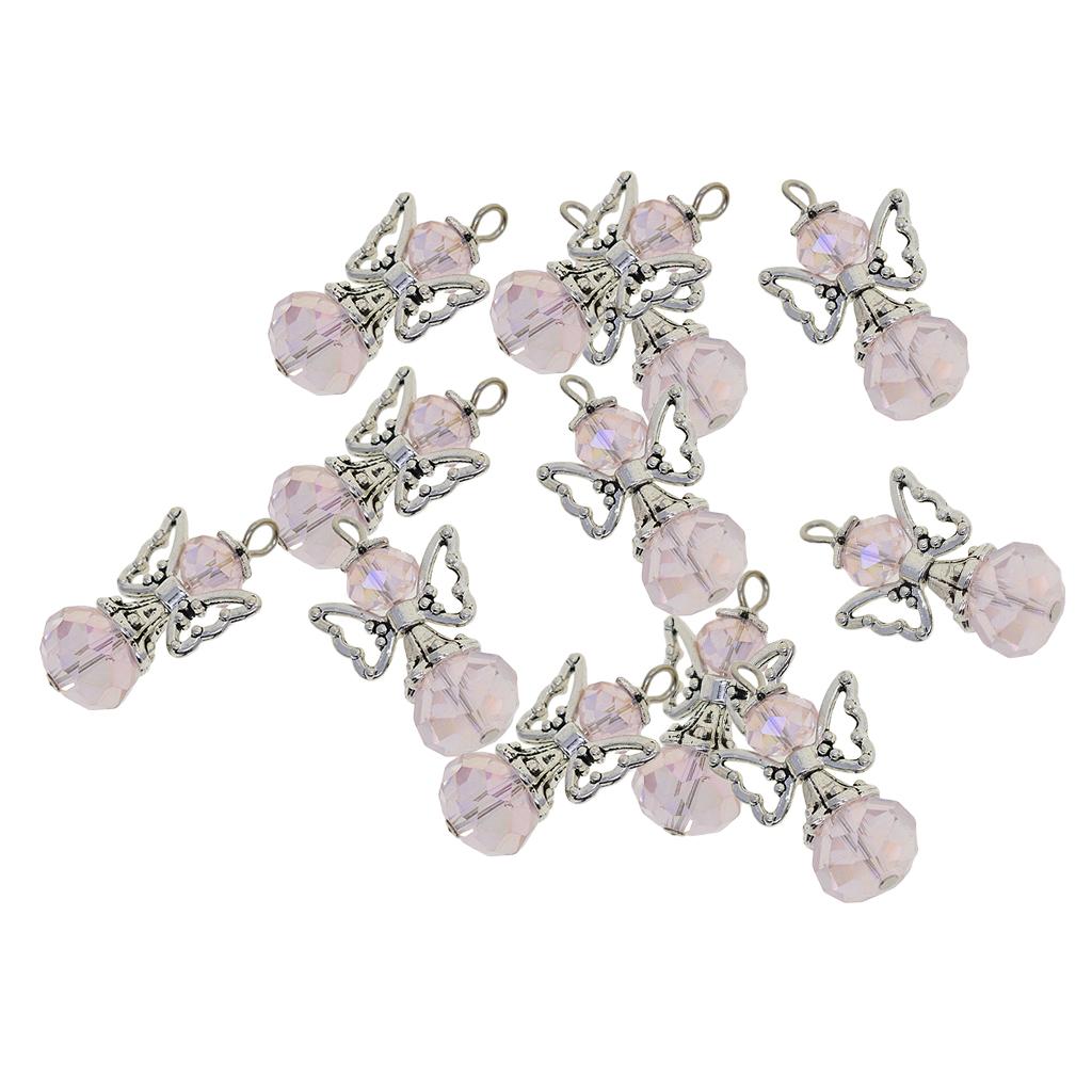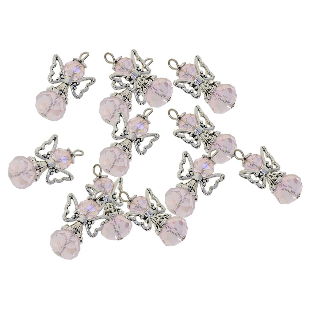 12 Pieces Tibetan Silver Angel Wing Charms Glass Pendant Bead pink