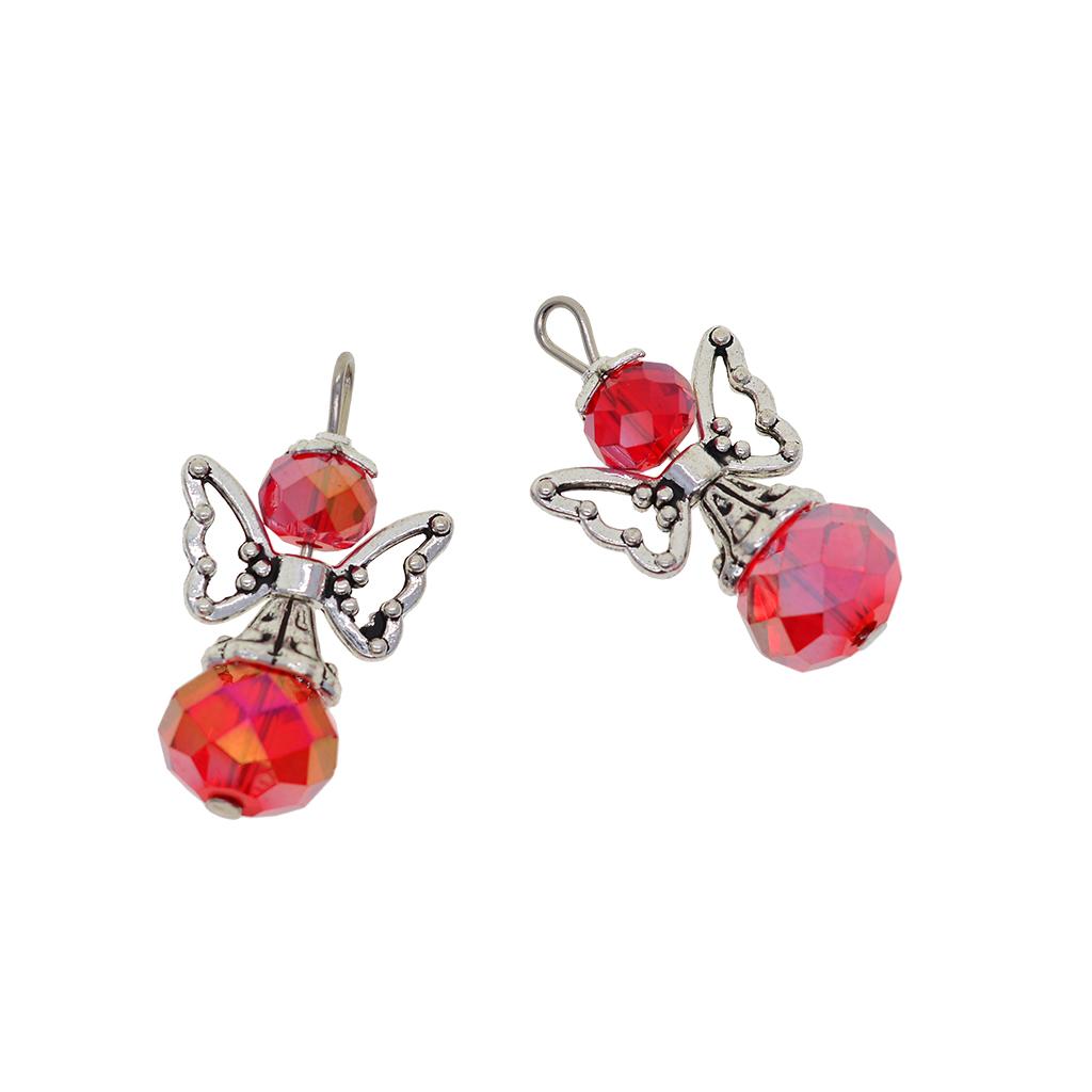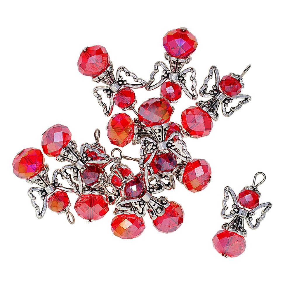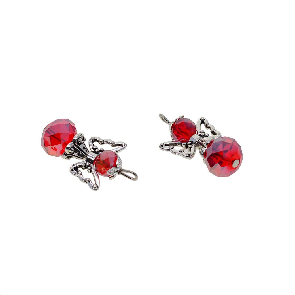 12 Pieces Tibetan Silver Angel Wing Charms Glass Pendant Bead red