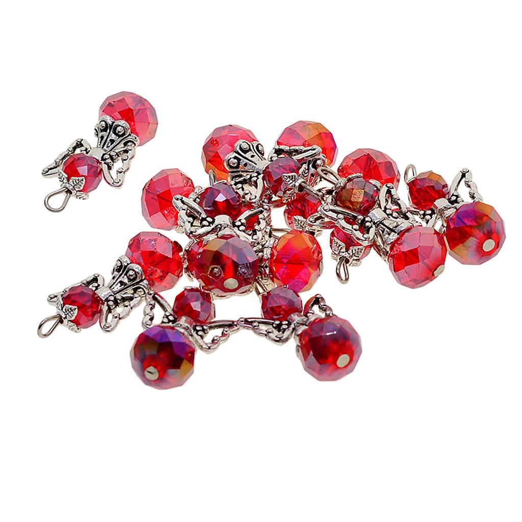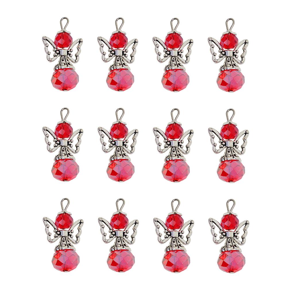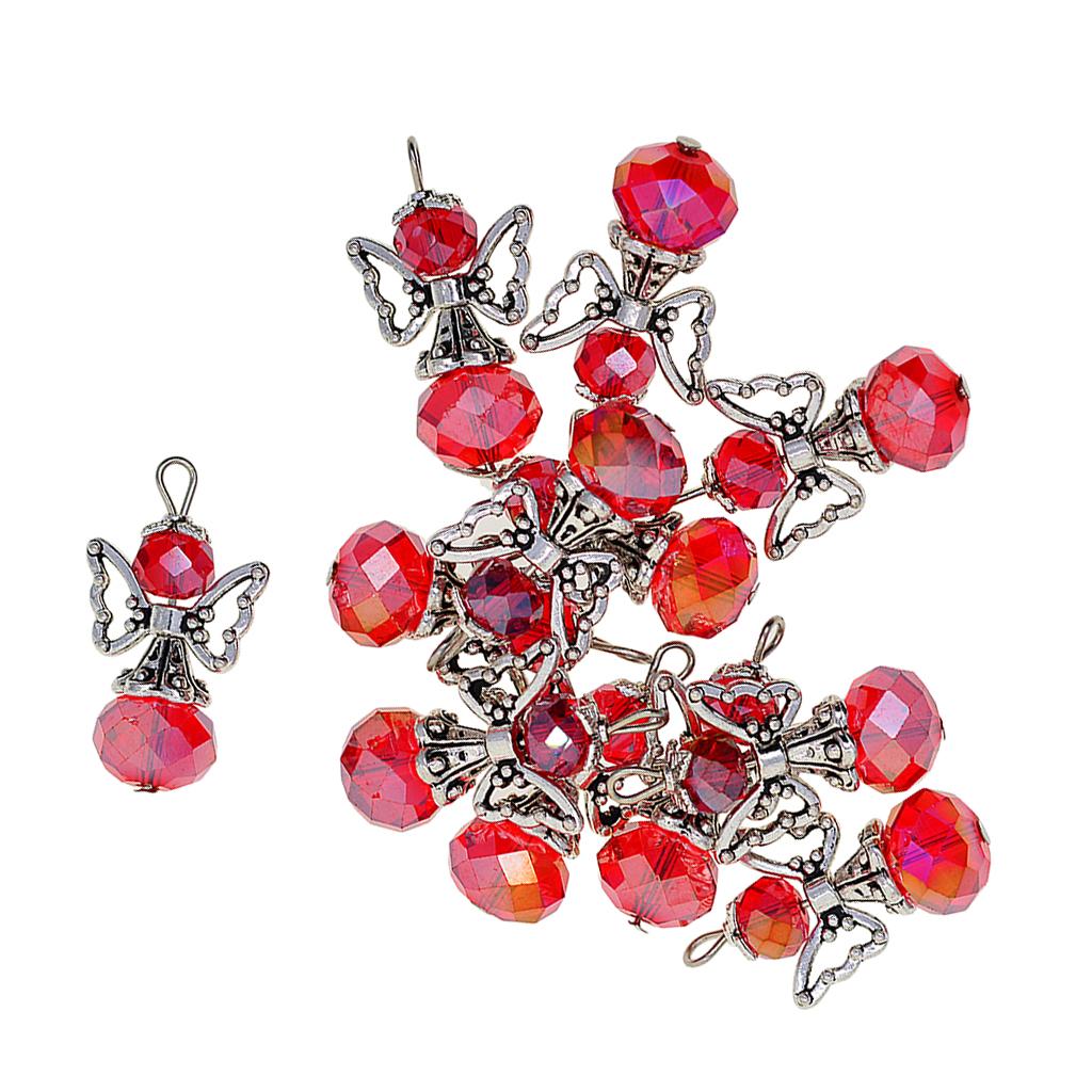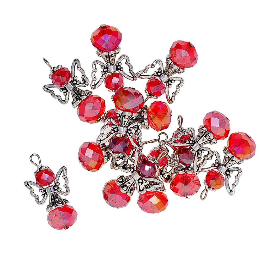 12 Pieces Tibetan Silver Angel Wing Charms Glass Pendant Bead red