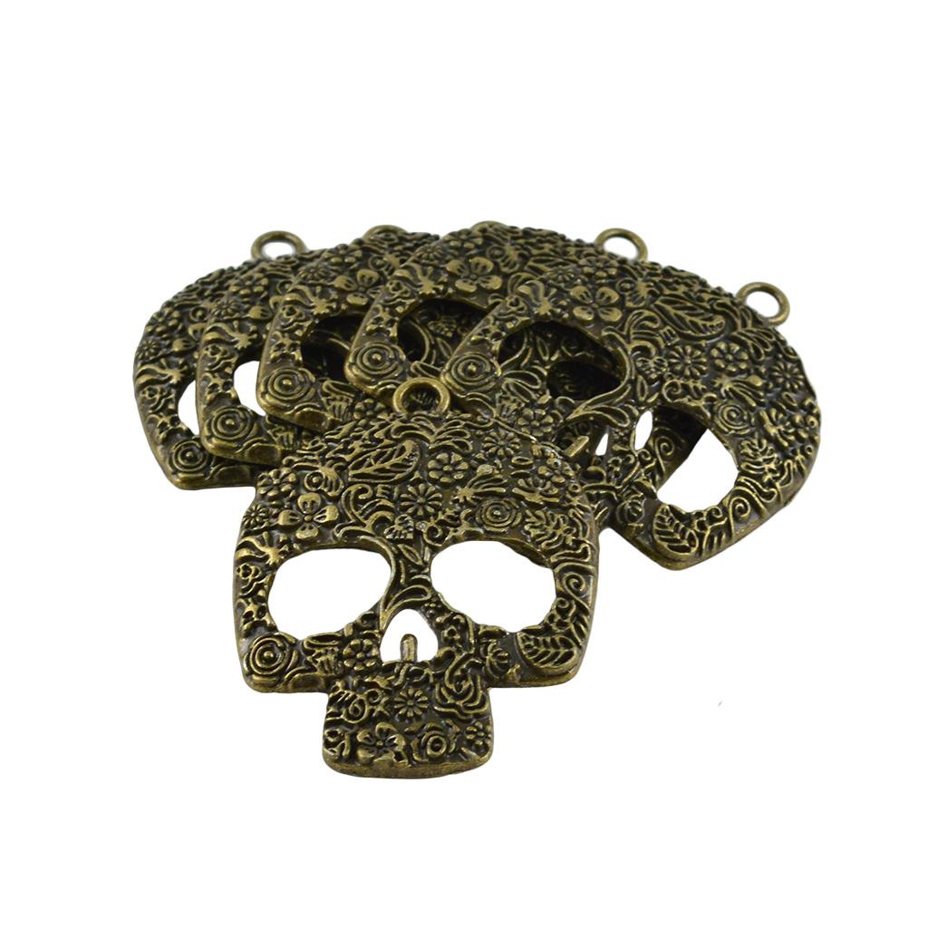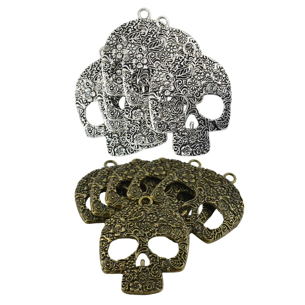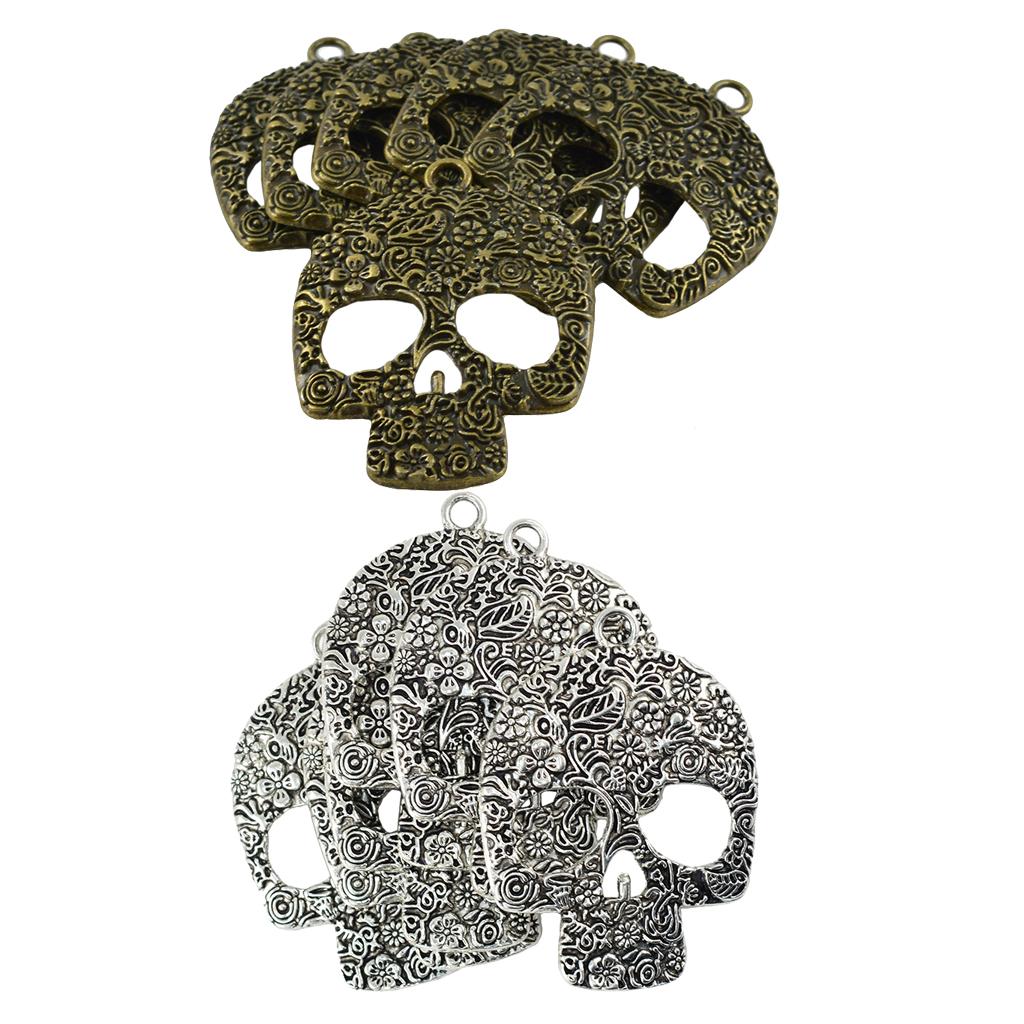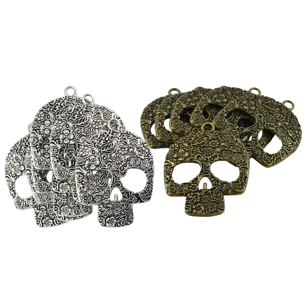 Tibetan Silver Extra Large Alloy Flower Skull Jewelry Making Pendant, great choice for DIY Halloween Day Jewelry accessory.