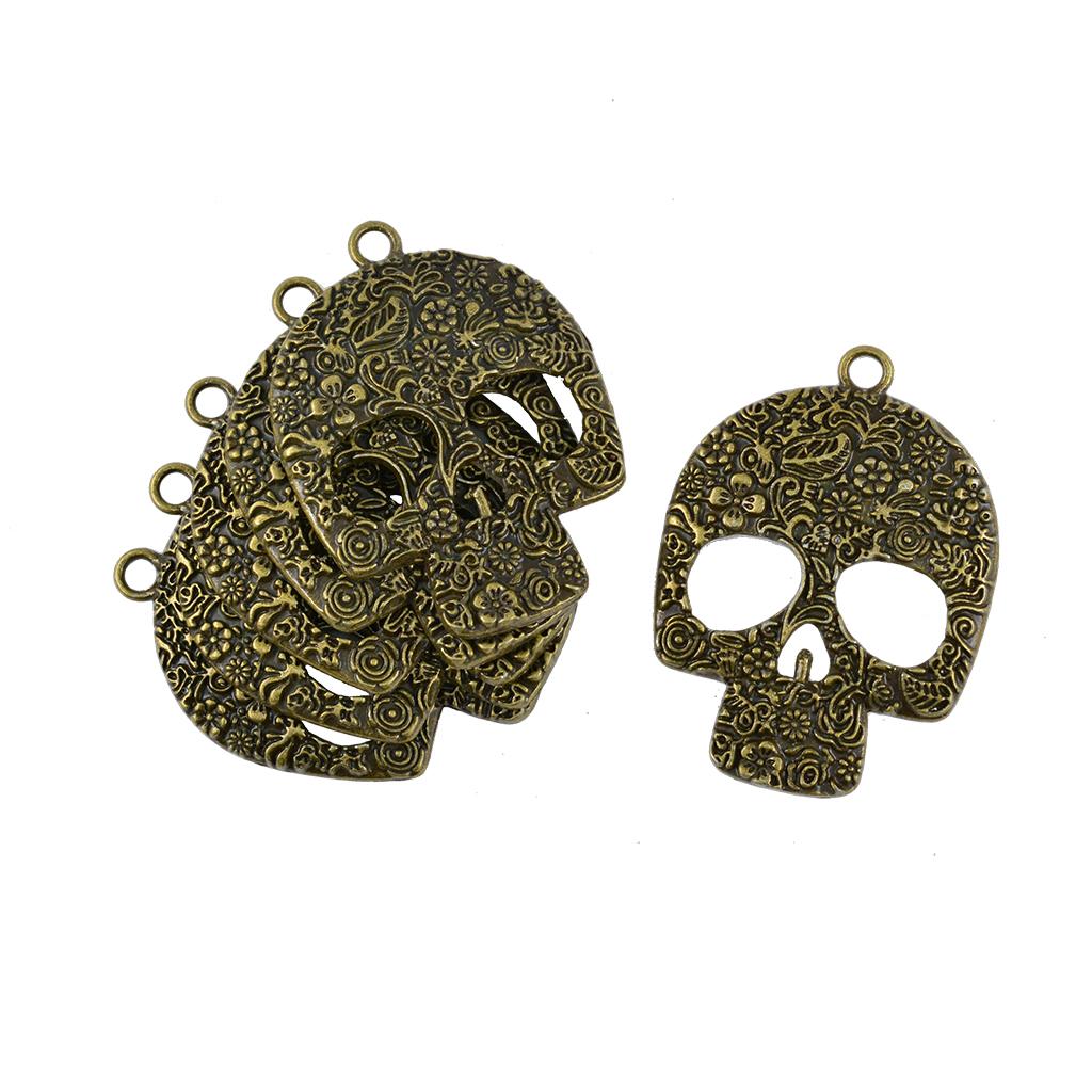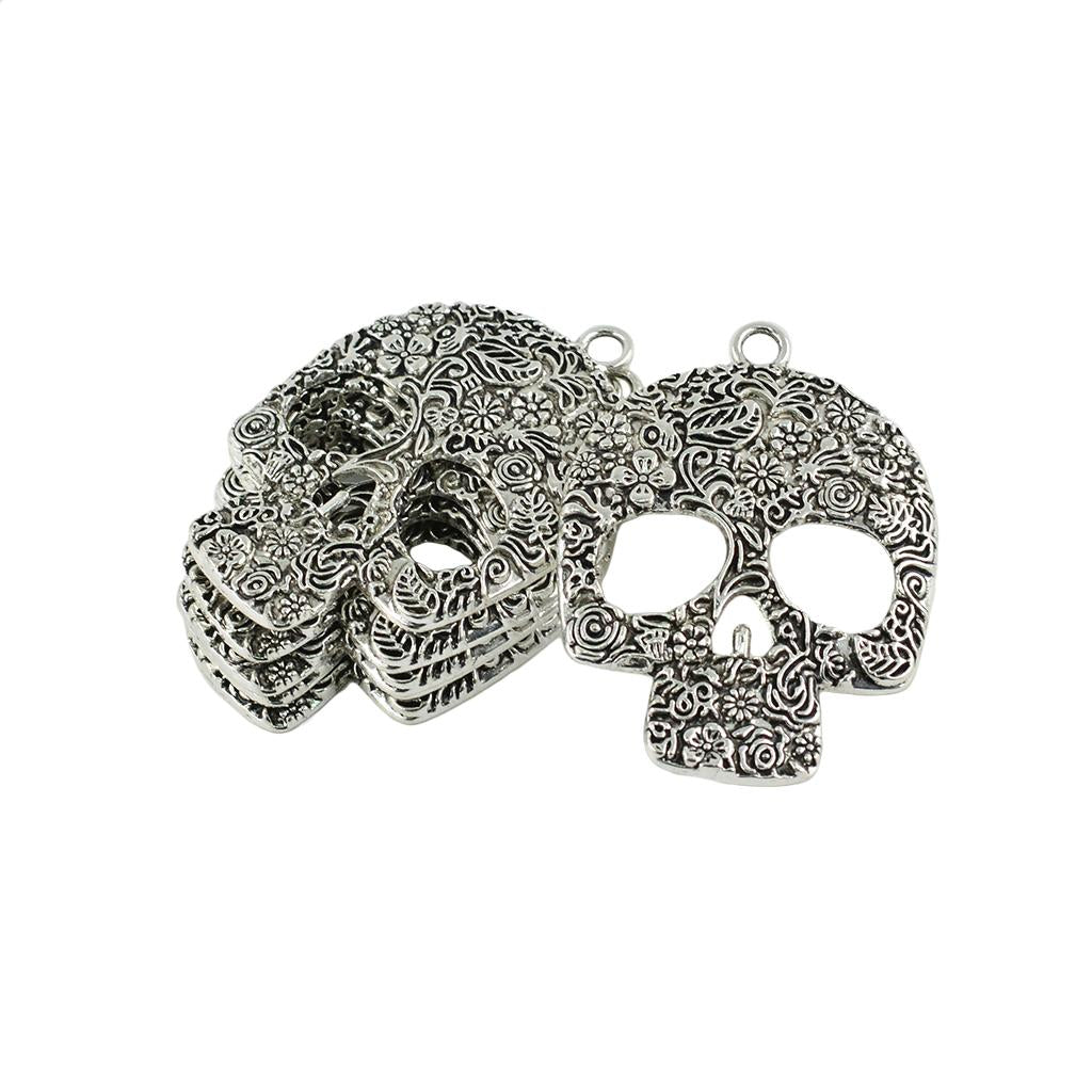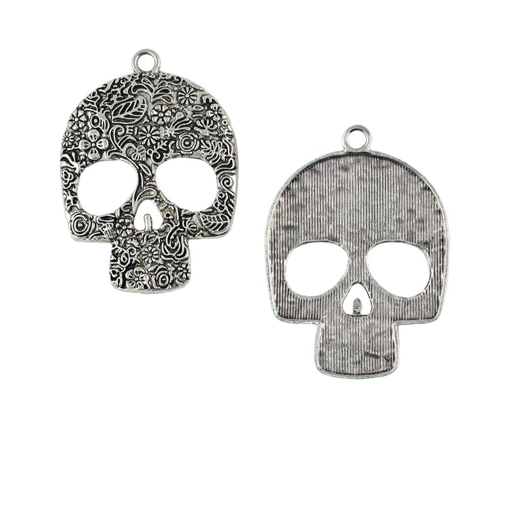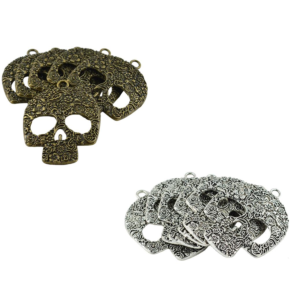 Tibetan Silver Extra Large Alloy Flower Skull Jewelry Making Pendant, great choice for DIY Halloween Day Jewelry accessory.