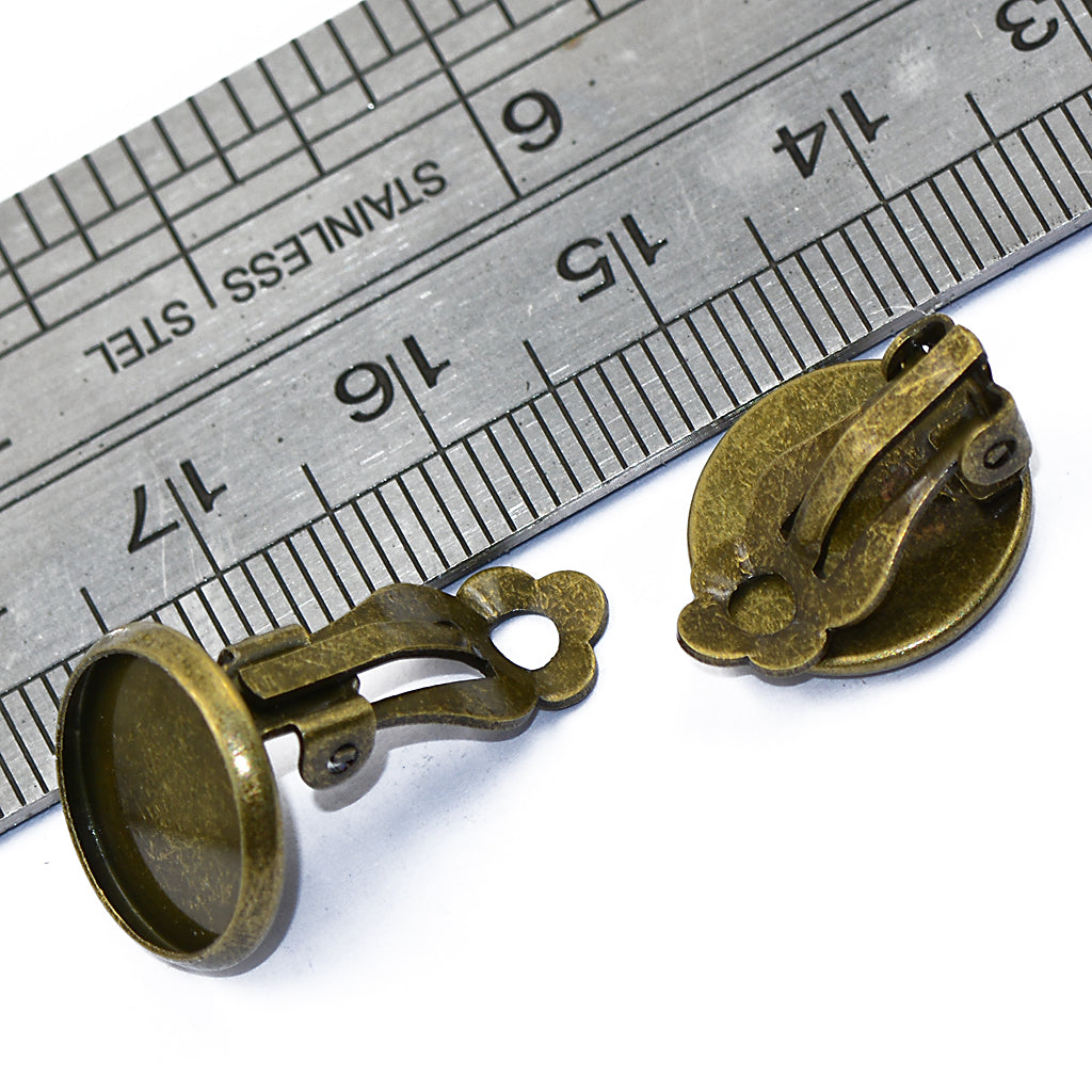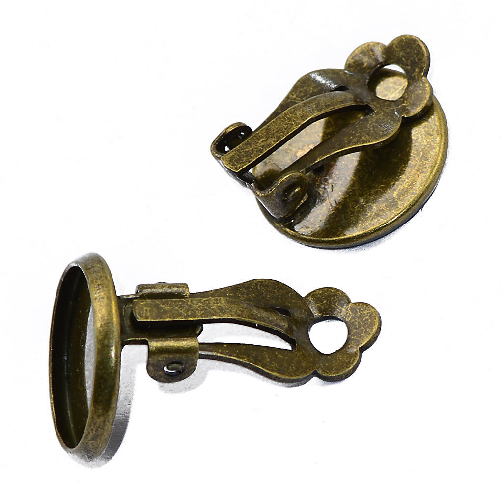 12 x Clip On Earrings Non Pierced w.Bezel fit 12mm Cabochon Jewelry Making