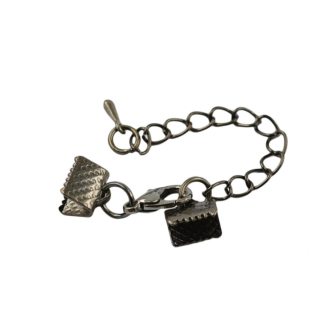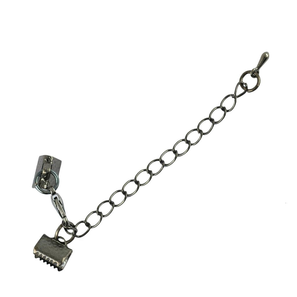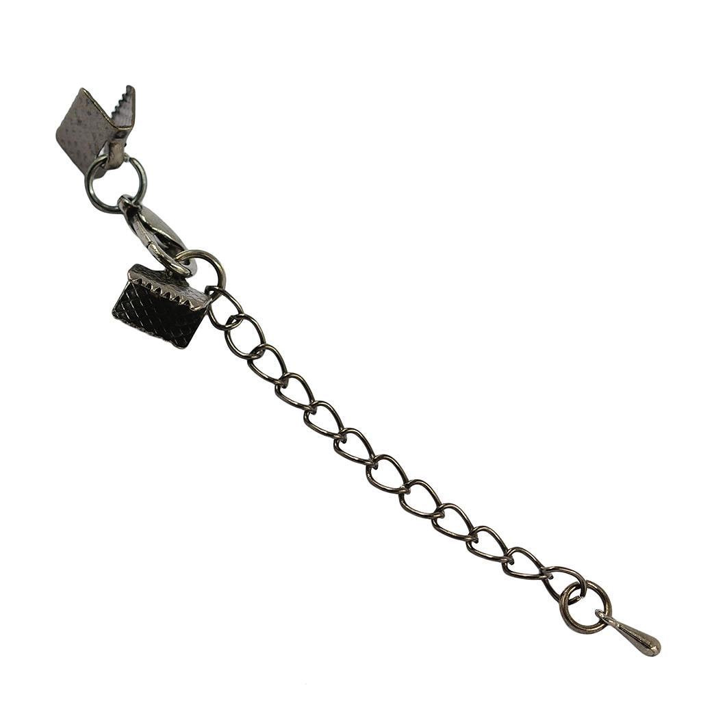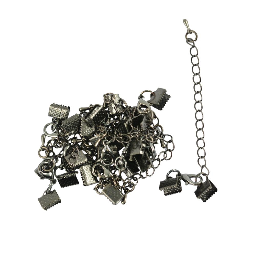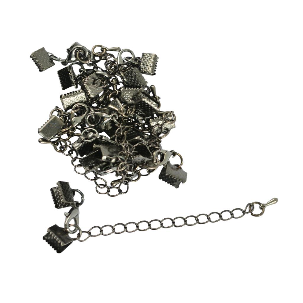 12 x Lobster Claw Clasp Crimp Clip Ends with Extender Chain Hematite Black