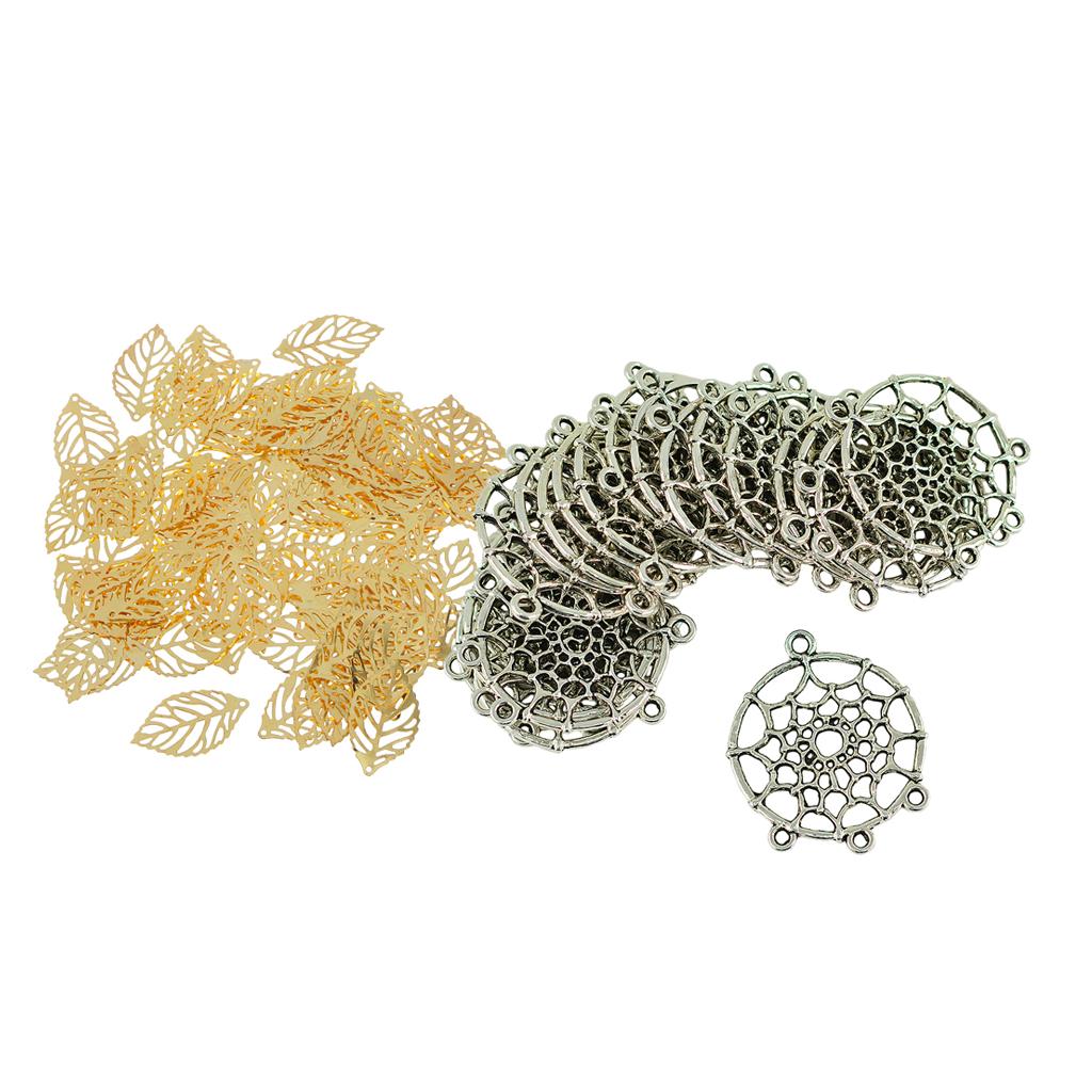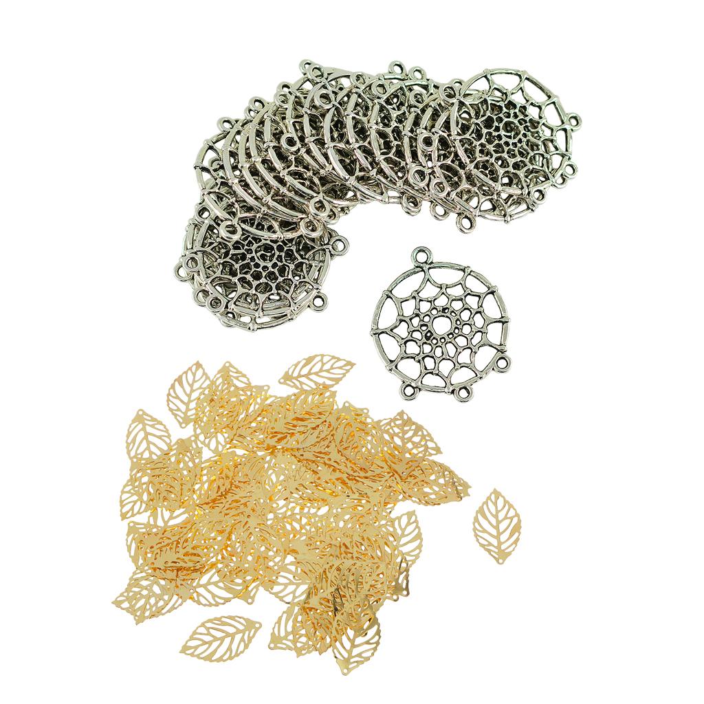120 Piece Indian Dream Catcher & Filigree Hollow Leaf Earring Necklace DIY Pendant Connector Jewelry Making