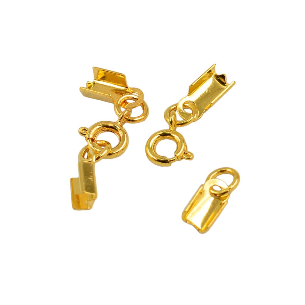Material: Metal, Make jewelry making easy! Cord Crimp Length: Approx. 9mm Width: Approx. 4mm, Round Spring Clasp size: Approx. 6 mm