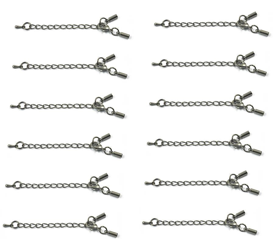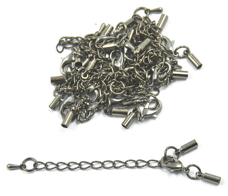 12pcs Clasp and Clip Ends Set with Extender Chain Hematite 3mm