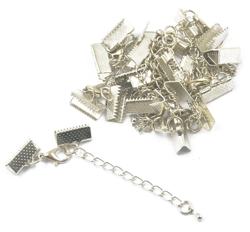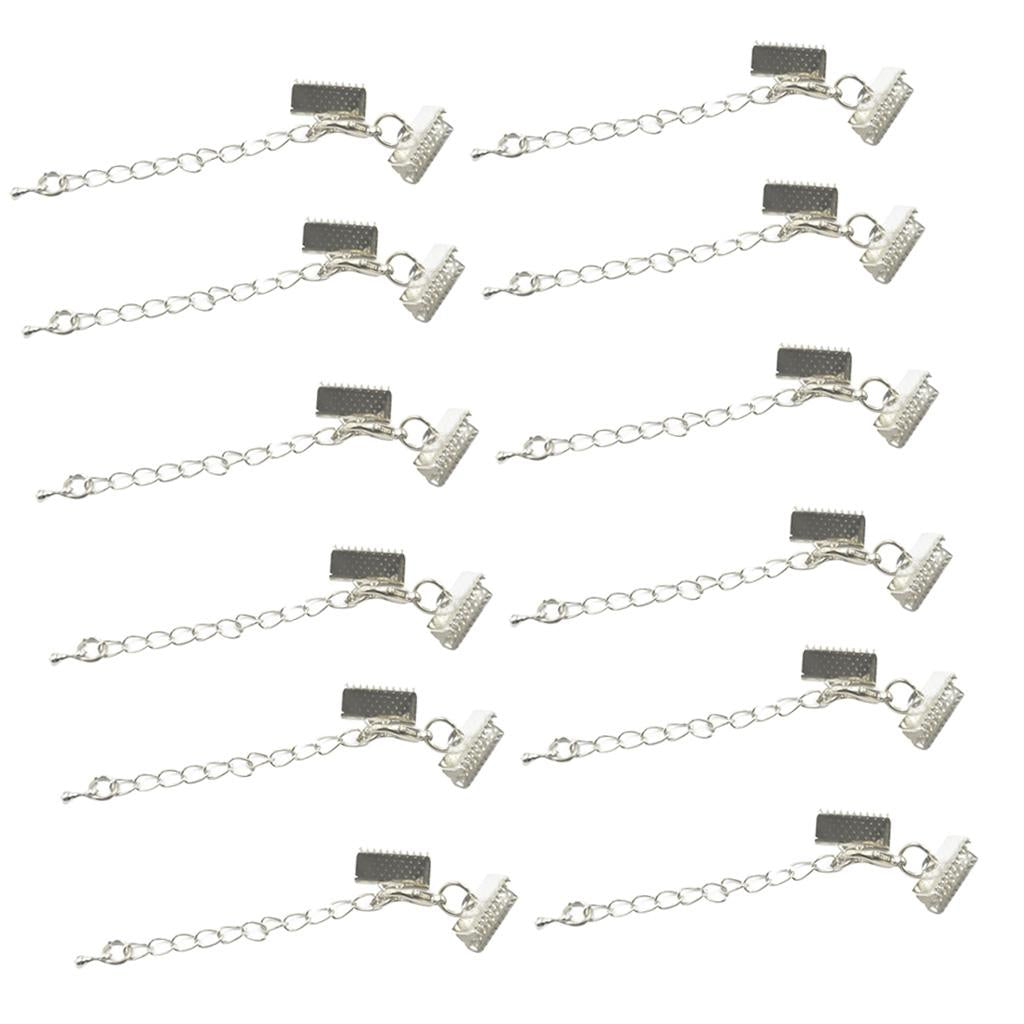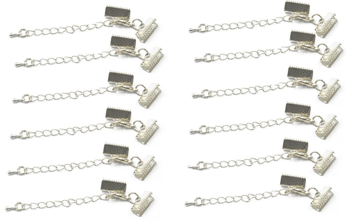 12pcs Clasp and Clip Ends Set with Extender Chain Silver 6 x 13mm