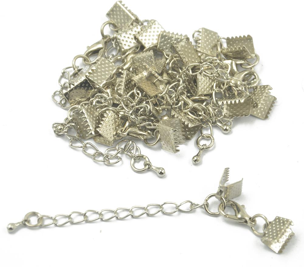 12pcs Clasp and Clip Ends Set with Extender Chain Silver 6 x 8mm