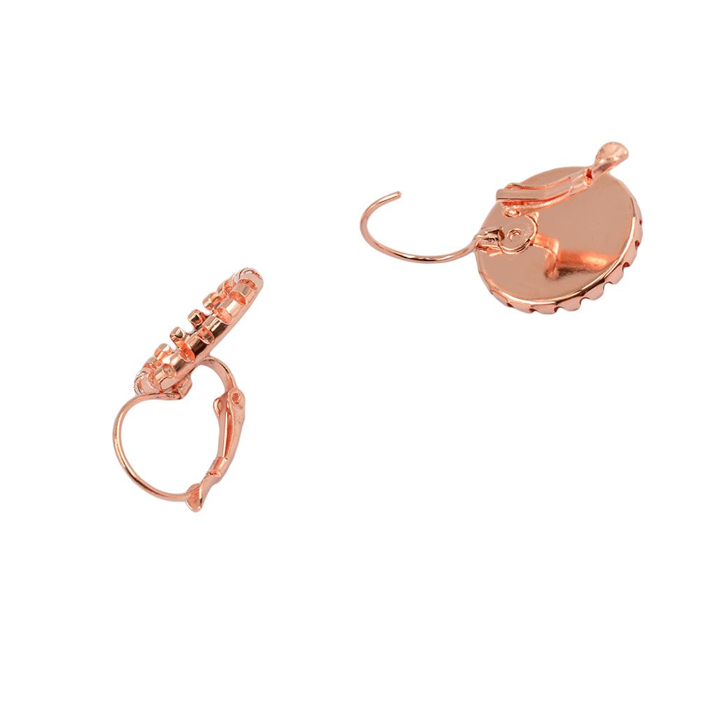 12pcs Levereback Earring Hook Filigree Flower Bezel Cabochon Rose Gold
