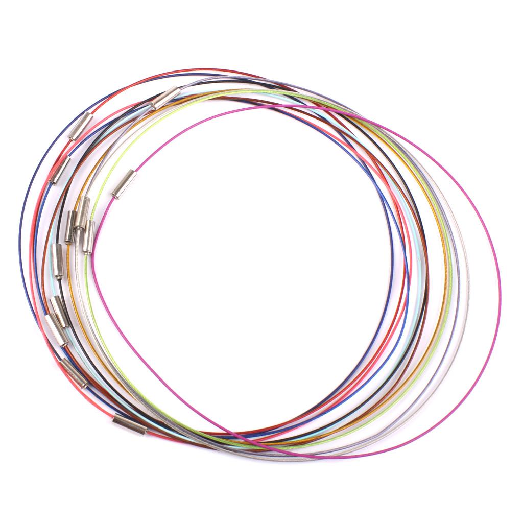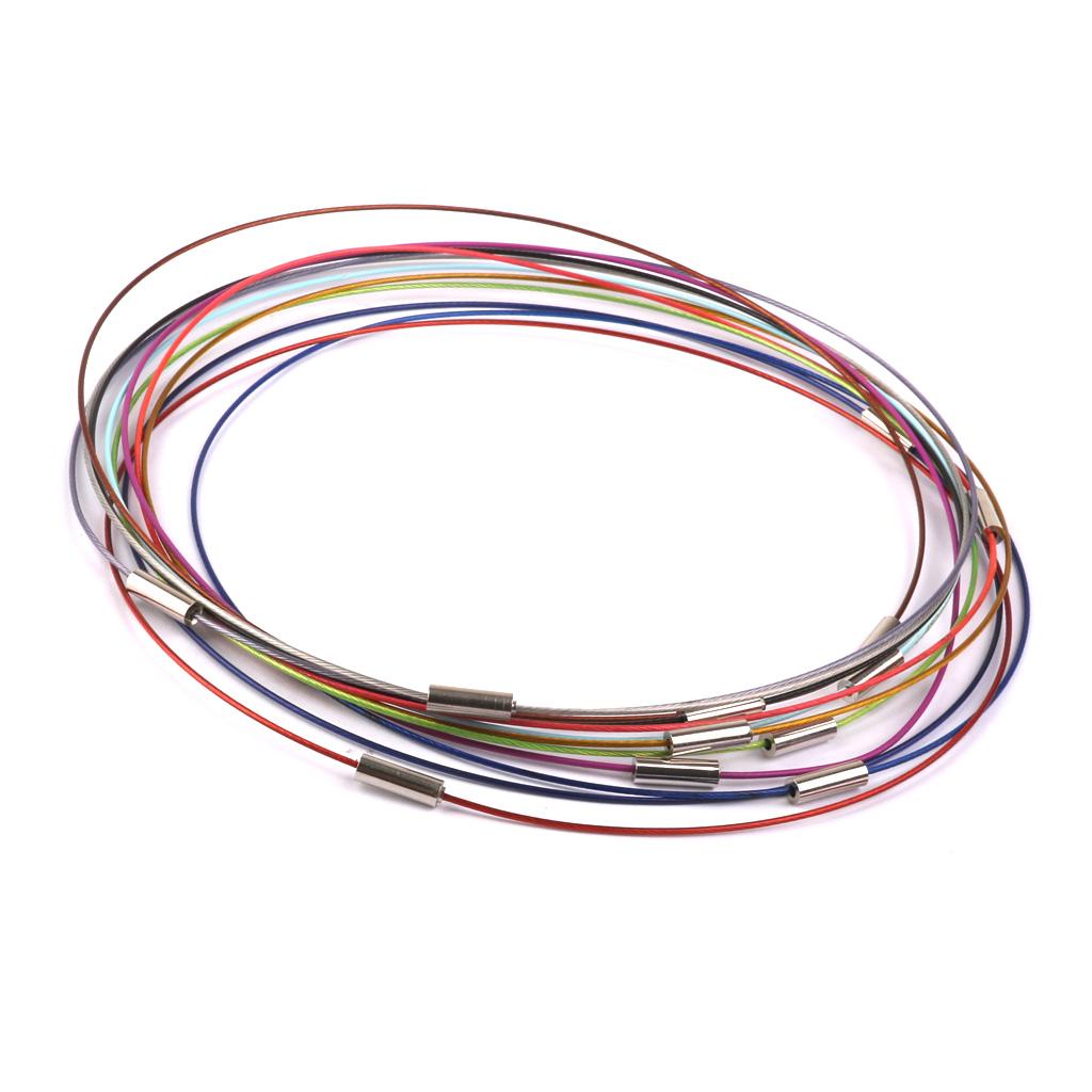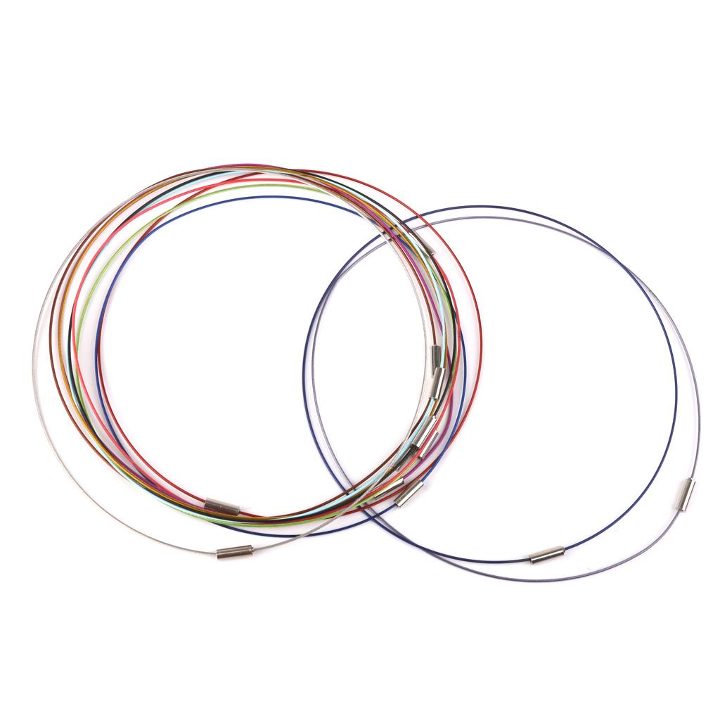 Gorgeous steel cable necklets with screw-in clasp. A beautiful way to show off your tile and glass tile pendants - these sturdy and slim chokers are very sophisticated and will look fantastic with my pendant trays. They are made of wound steel memory wire covered with coloured plastic tubing.