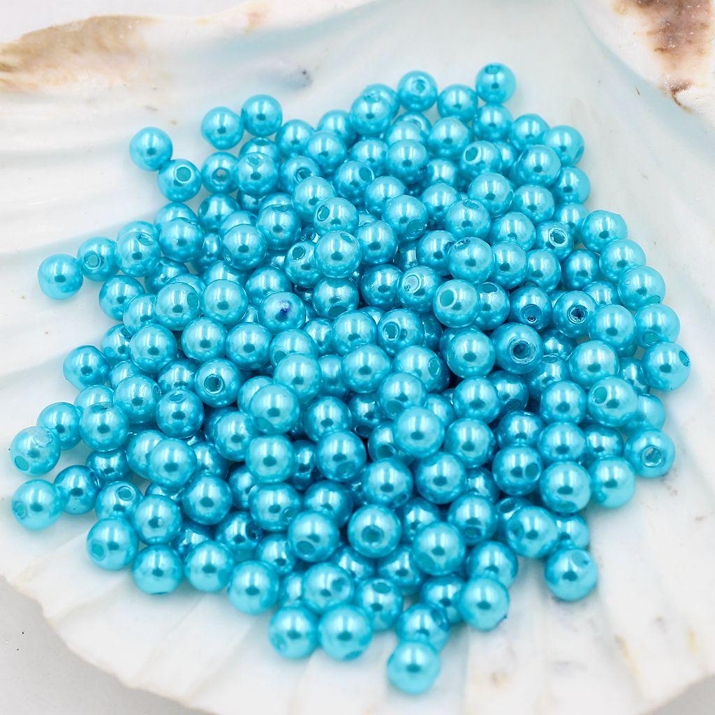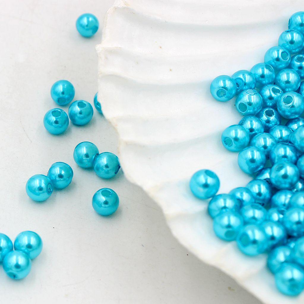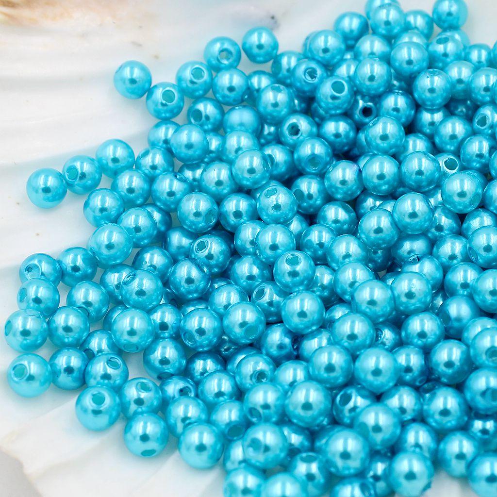 130 Pieces 8mm Round Plastic Imitation Pearl Spacer Beads for DIY Jewelry Making Blue