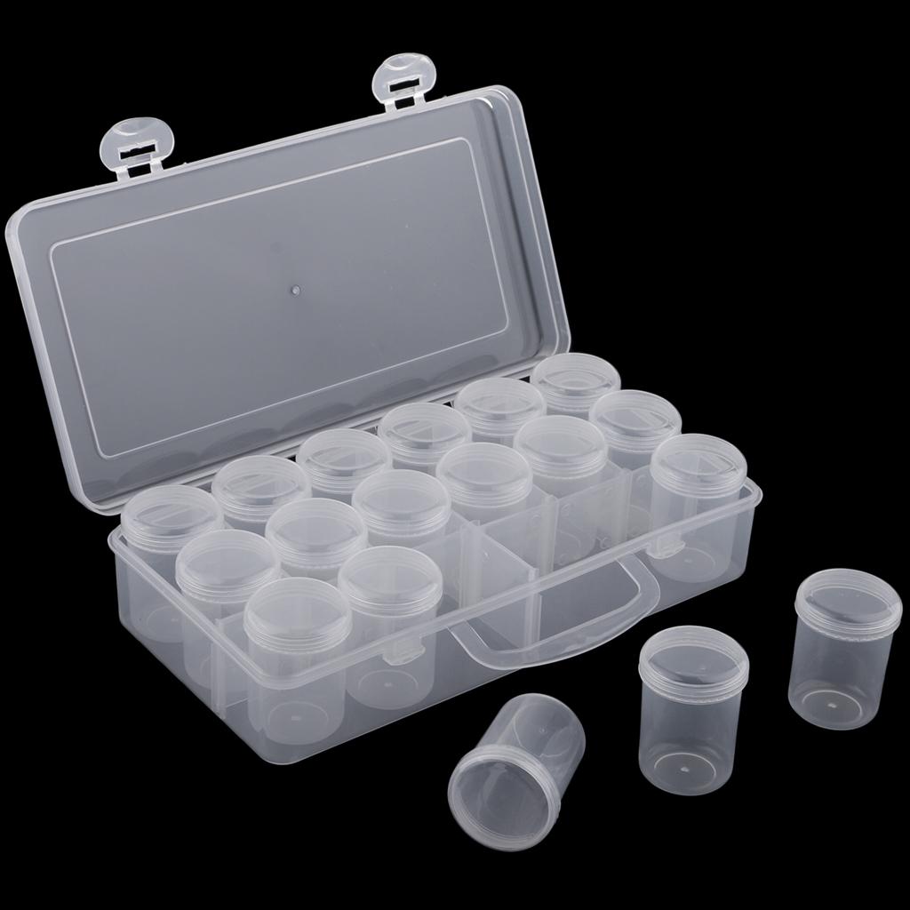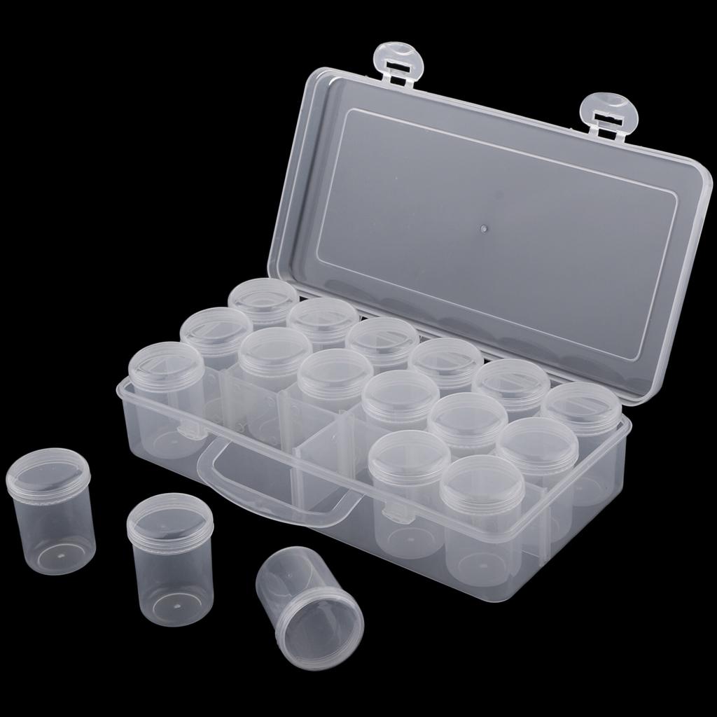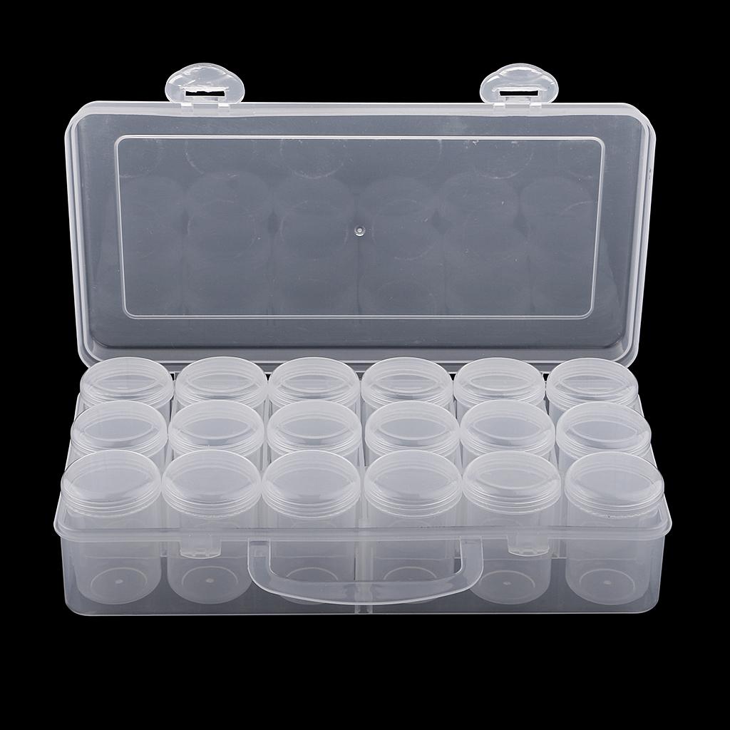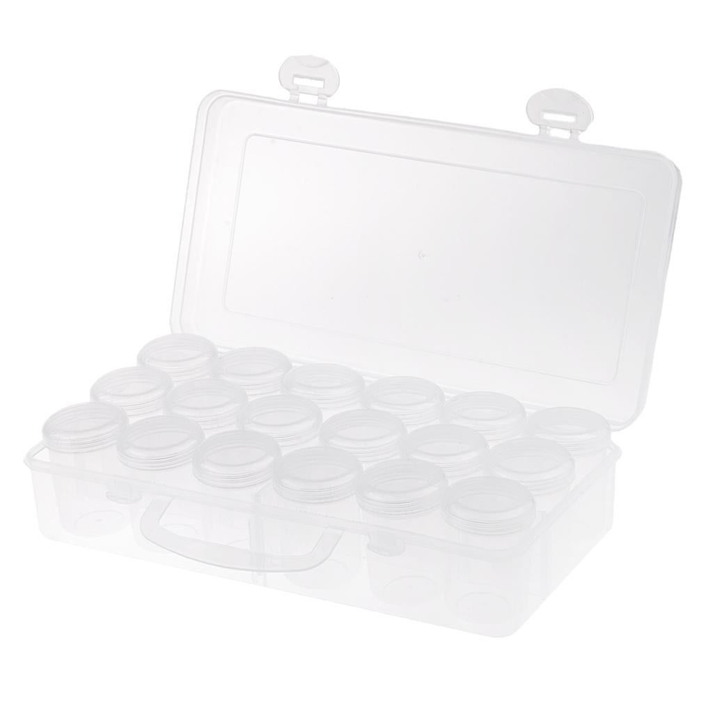 18pieces Storage Box Screw Lid Clear Containers for Beads Crafts Findings Small Items Keeping Supply 55x35mm packed in portable box