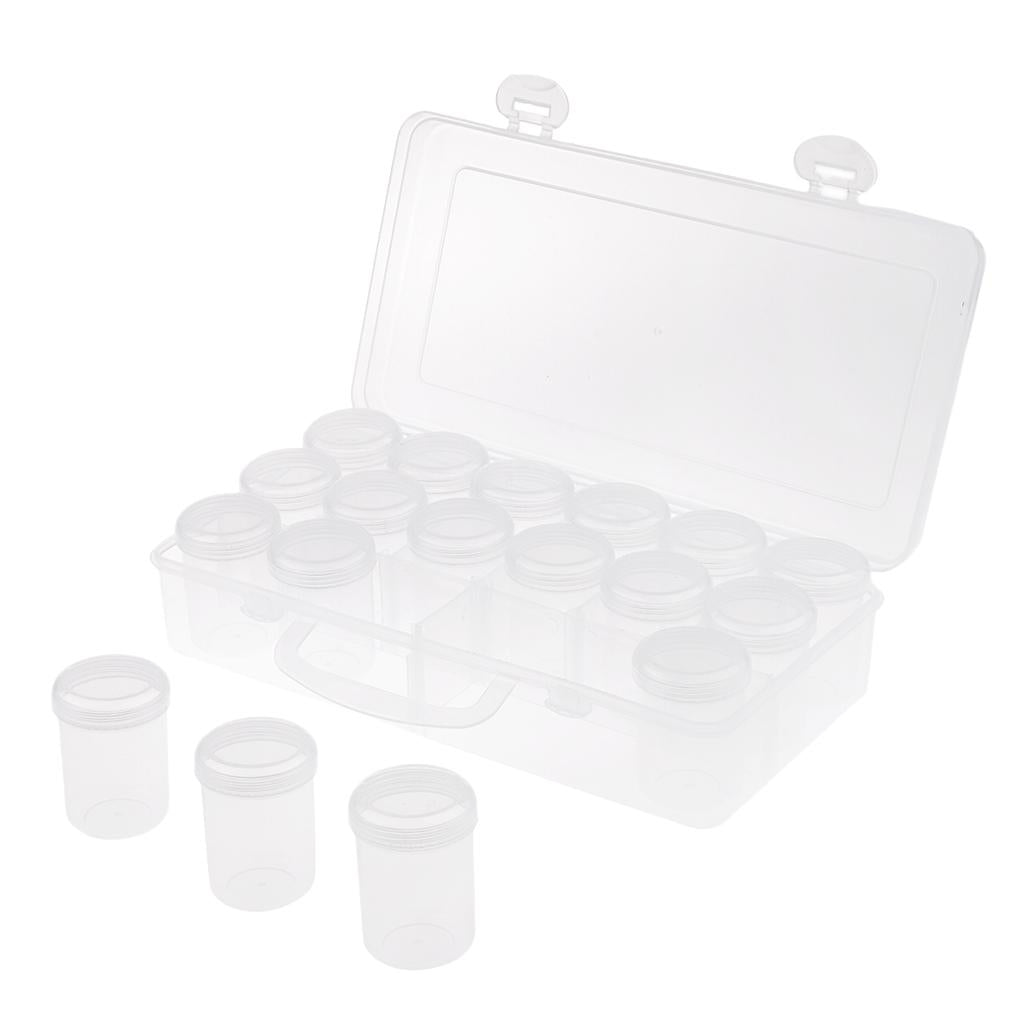 18 Pieces Clear Round Plastic Storage boxes Packed in Plastic Case.