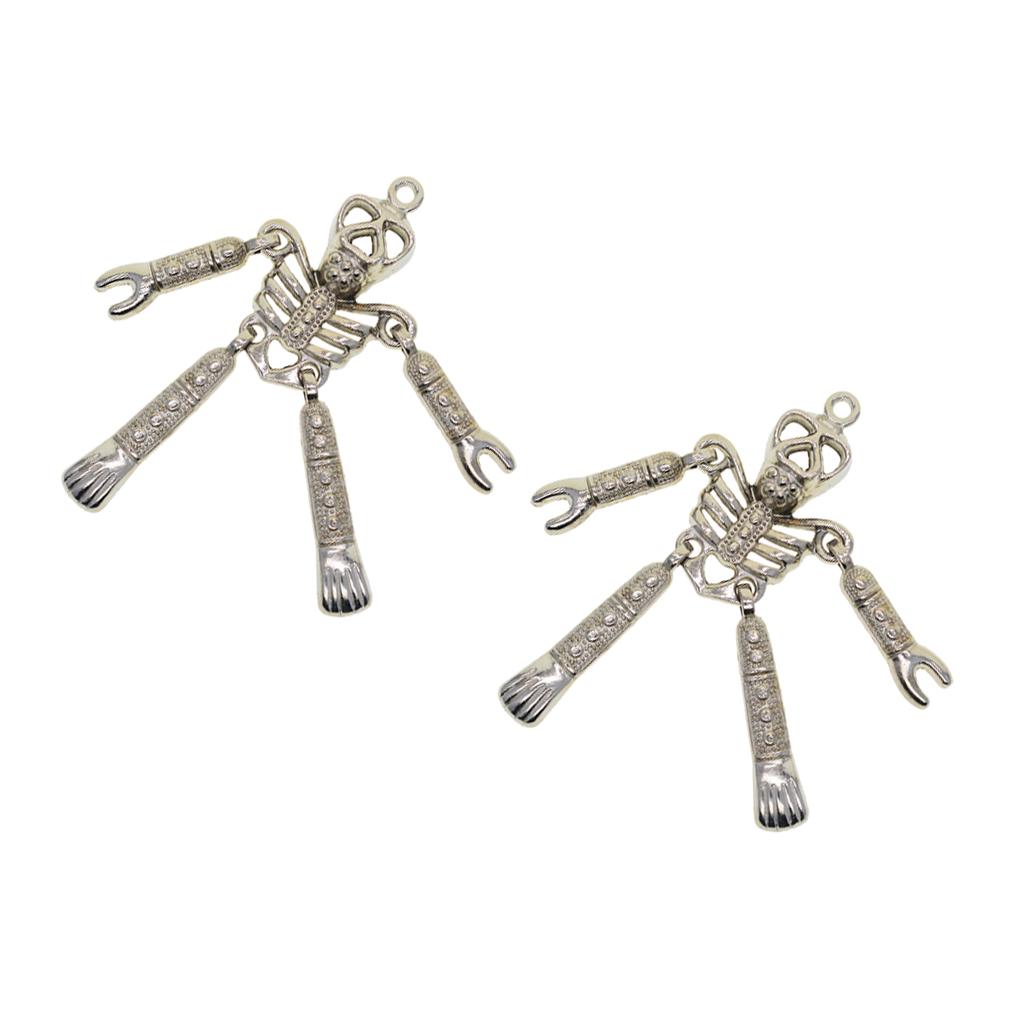 2 Pieces Antiqued Silver Tone Skeleton Body Skull Charm Pendants 84 x 34 mm / 3.31 x 1.34 inch for DIY Jewelry Craft Keychain Rings Bag Pendants Gift Accessories