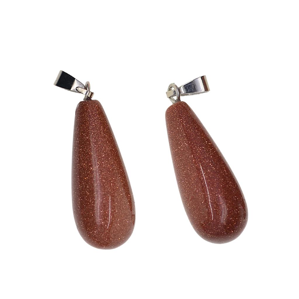 2 Pieces Multicolor Gemstone Water Drop Pendants for Crafts Gold Sand