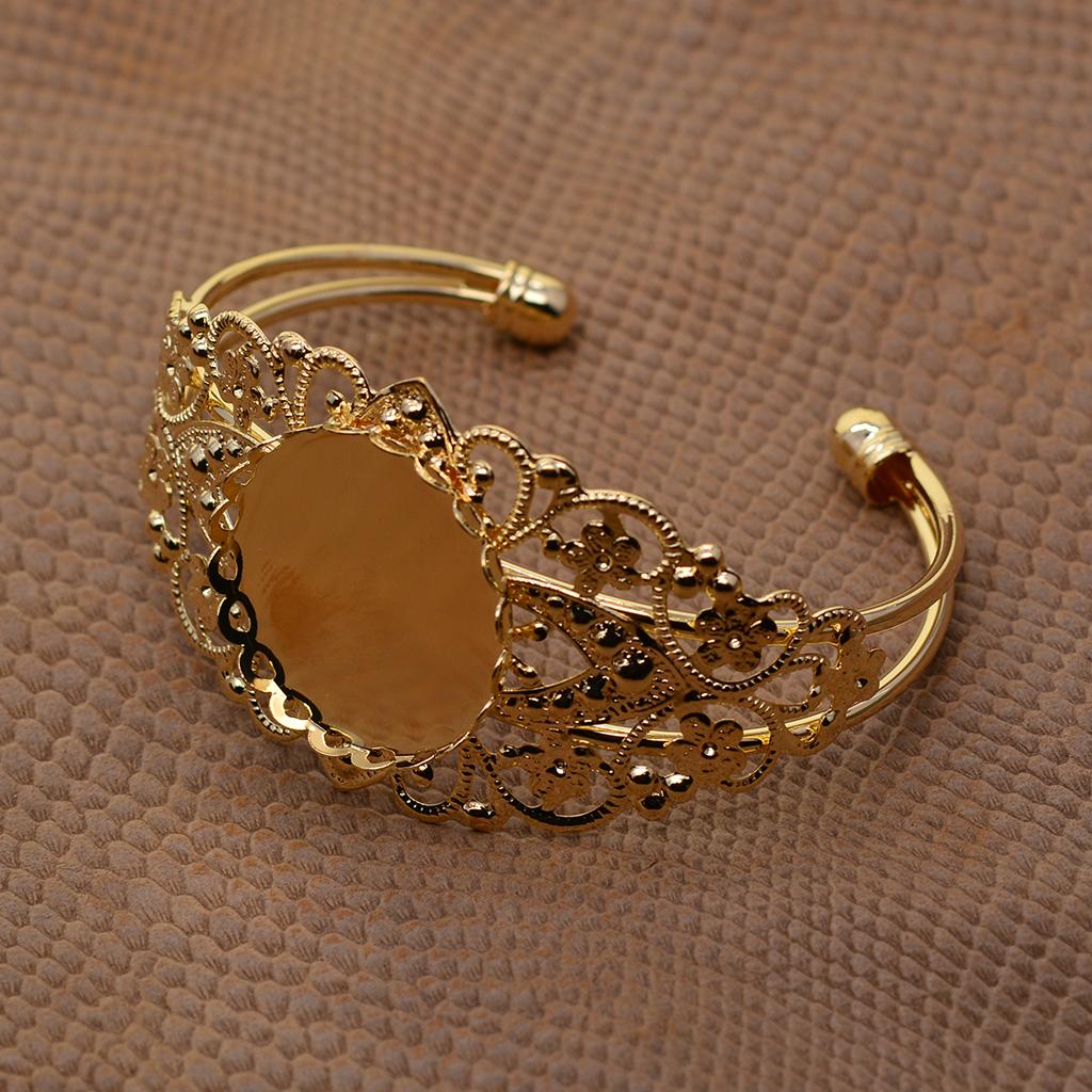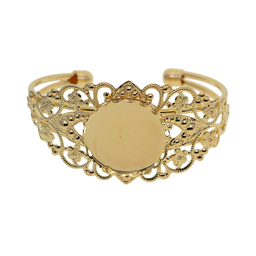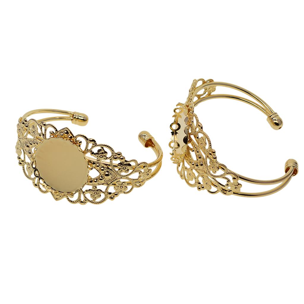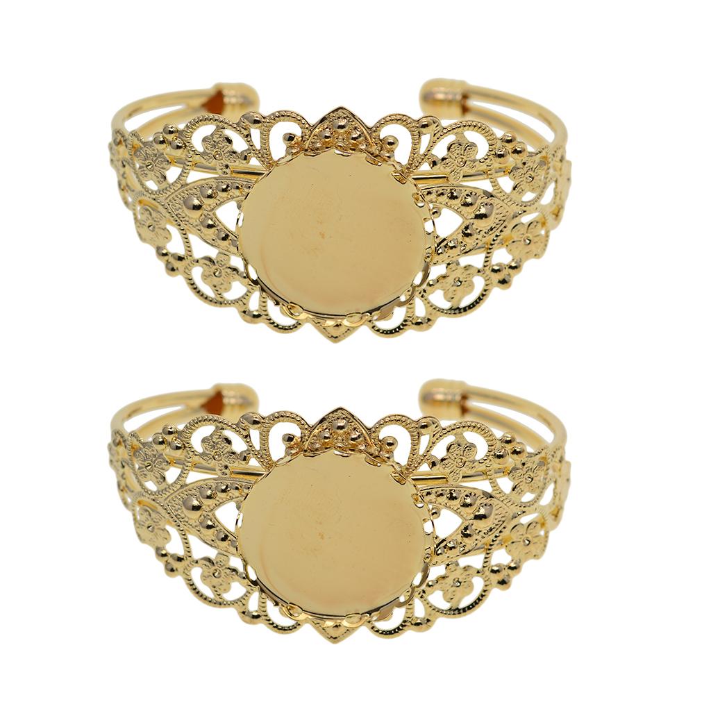 2 Pieces Round Bezel Blank Bracelet For Men and Women Fit 25mm Cameo Cabochon Gold