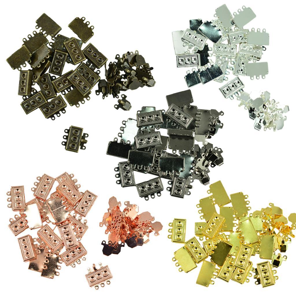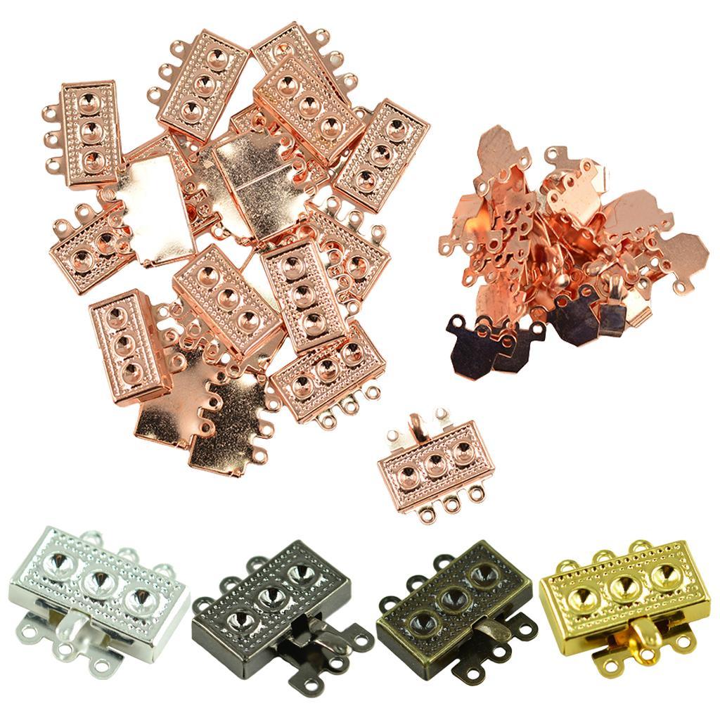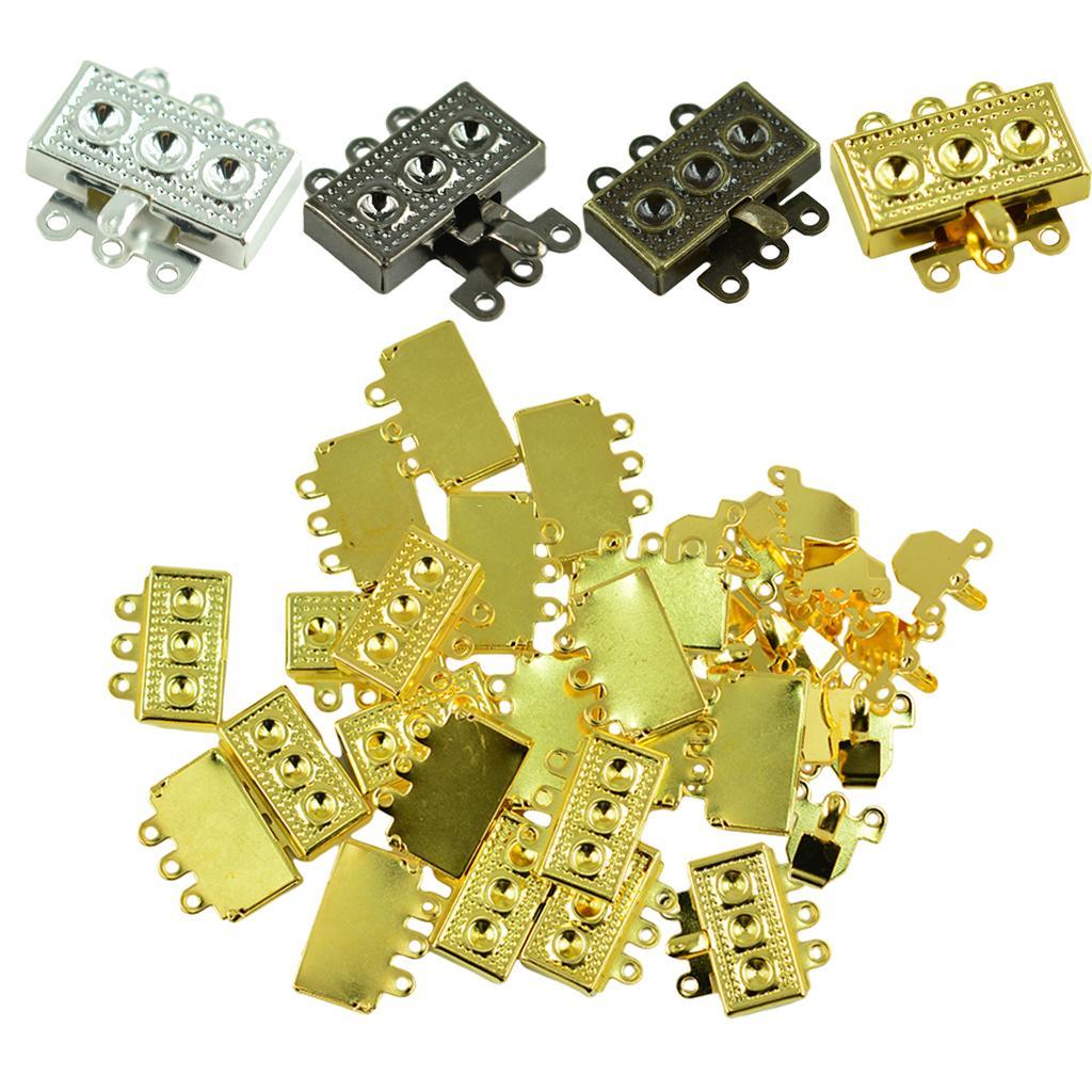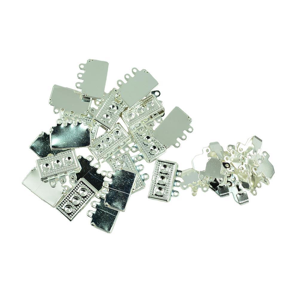 20 Pieces Brass 3 strand Box Clasp Necklace DIY Jewelry Findings Silver
