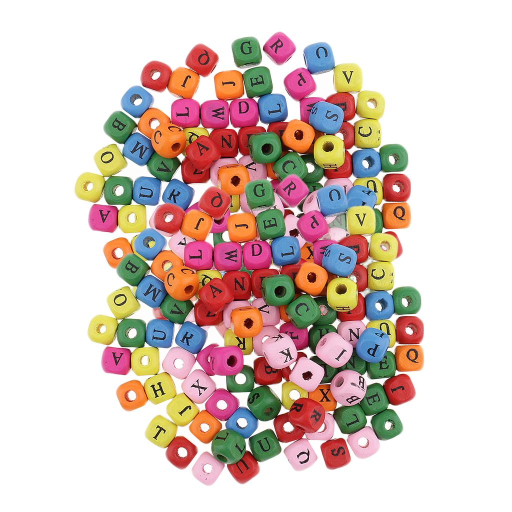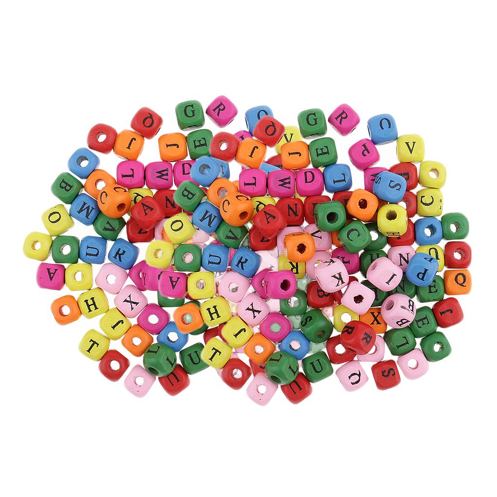 200 Pieces Wooden Alphabet Letters Printed Cube Beads 10mm