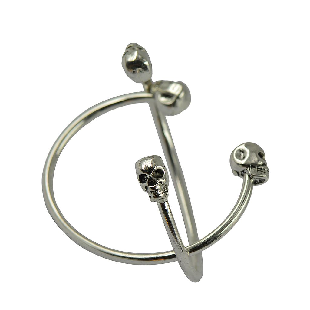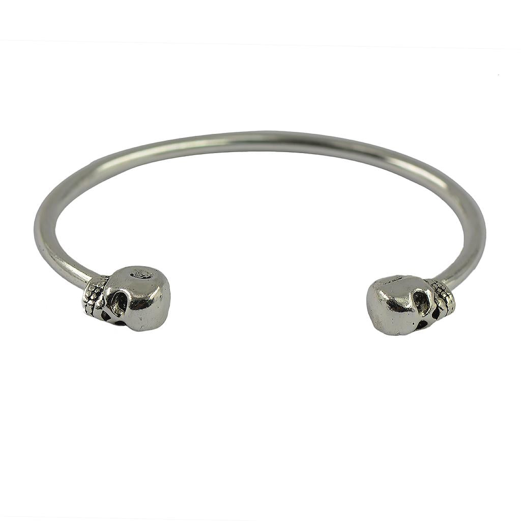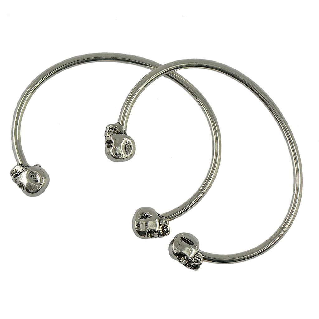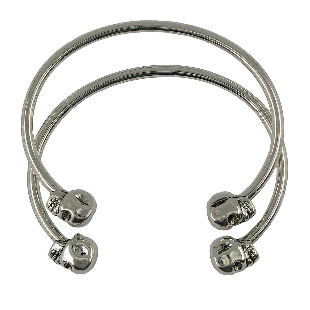 2pcs Mens Skull Head Blank Base Settings Open Bracelet Cuff Tibetan Silver
