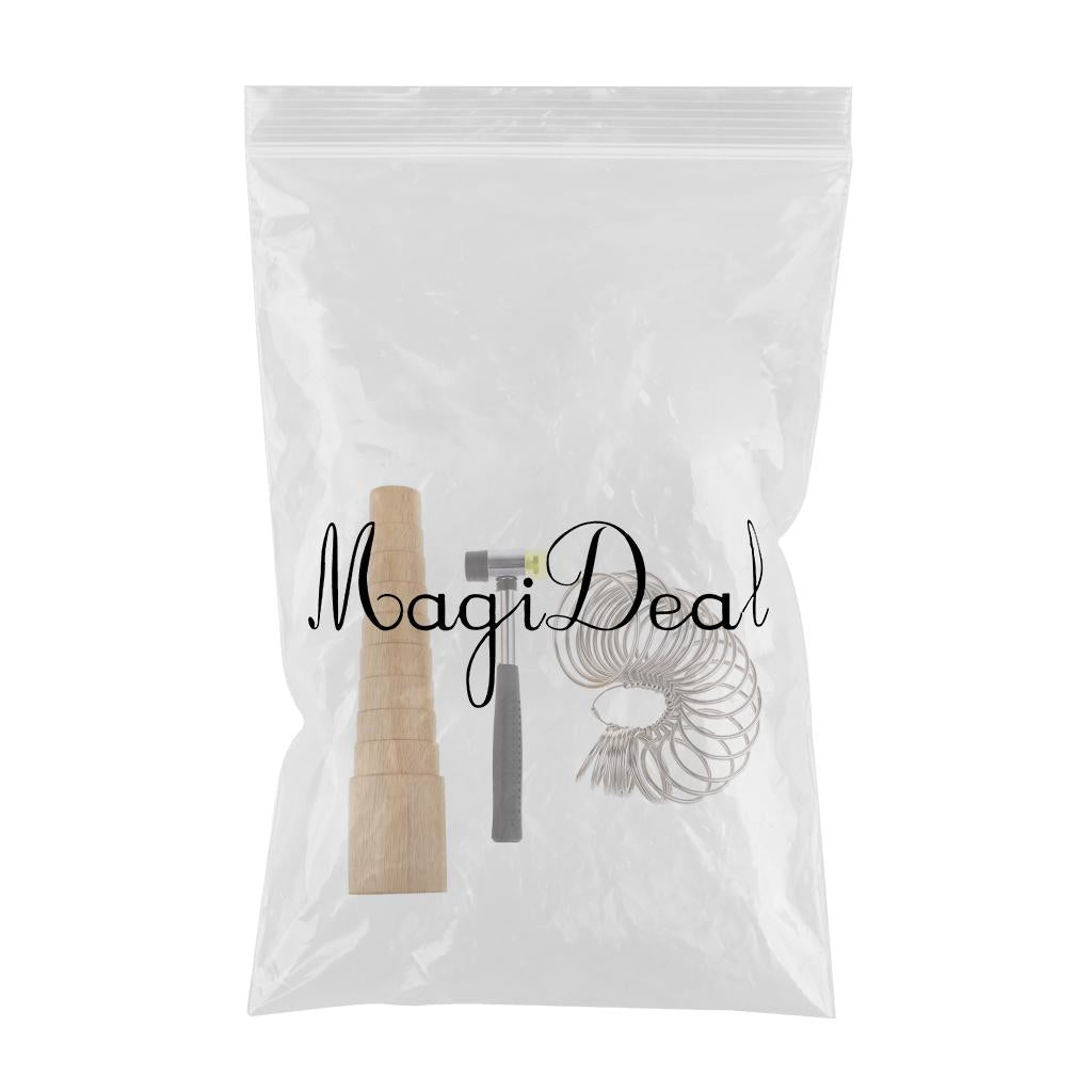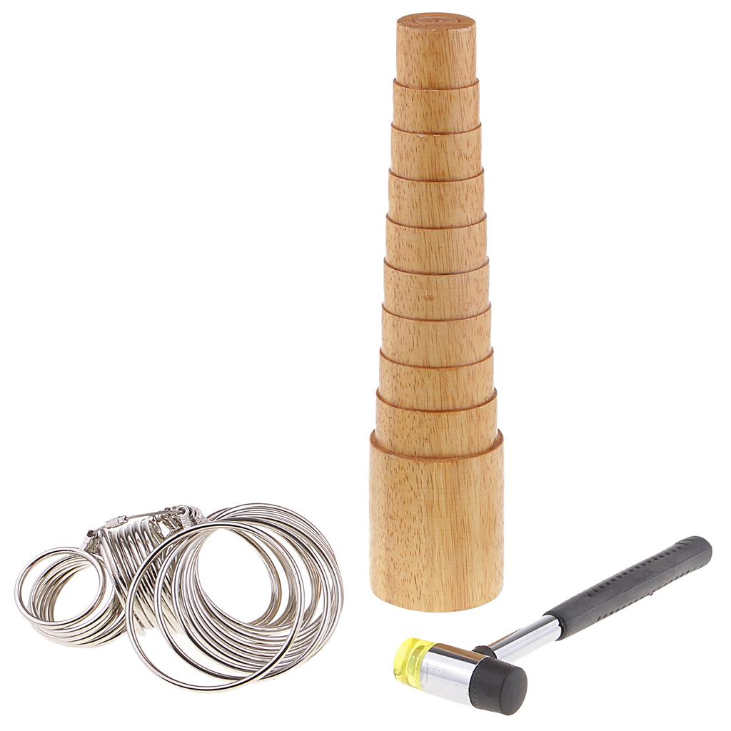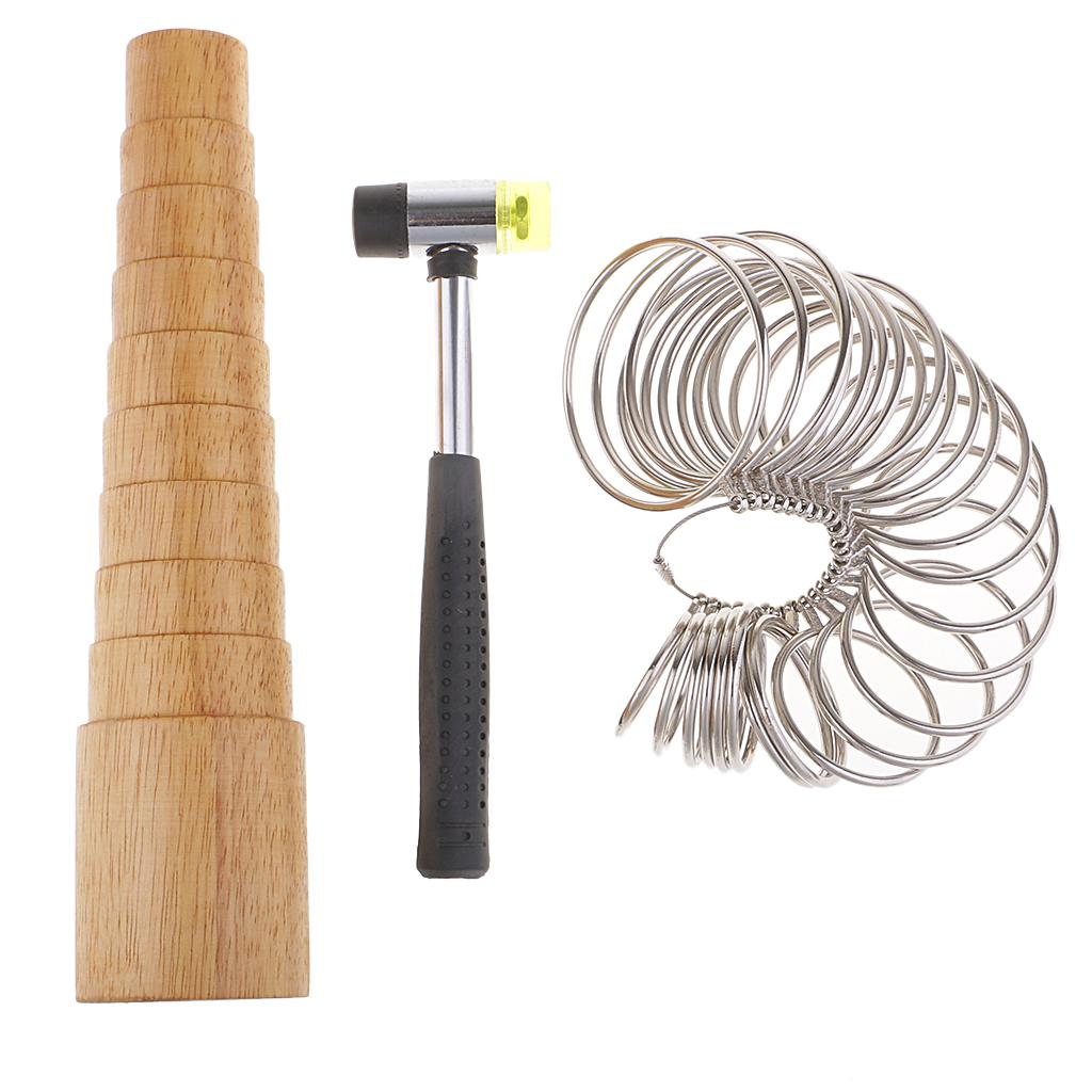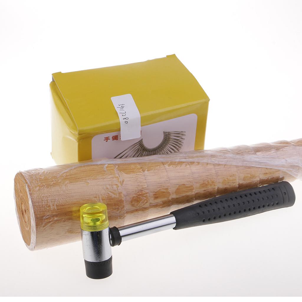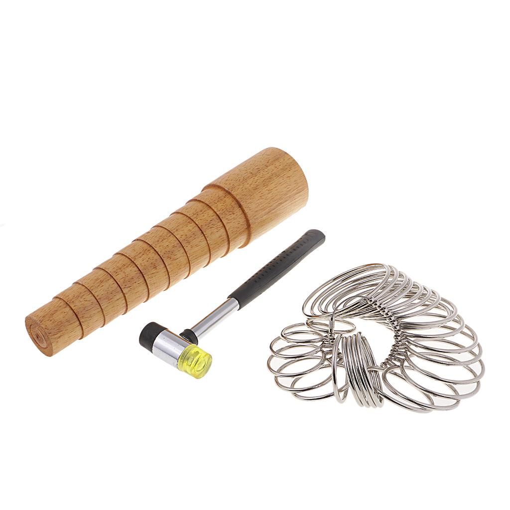 Wooden Step Bangle Mandrel Sizer + 27pcs Metal Bracelet Sizer + Rubber Hammer