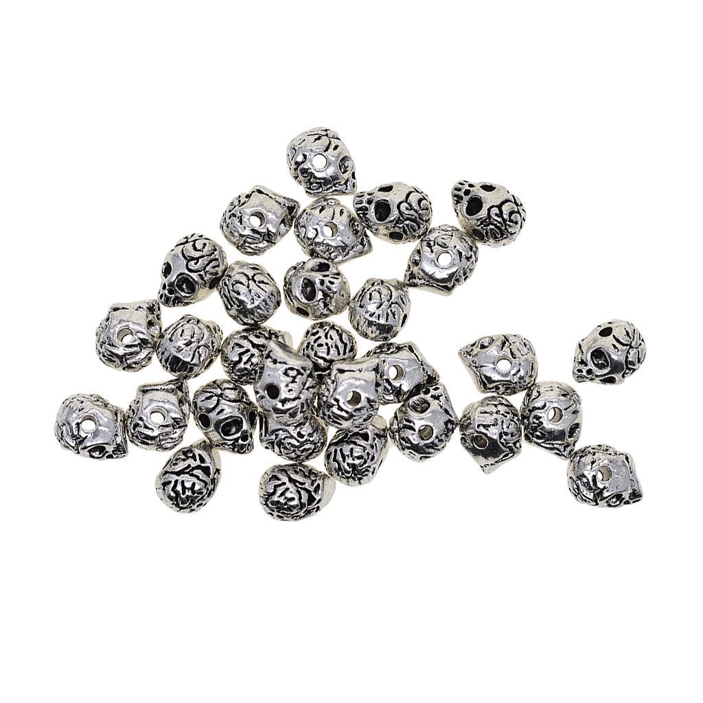 Tibetan Silver Alloy skull with rose flower spacer beads