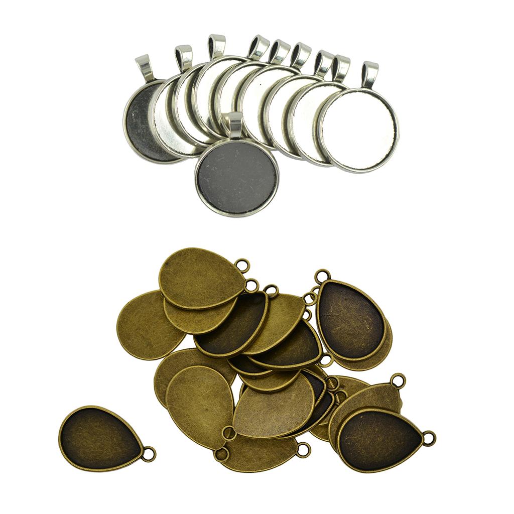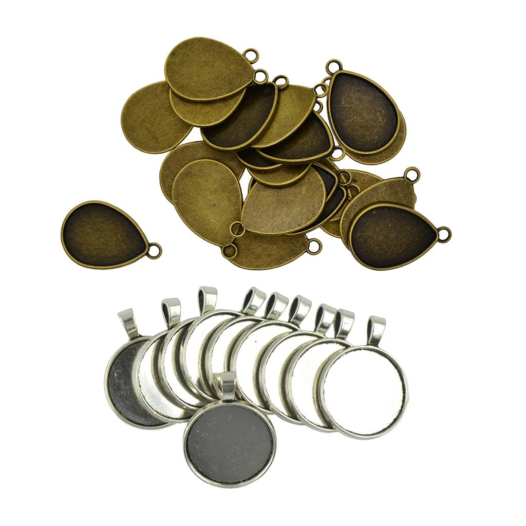 30 Pieces Blank Bezel Tray Base For Pendants Cabochon Setting Jewellery DIY Necklaces Earrings Making Supplies
