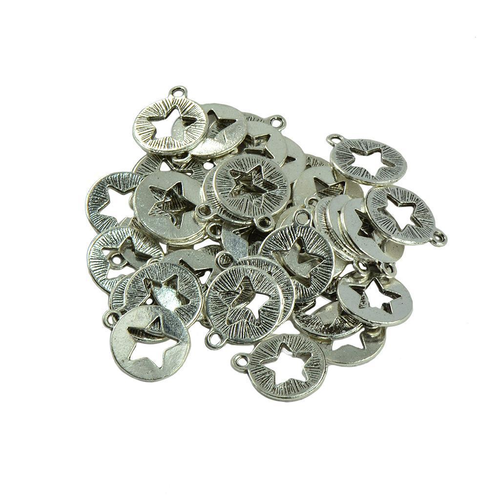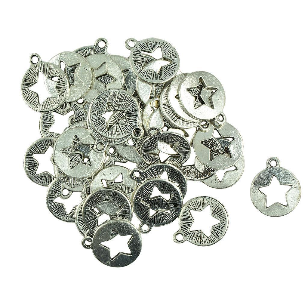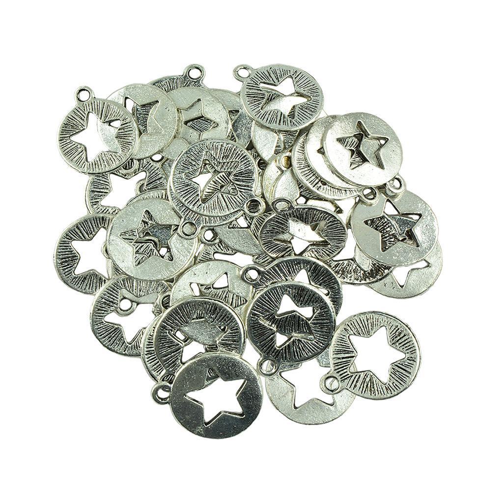 30 Pieces Tibetan Silver Hollow Star Round Pendant DIY Findings Crafts Jewelry