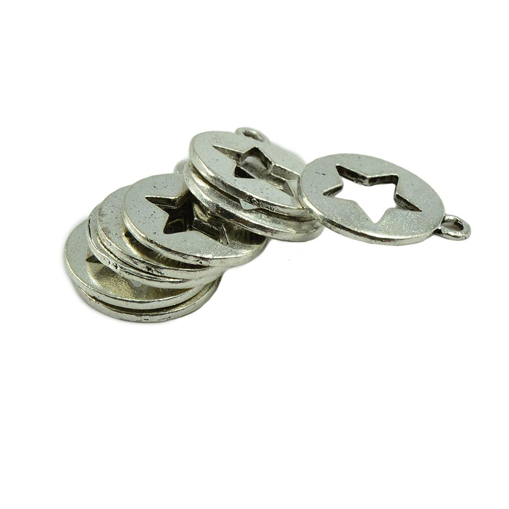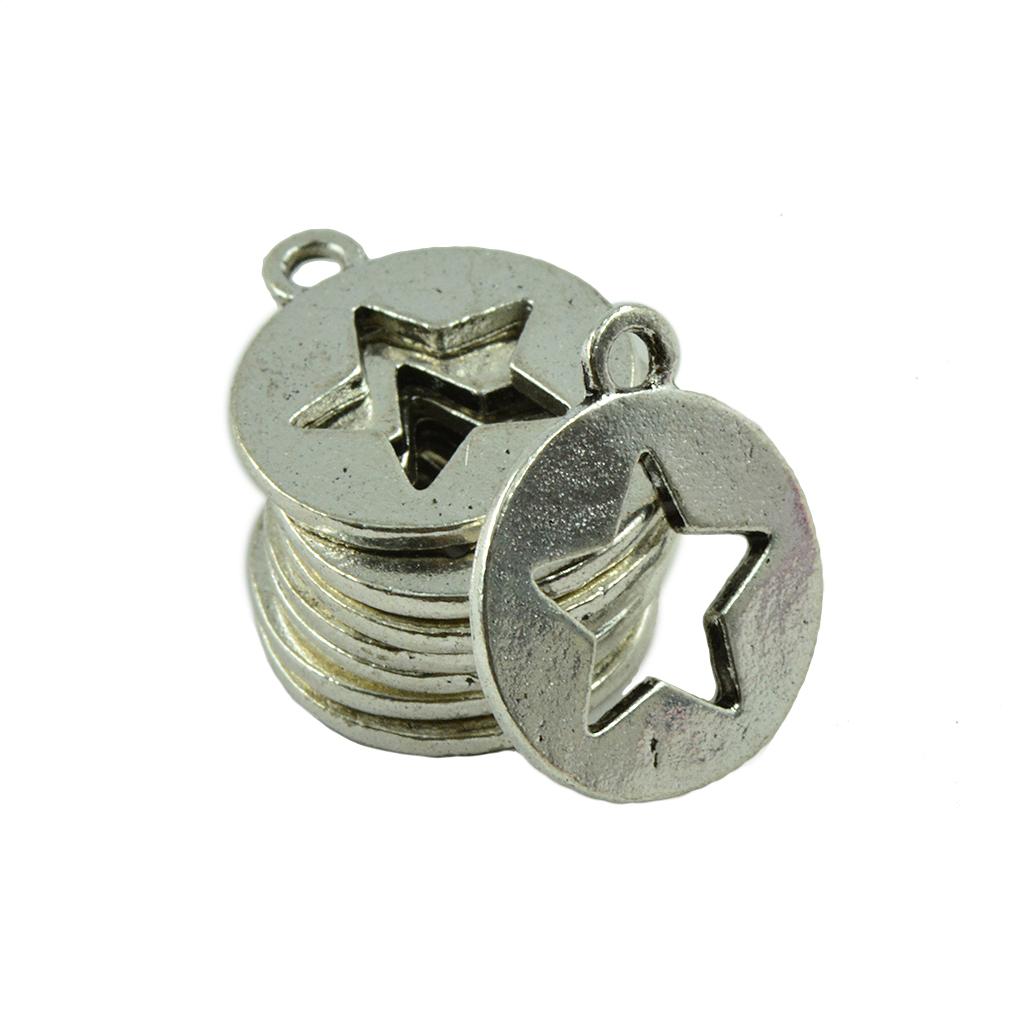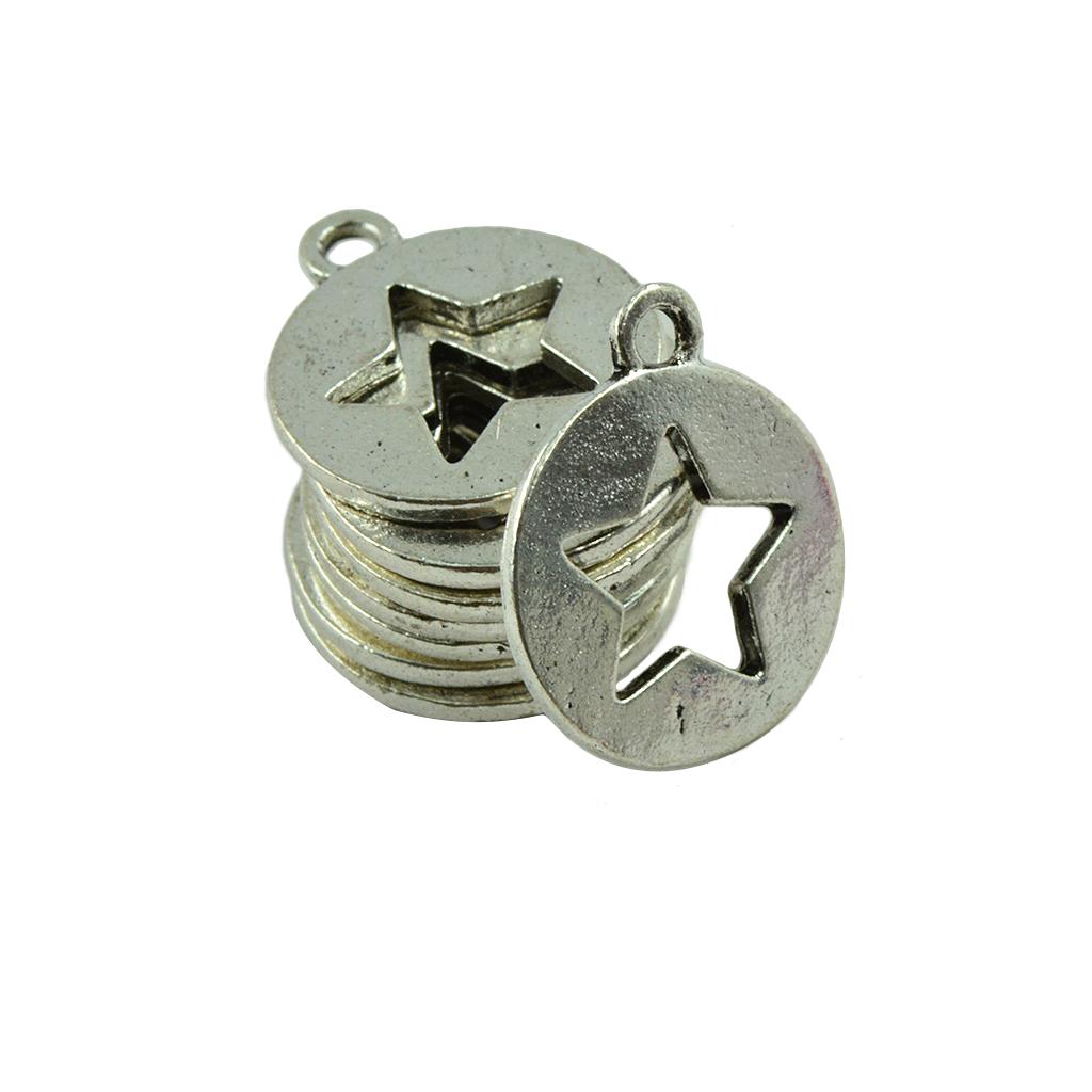 30 Pieces Tibetan Silver Hollow Star Round Pendant DIY Findings Crafts Jewelry
