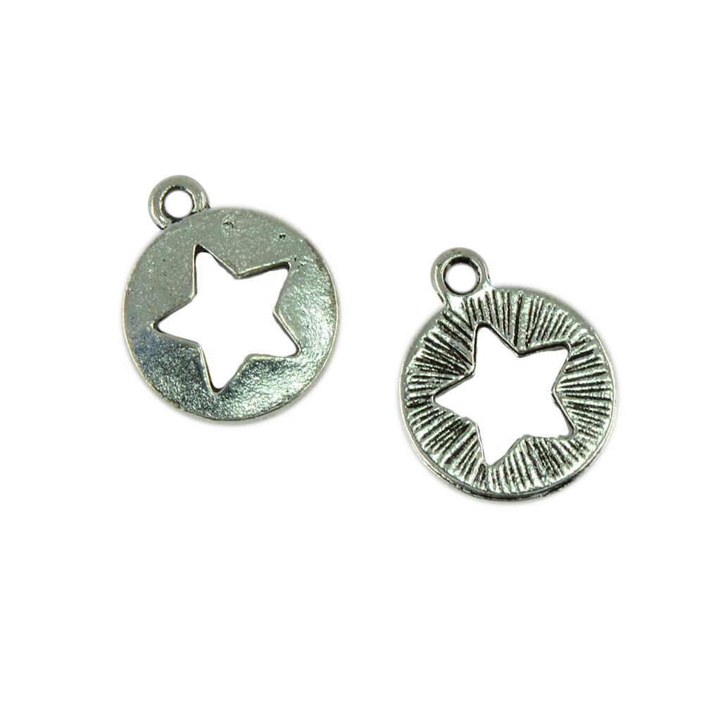 Tibetan Silver Alloy Round charms pendant with Hollow Star for Jewelry DIY Making.