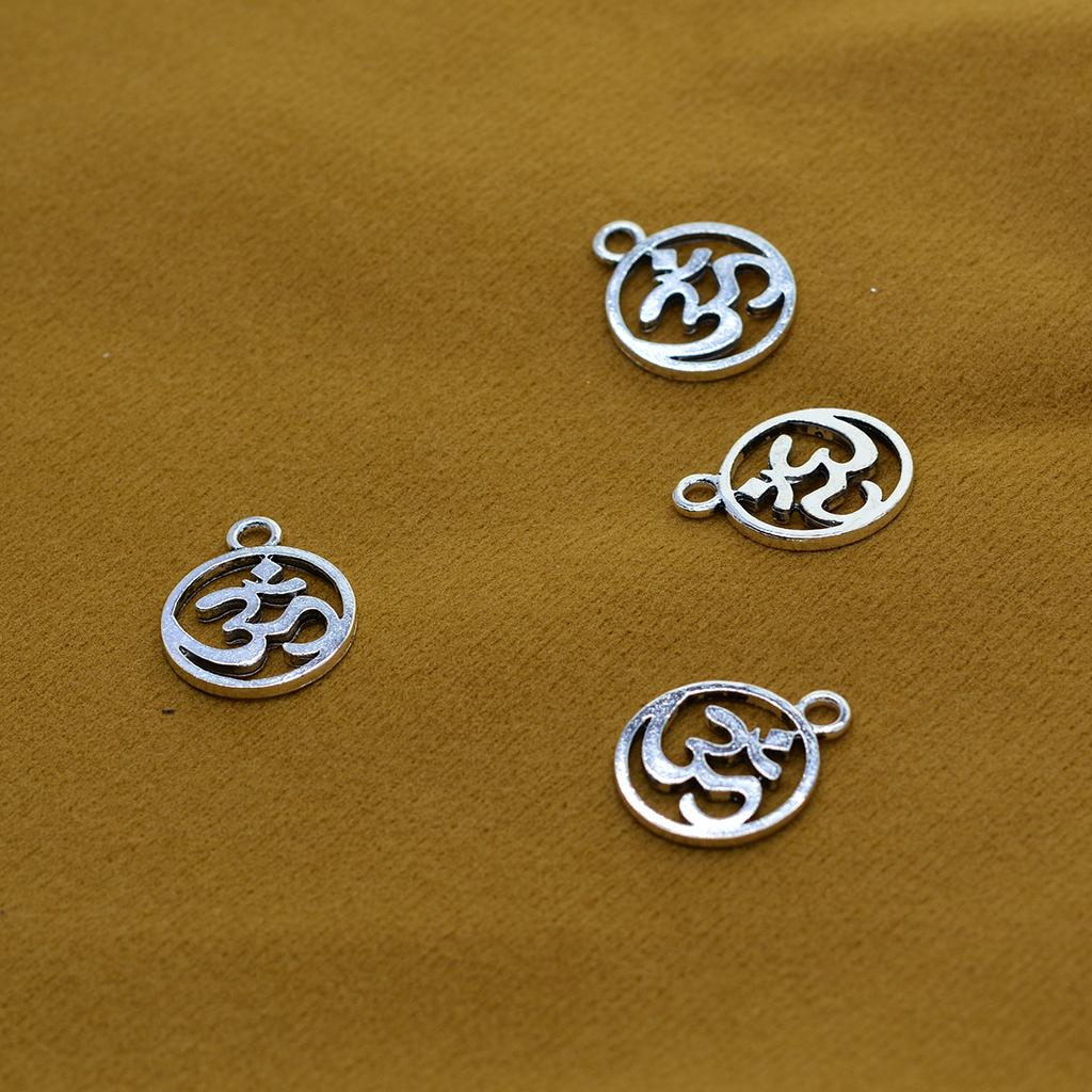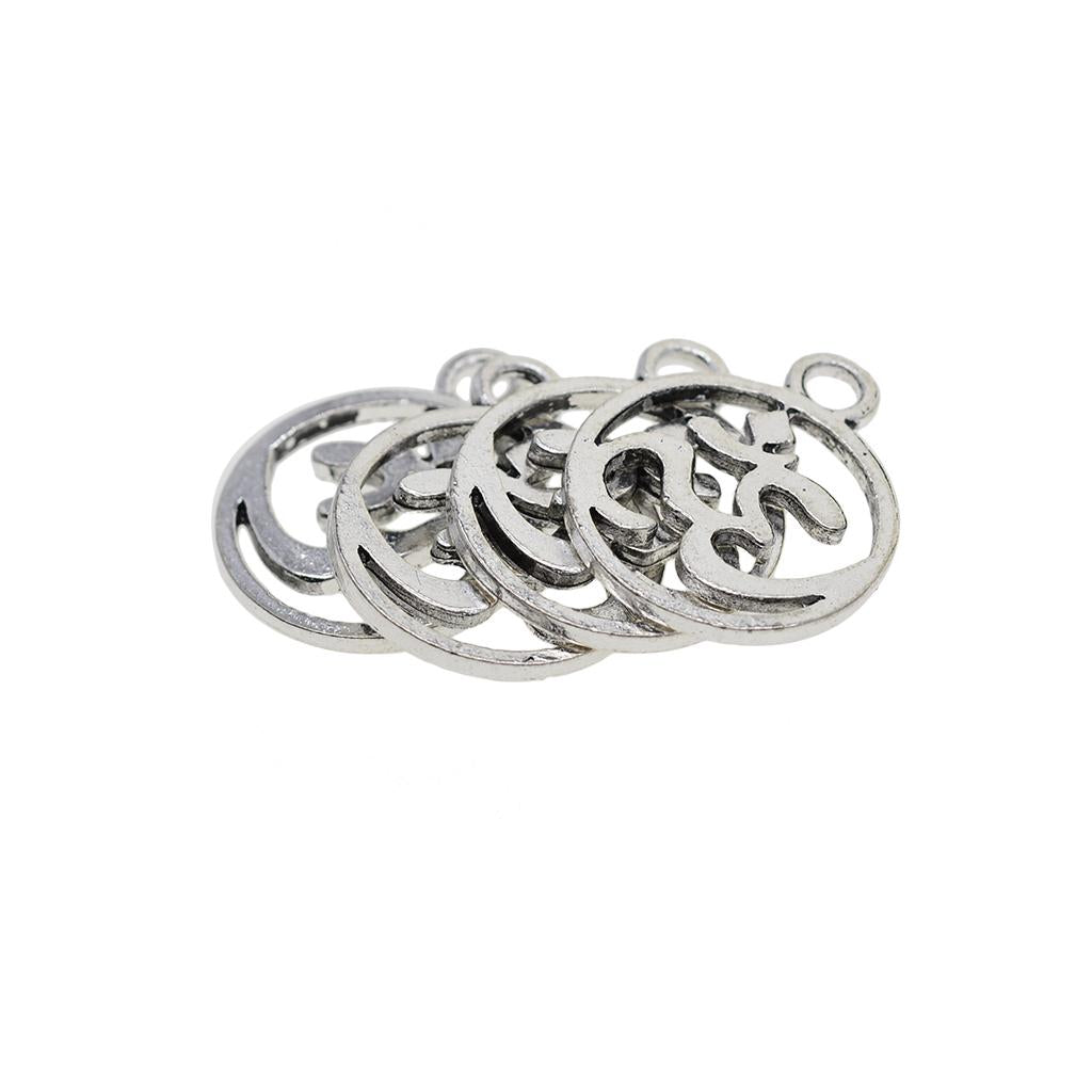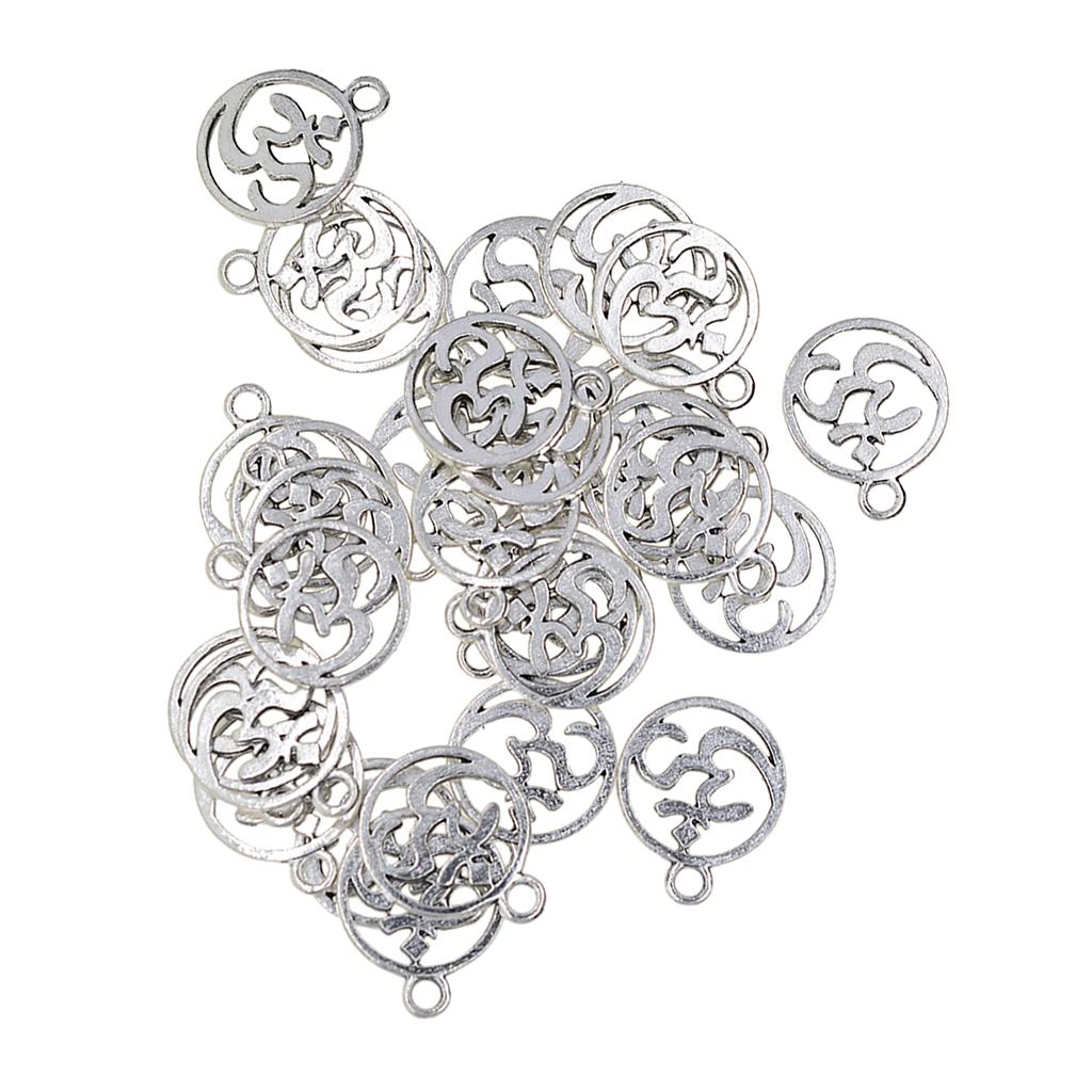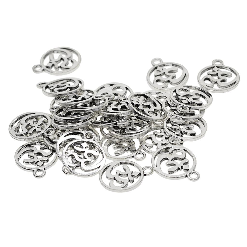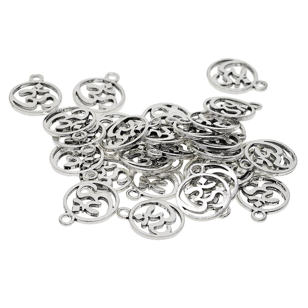 30Pcs Tibetan Silver Hollow Out OM Yoga Round Charms Pendant Necklace Making